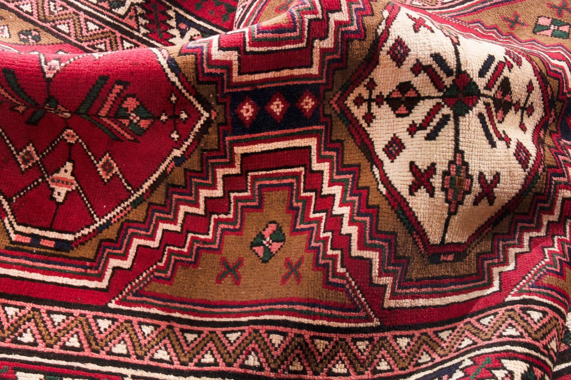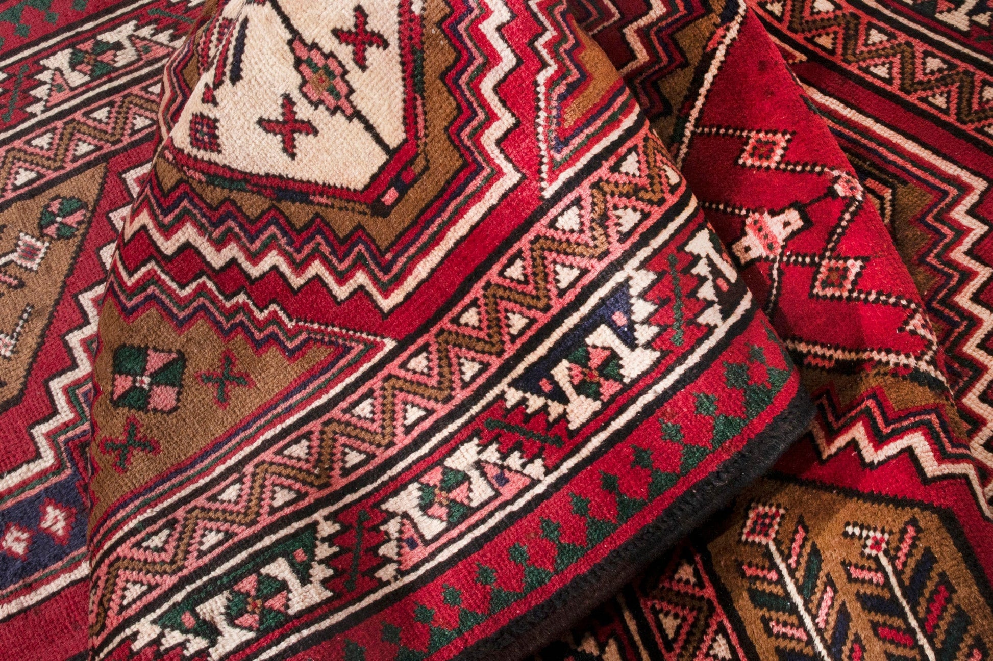 All the rugs we sell are professionally washed and cleaned; age-related wear and natural inconsistencies are inherent in these unique, handcrafted vintage rugs.