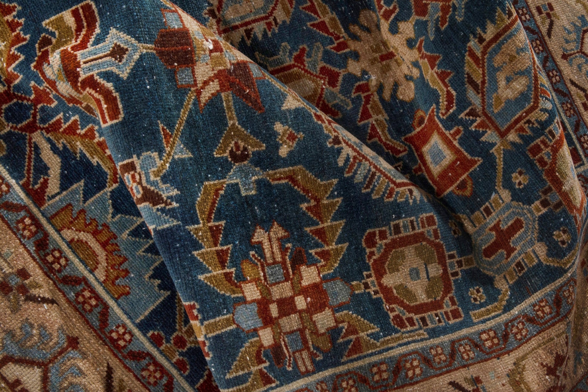 All the rugs we sell are professionally washed and cleaned; age-related wear and natural inconsistencies are inherent in these unique, handcrafted vintage rugs.