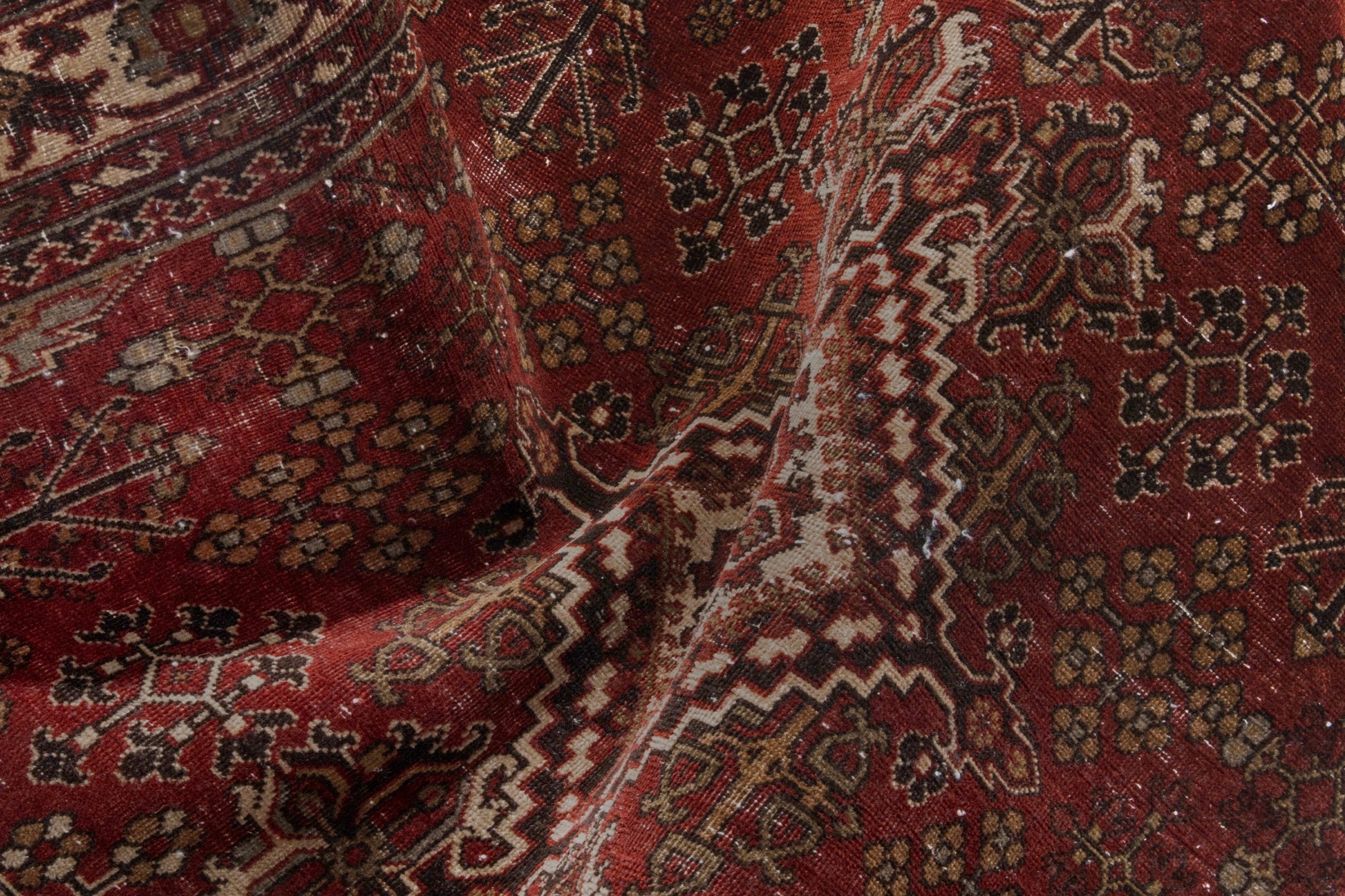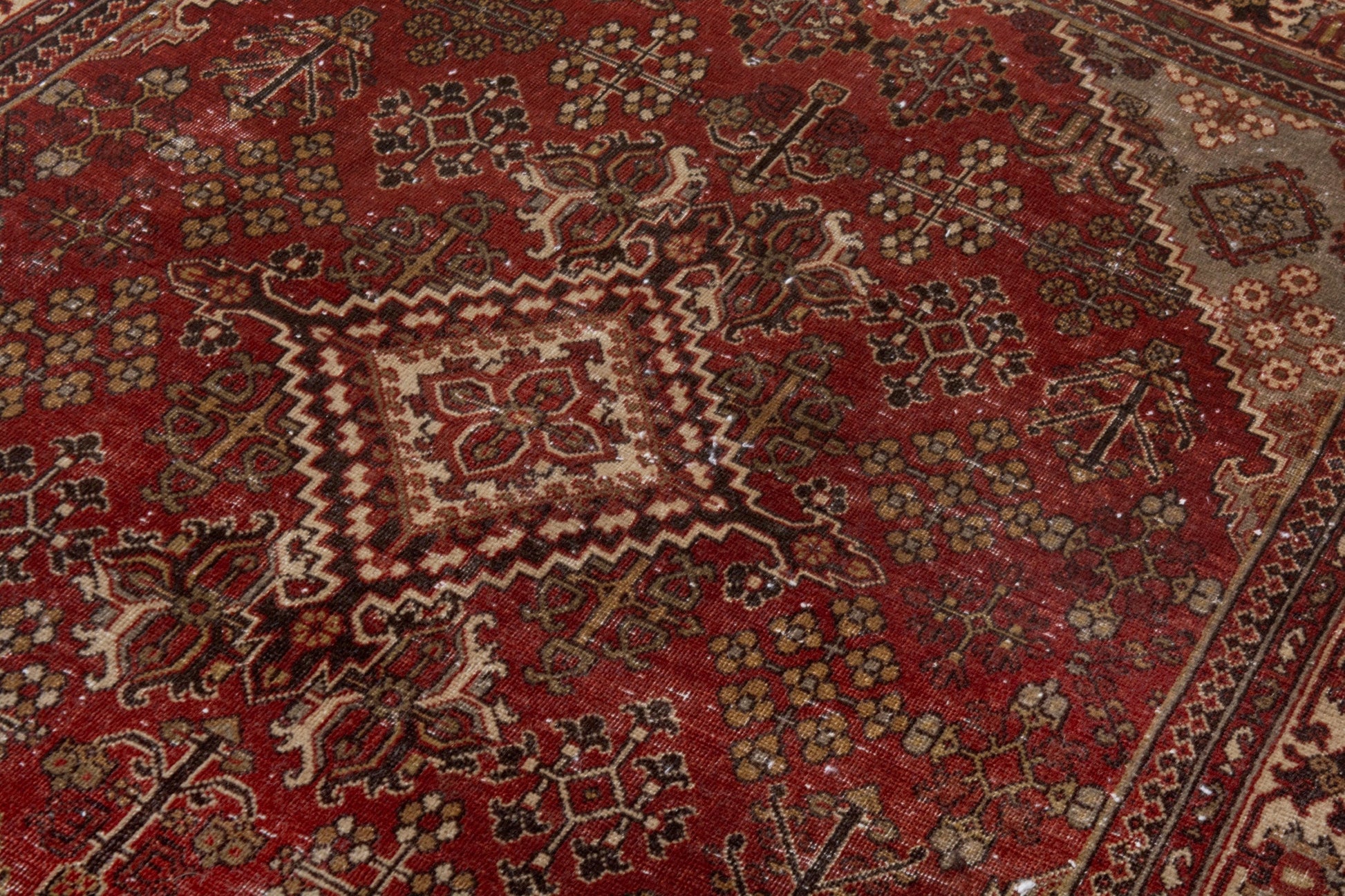 All the rugs we sell are professionally washed and cleaned; age-related wear and natural inconsistencies are inherent in these unique, handcrafted vintage rugs.