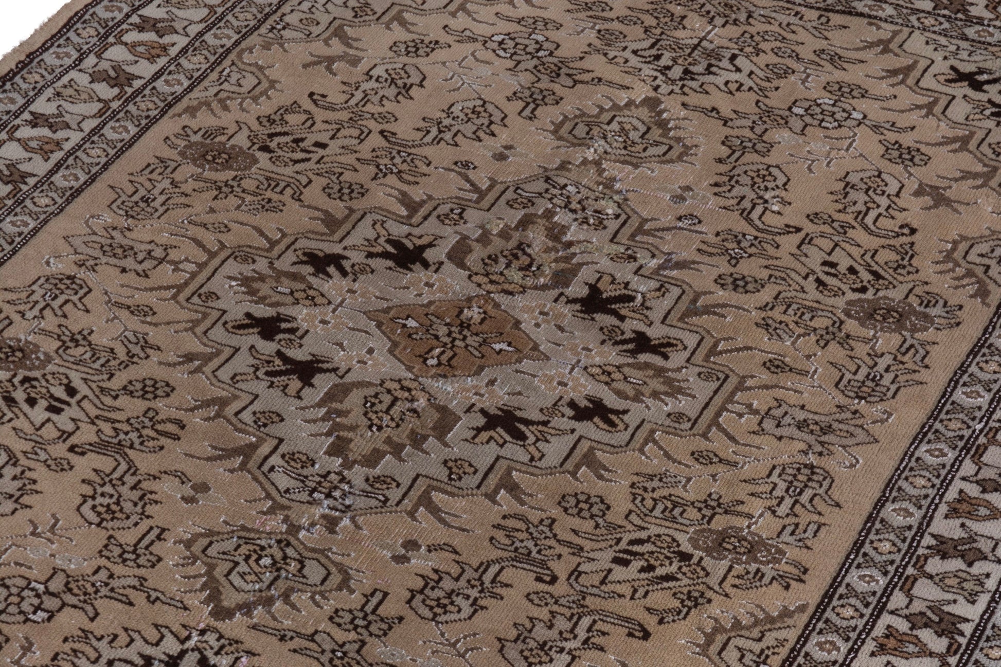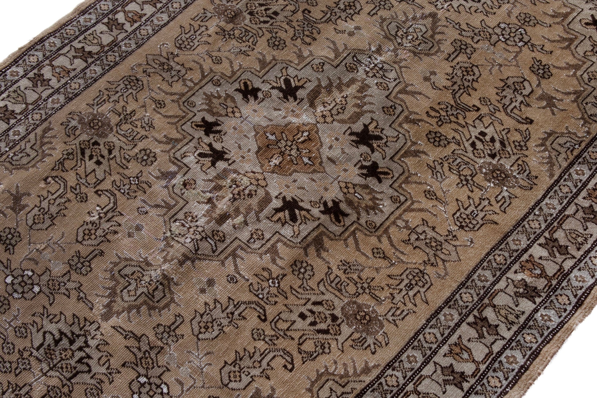 All the rugs we sell are professionally washed and cleaned; age-related wear and natural inconsistencies are inherent in these unique, handcrafted vintage rugs.