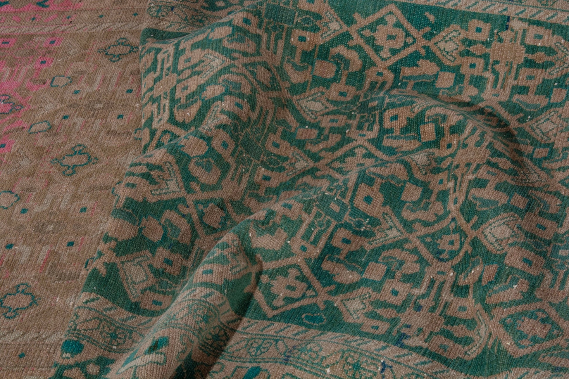 All the rugs we sell are professionally washed and cleaned; age-related wear and natural inconsistencies are inherent in these unique, handcrafted vintage rugs.