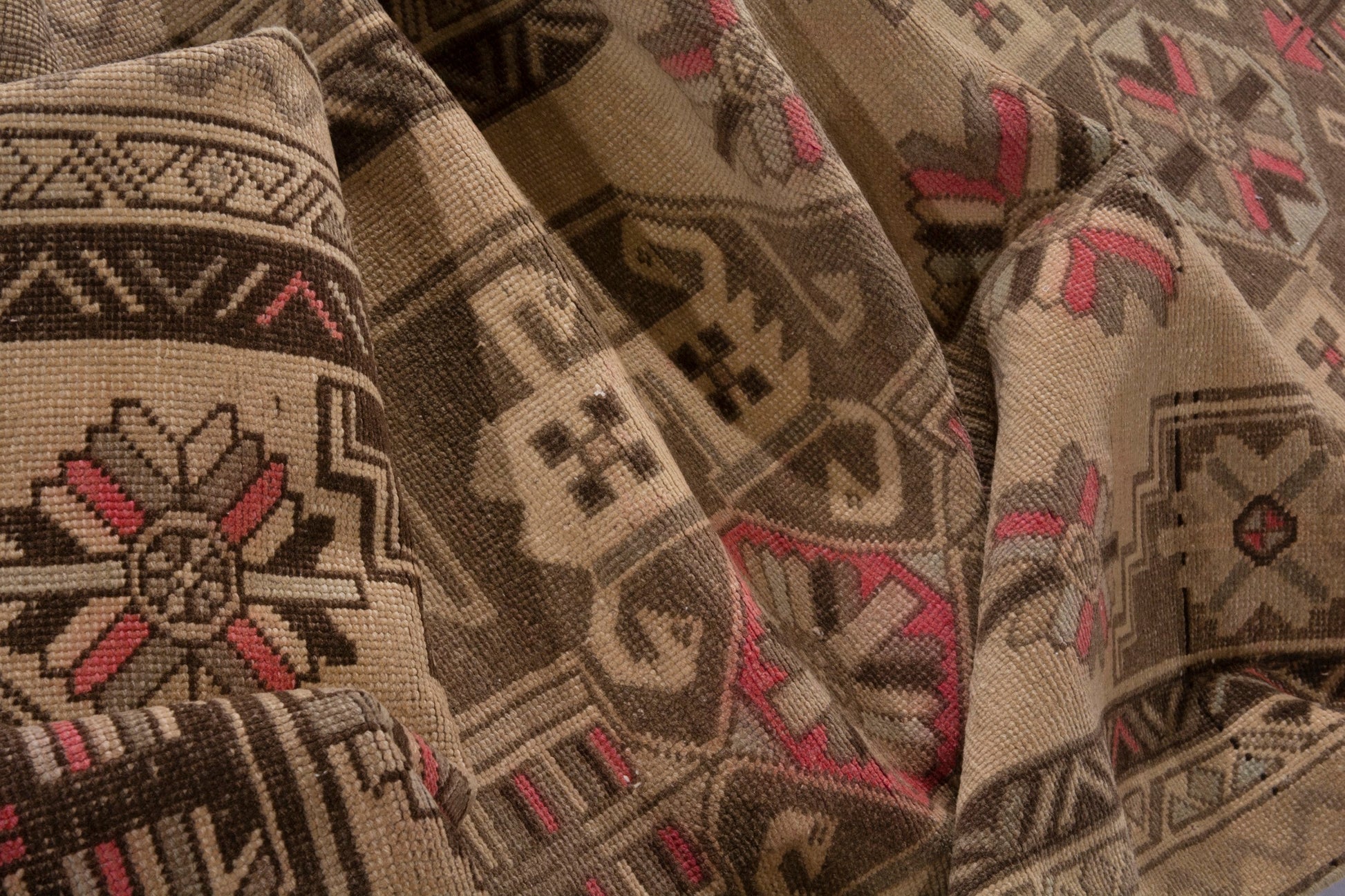 All the rugs we sell are professionally washed and cleaned; age-related wear and natural inconsistencies are inherent in these unique, handcrafted vintage rugs.