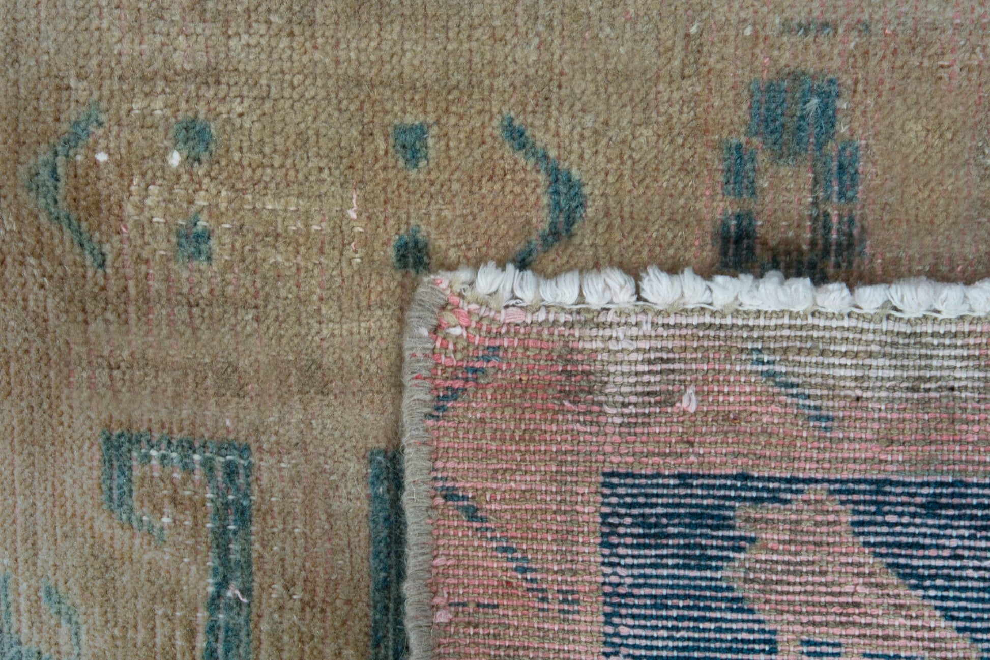 This rug is a hand-knotted rug, and edges are hand sewn.