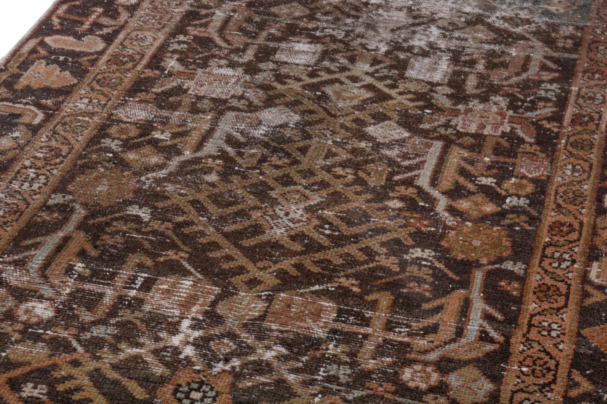 All the rugs we sell are professionally washed and cleaned; age-related wear and natural inconsistencies are inherent in these unique, handcrafted vintage rugs.