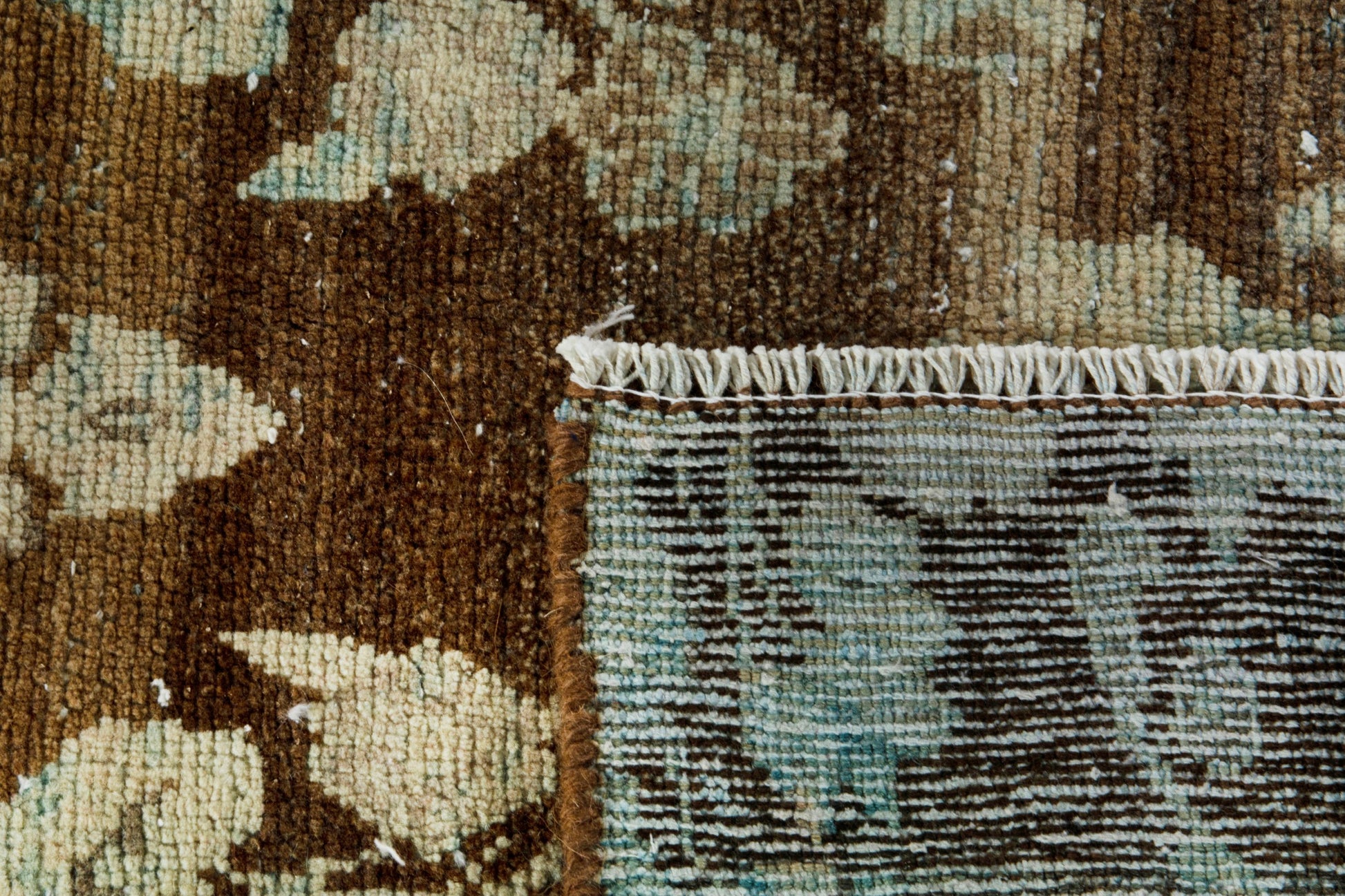 This rug is a hand-knotted rug, and edges are hand sewn.