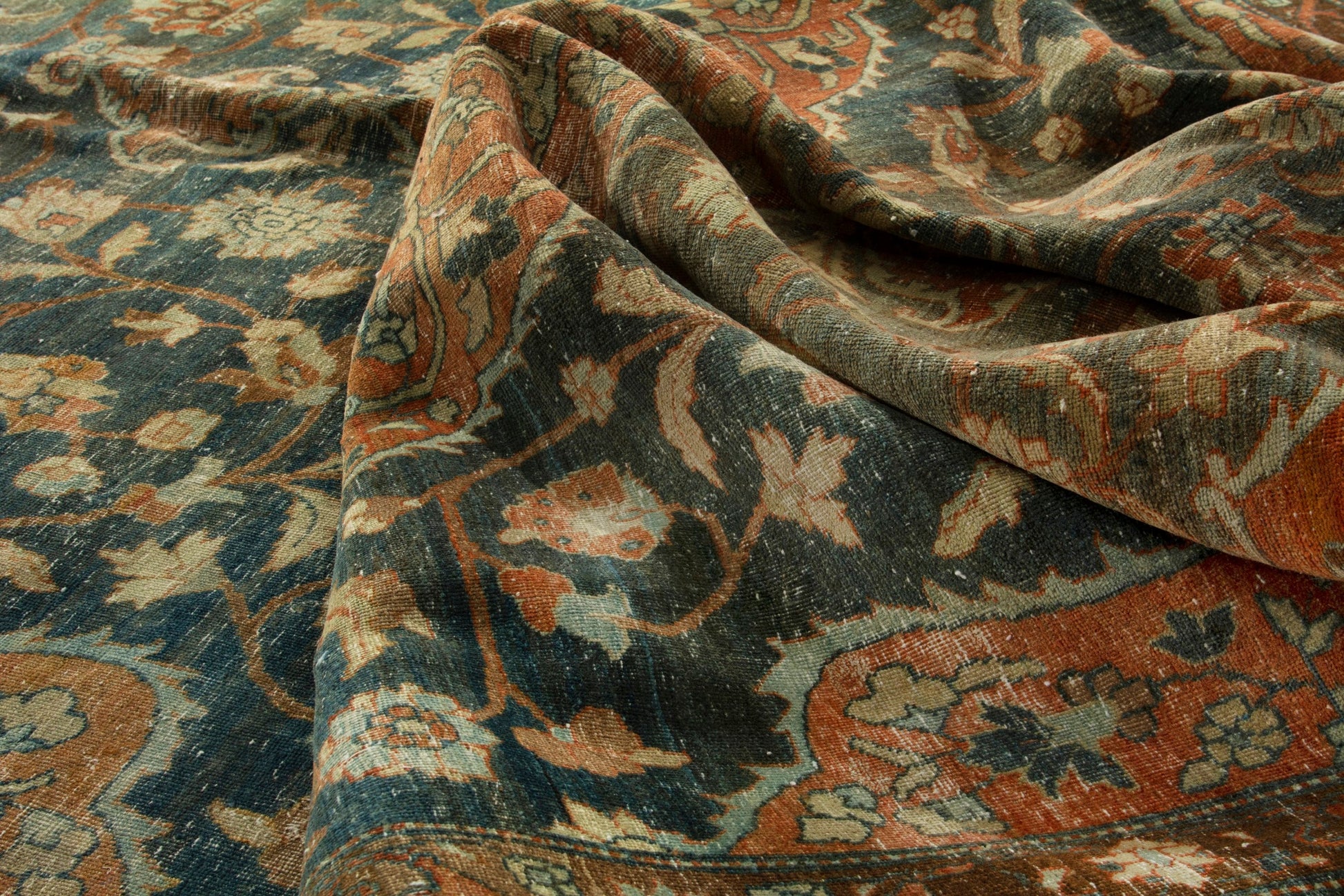 All the rugs we sell are professionally washed and cleaned; age-related wear and natural inconsistencies are inherent in these unique, handcrafted vintage rugs.
