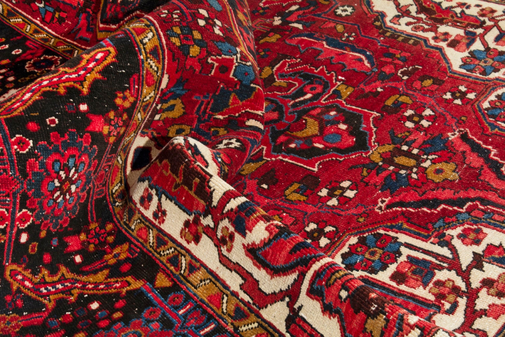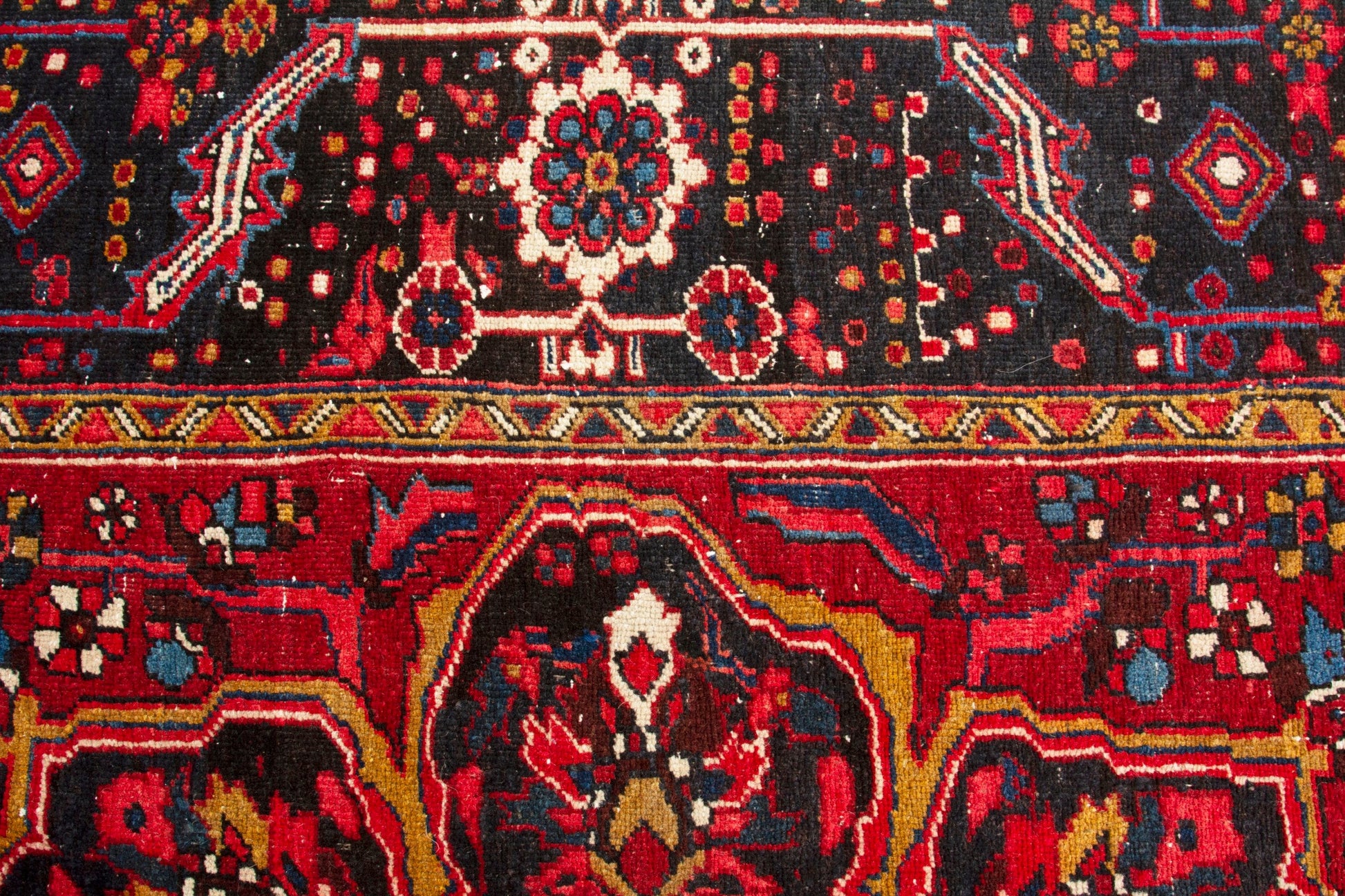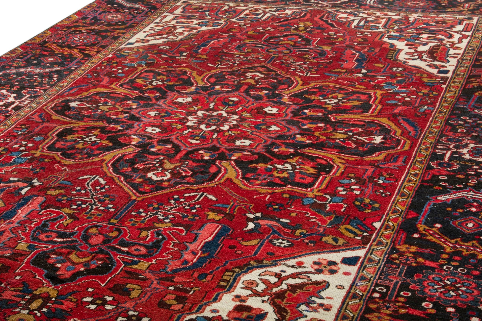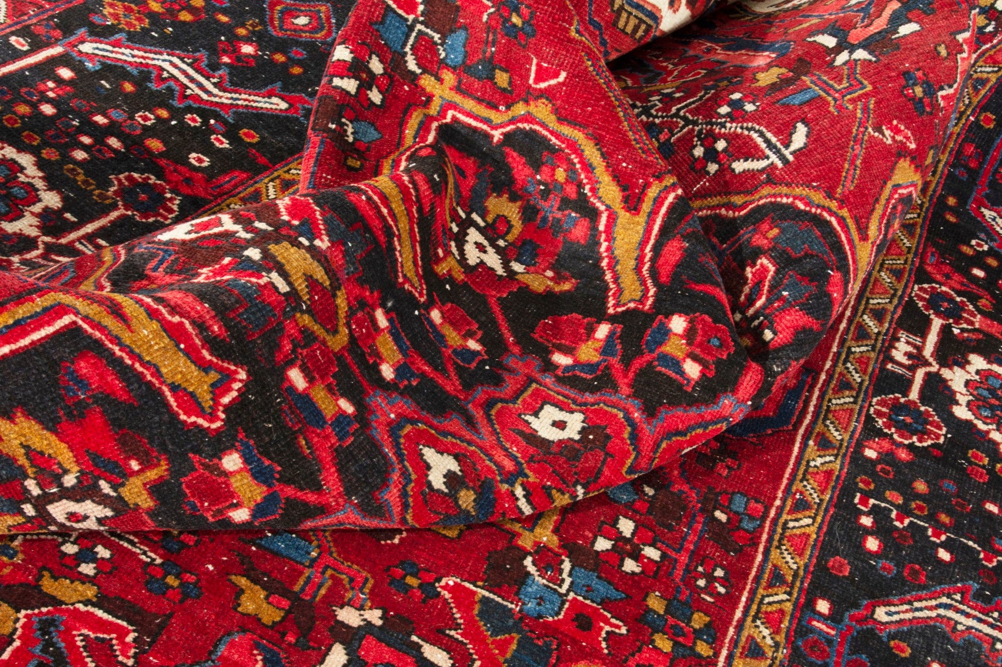 All the rugs we sell are professionally washed and cleaned; age-related wear and natural inconsistencies are inherent in these unique, handcrafted vintage rugs.