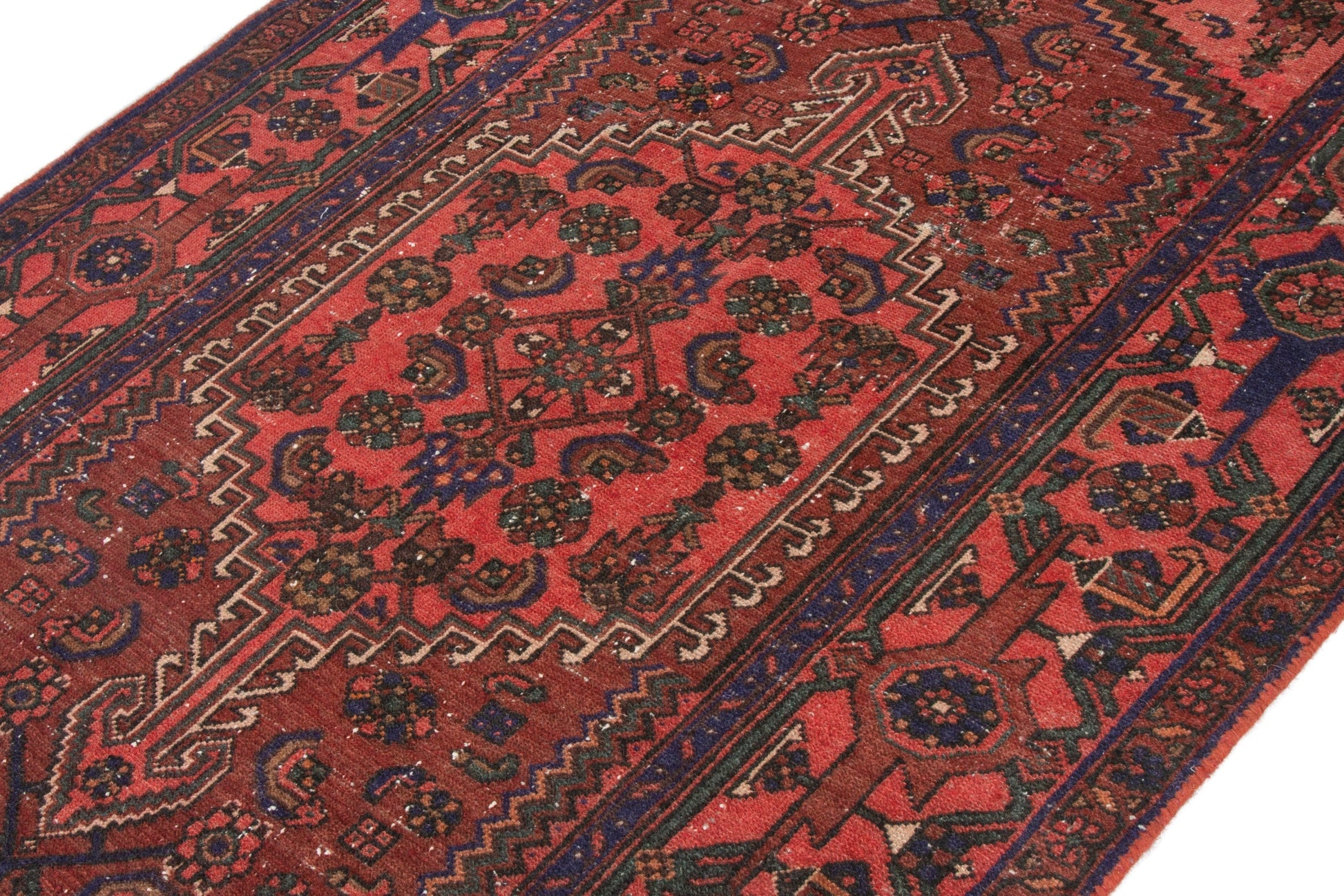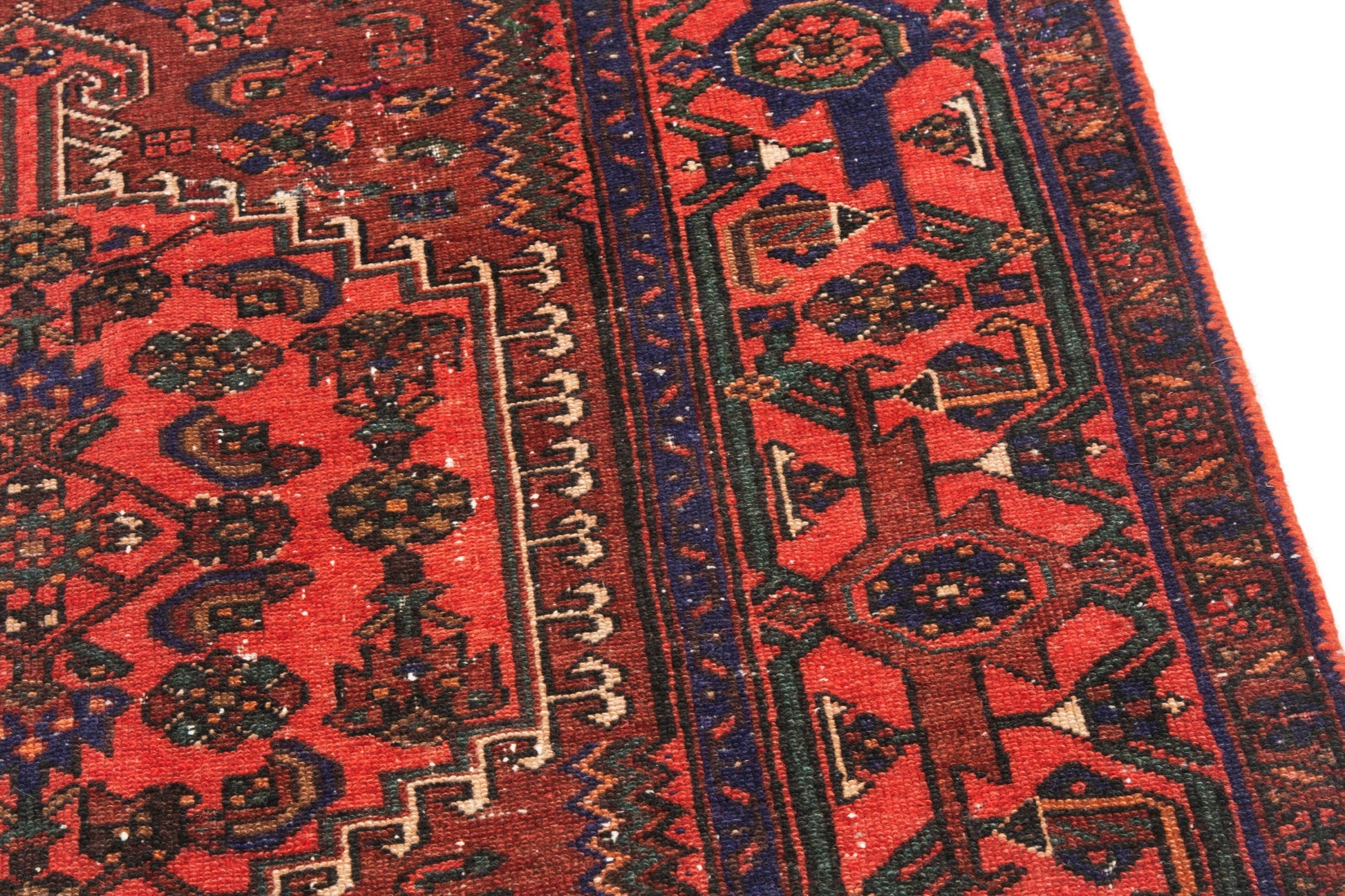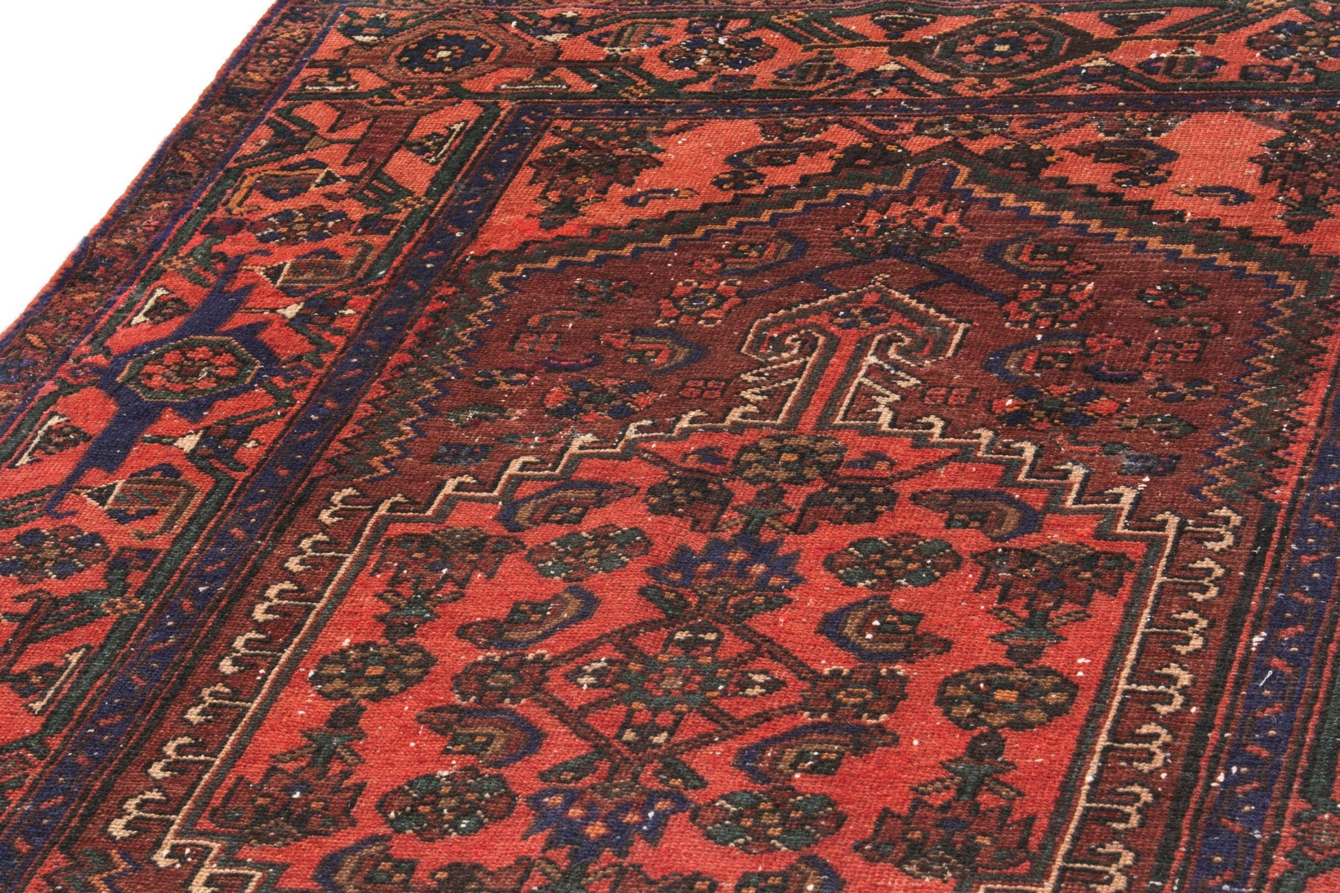 All the rugs we sell are professionally washed and cleaned; age-related wear and natural inconsistencies are inherent in these unique, handcrafted vintage rugs.