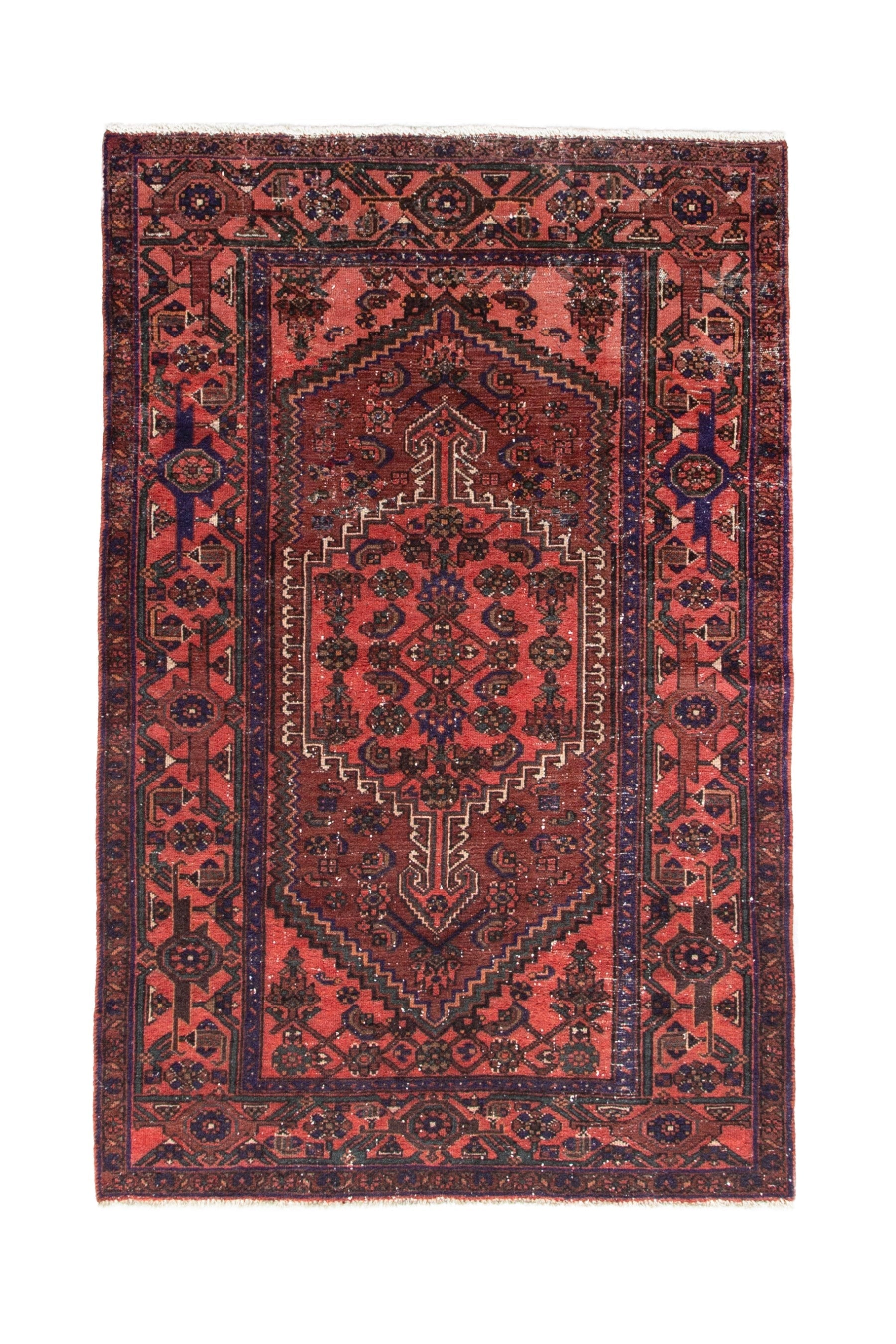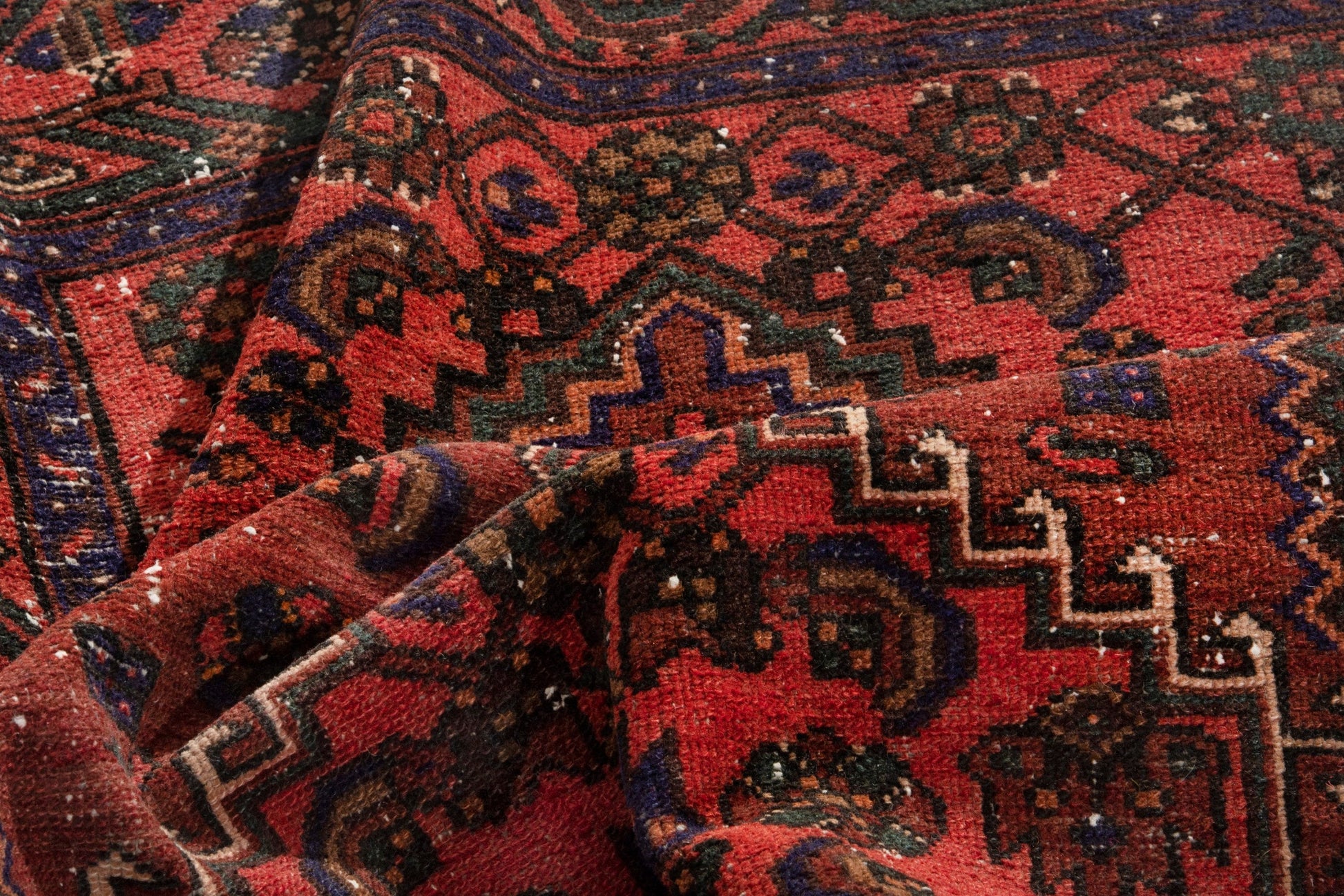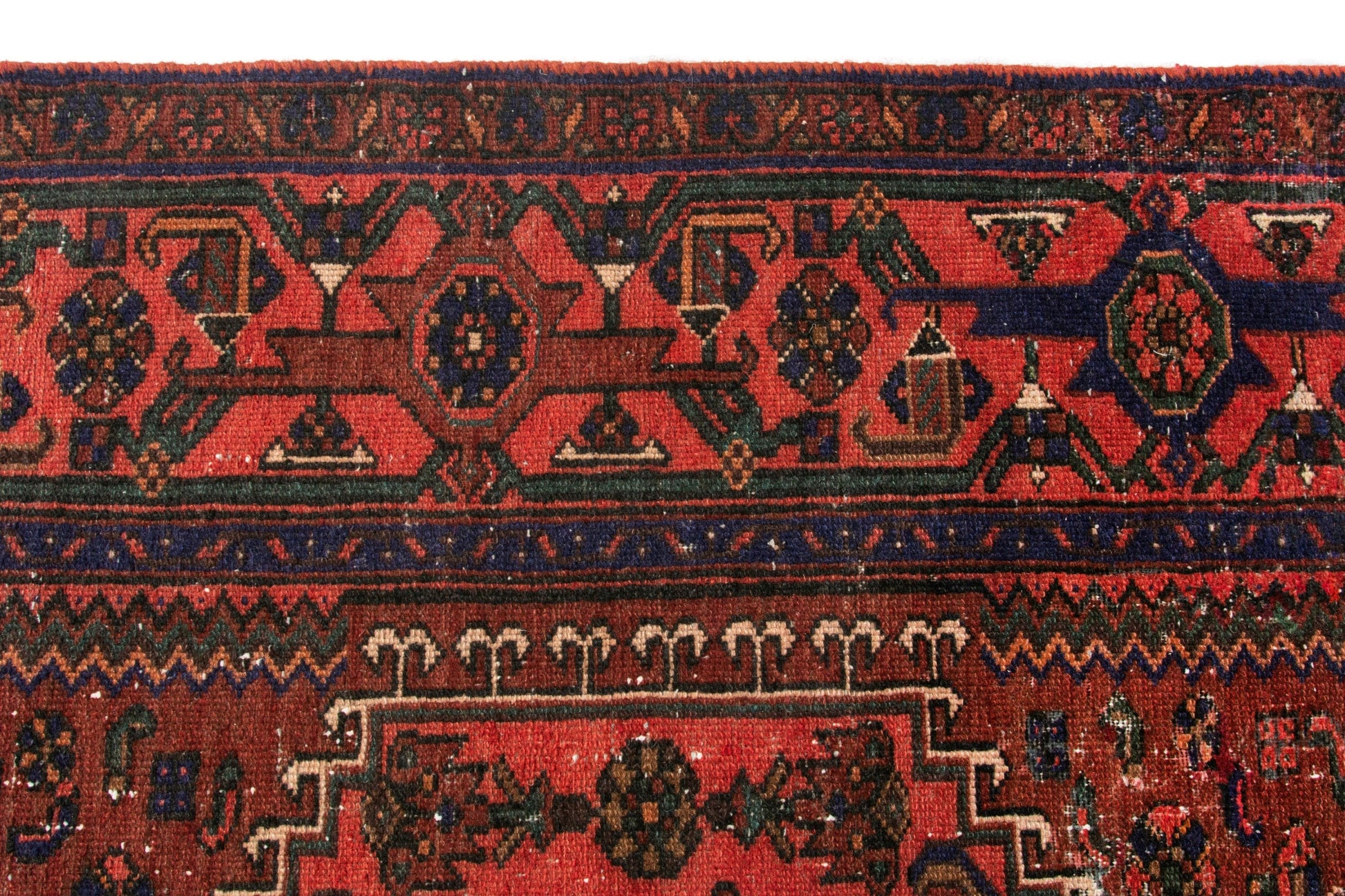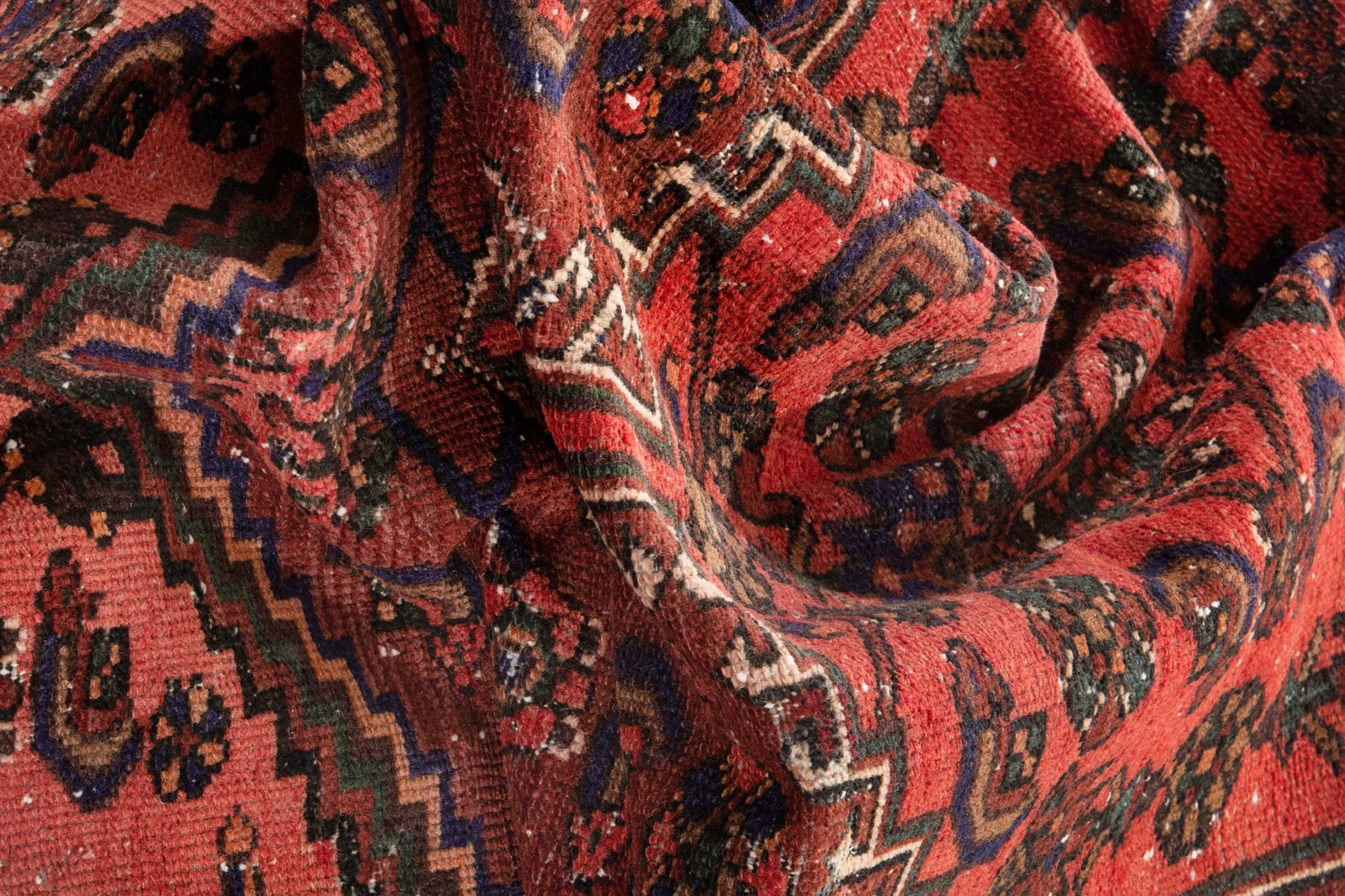 All the rugs we sell are professionally washed and cleaned; age-related wear and natural inconsistencies are inherent in these unique, handcrafted vintage rugs.