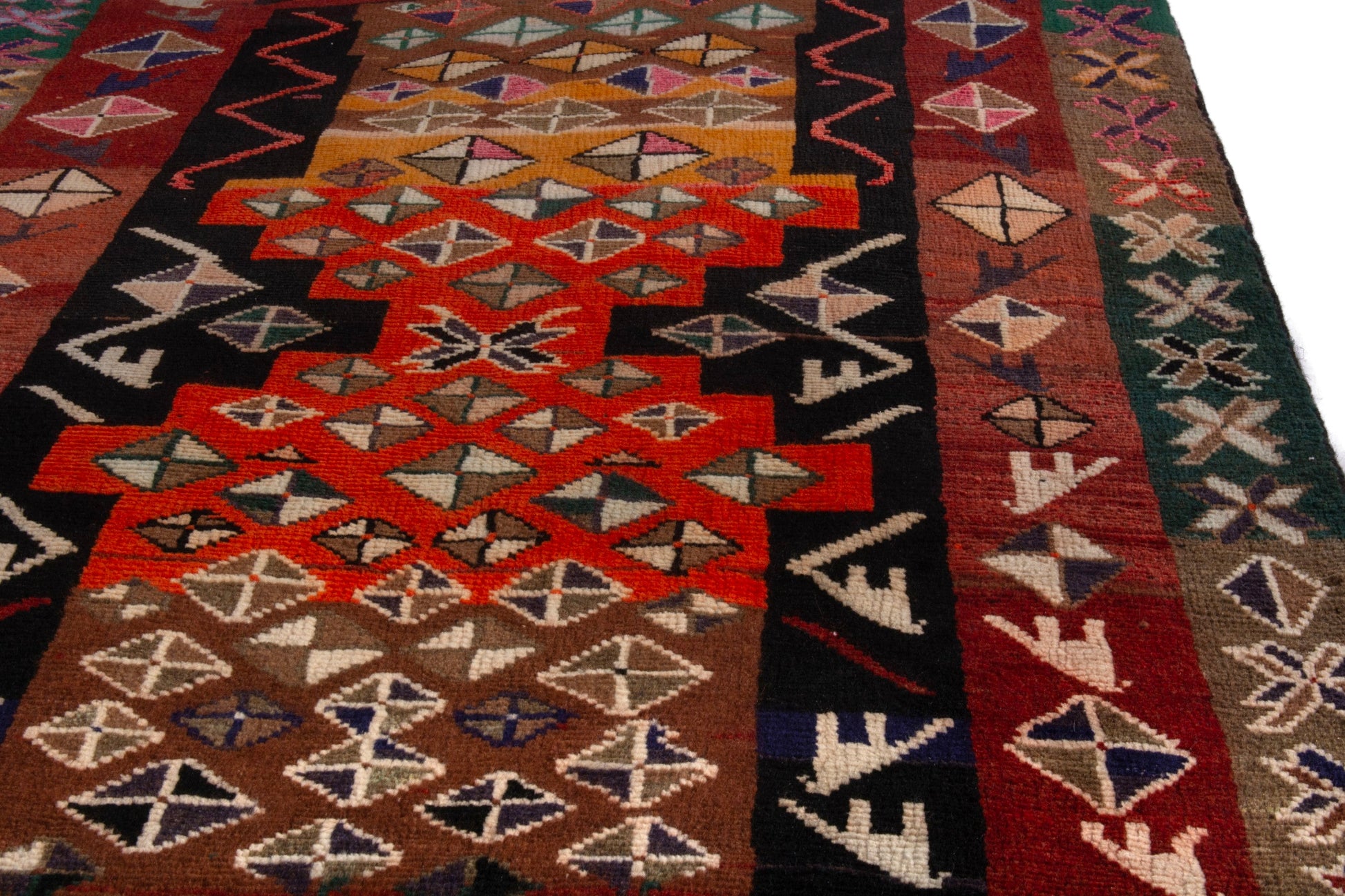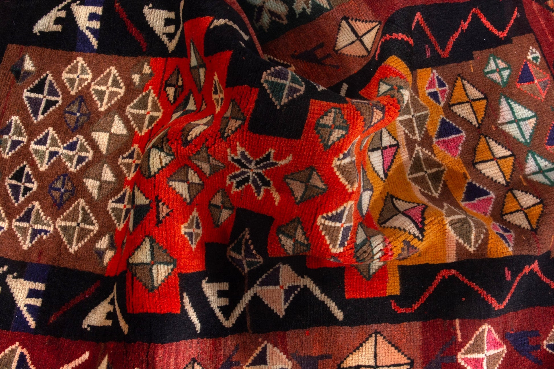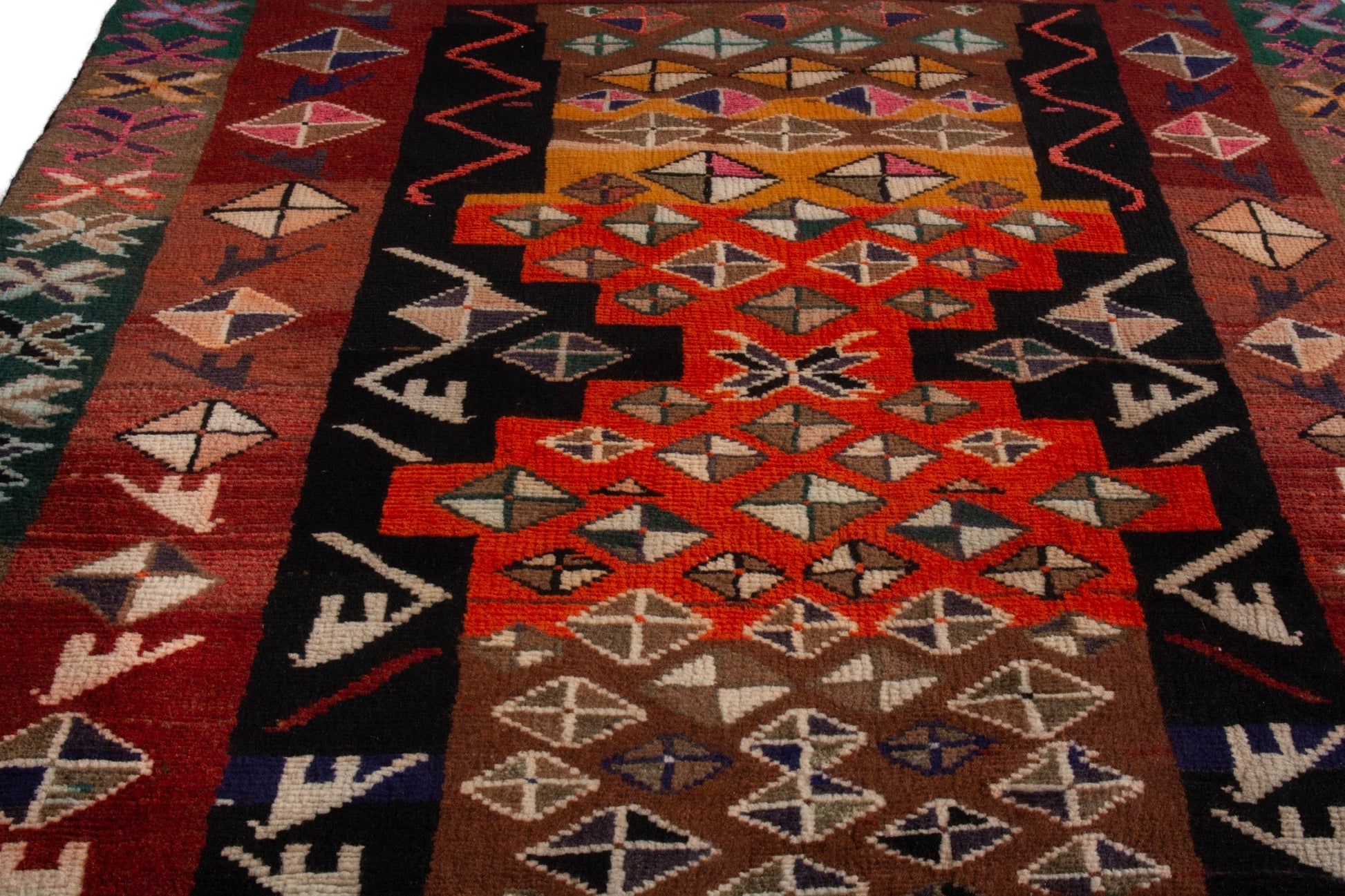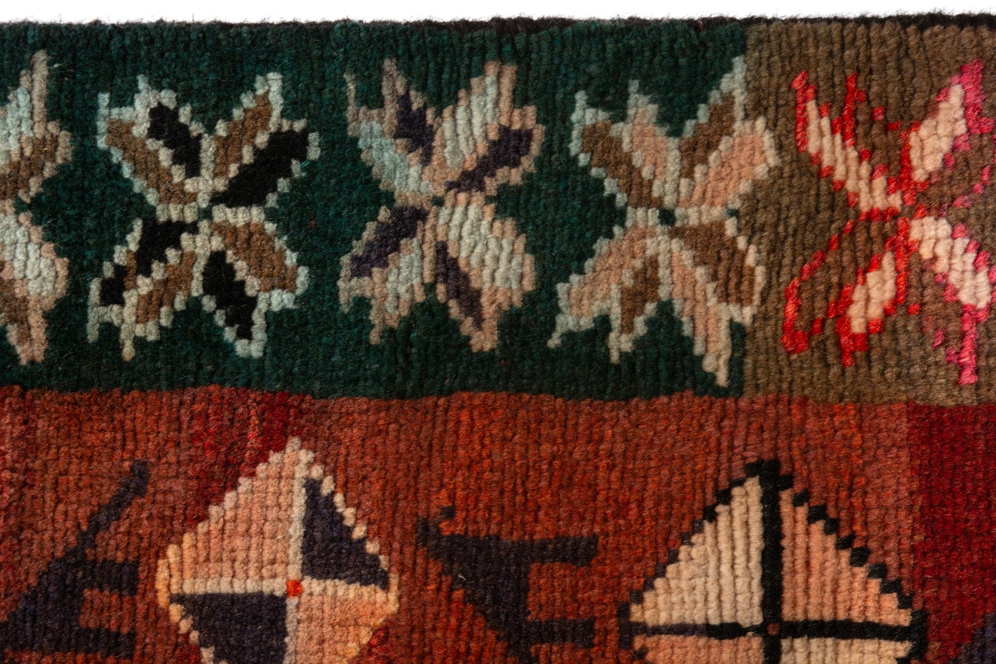 All the rugs we sell are professionally washed and cleaned; age-related wear and natural inconsistencies are inherent in these unique, handcrafted vintage rugs.