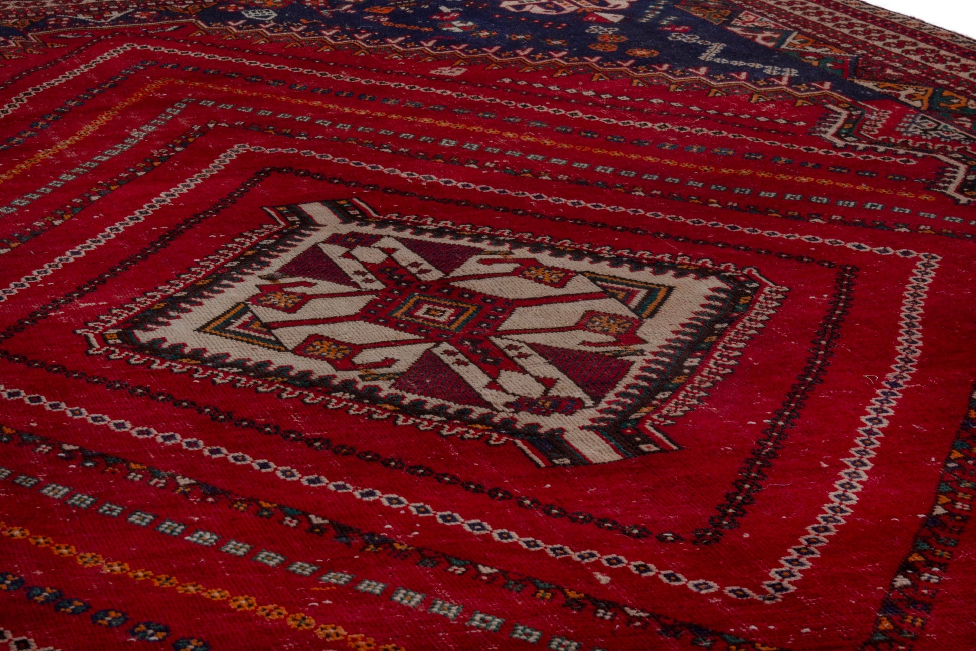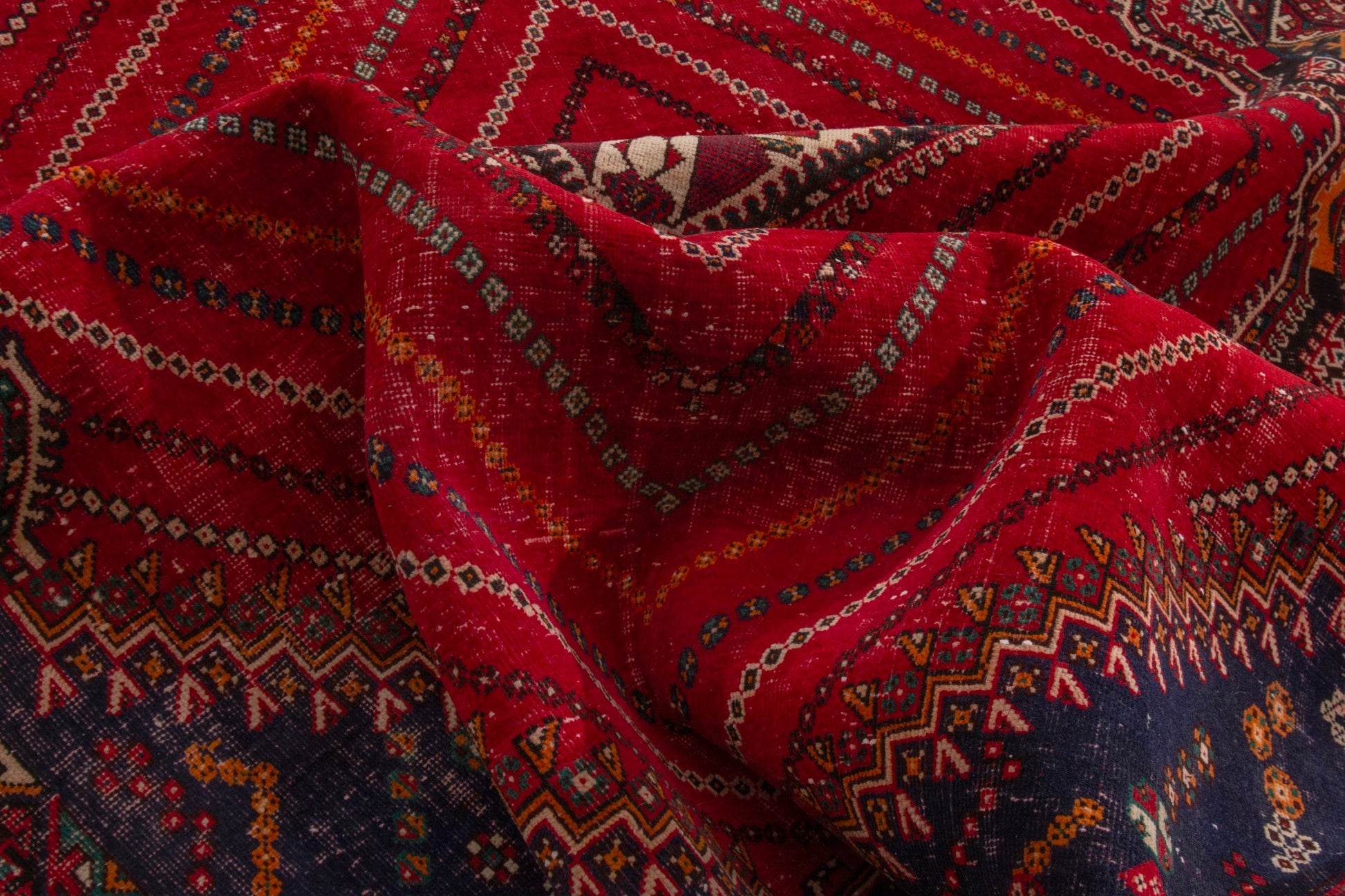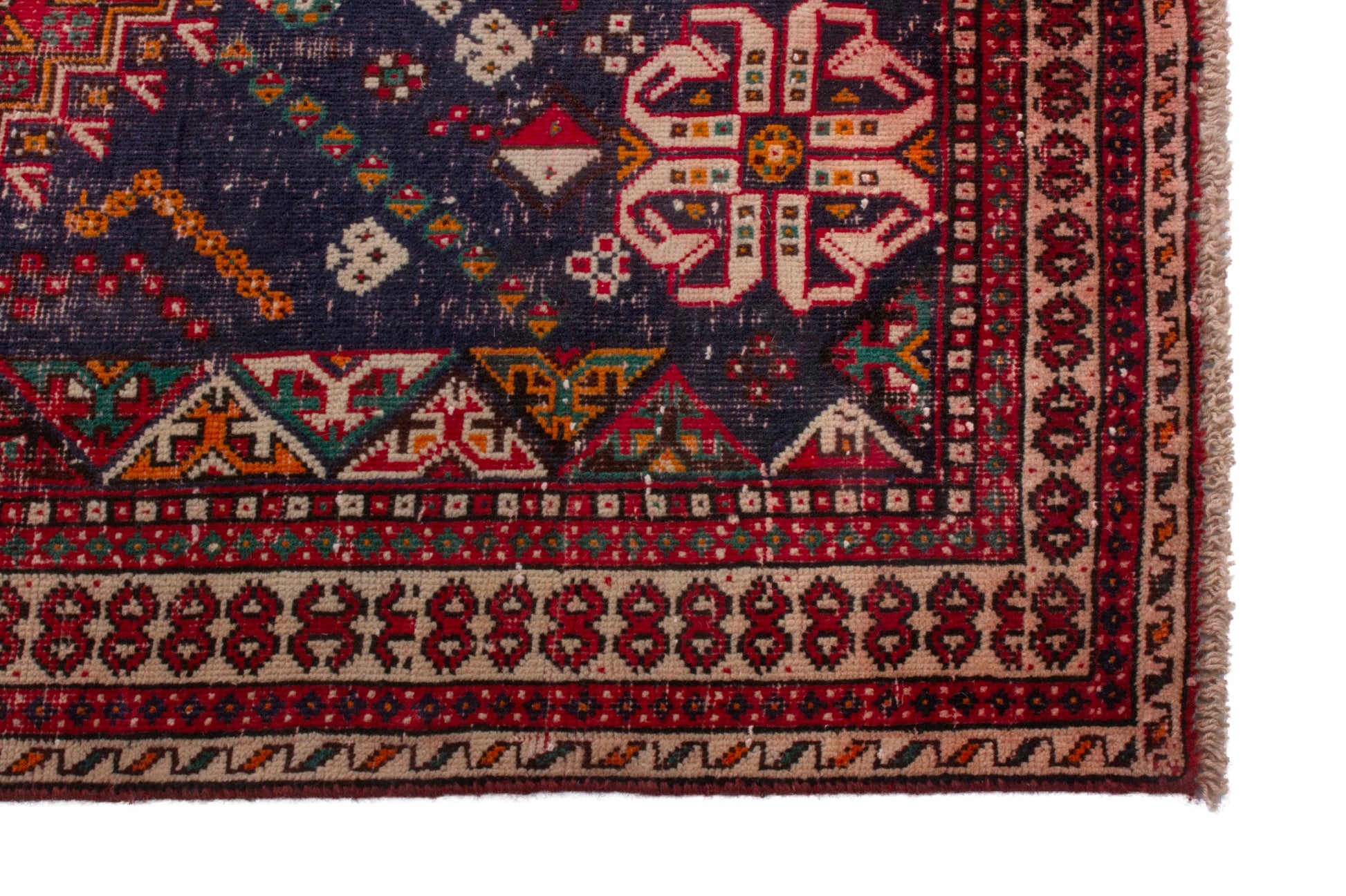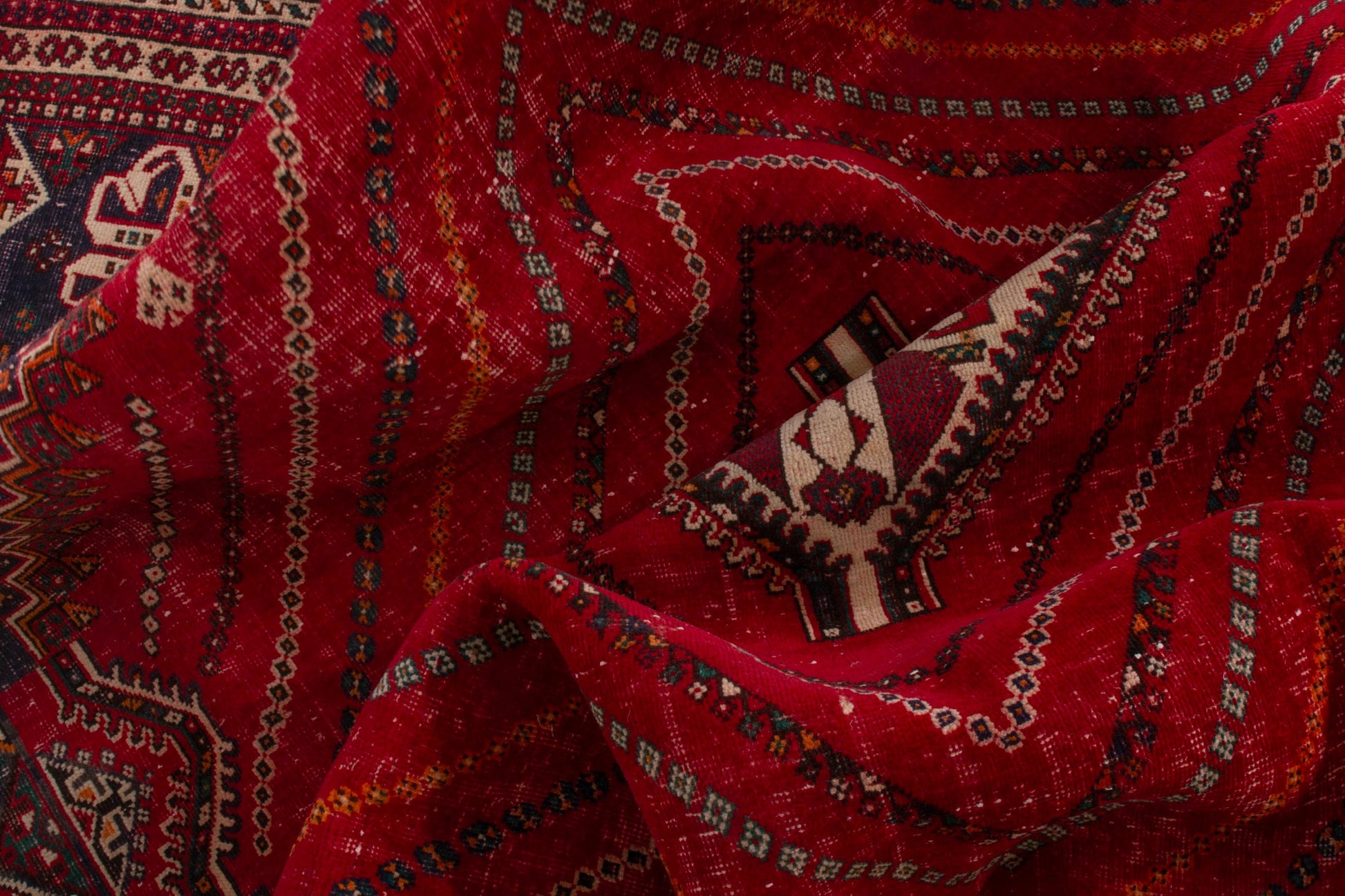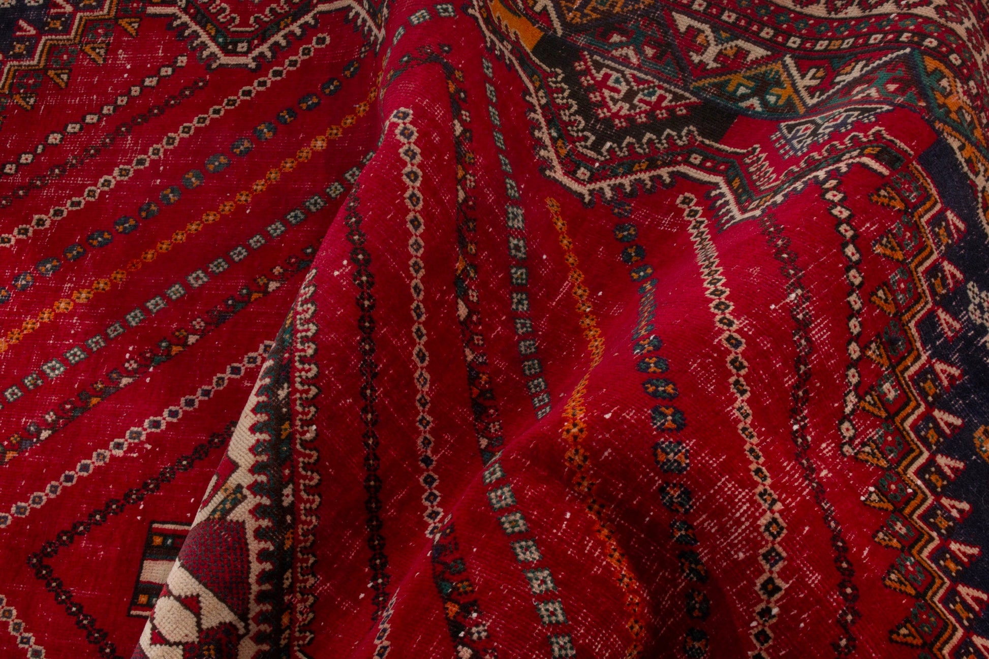 All the rugs we sell are professionally washed and cleaned; age-related wear and natural inconsistencies are inherent in these unique, handcrafted vintage rugs.