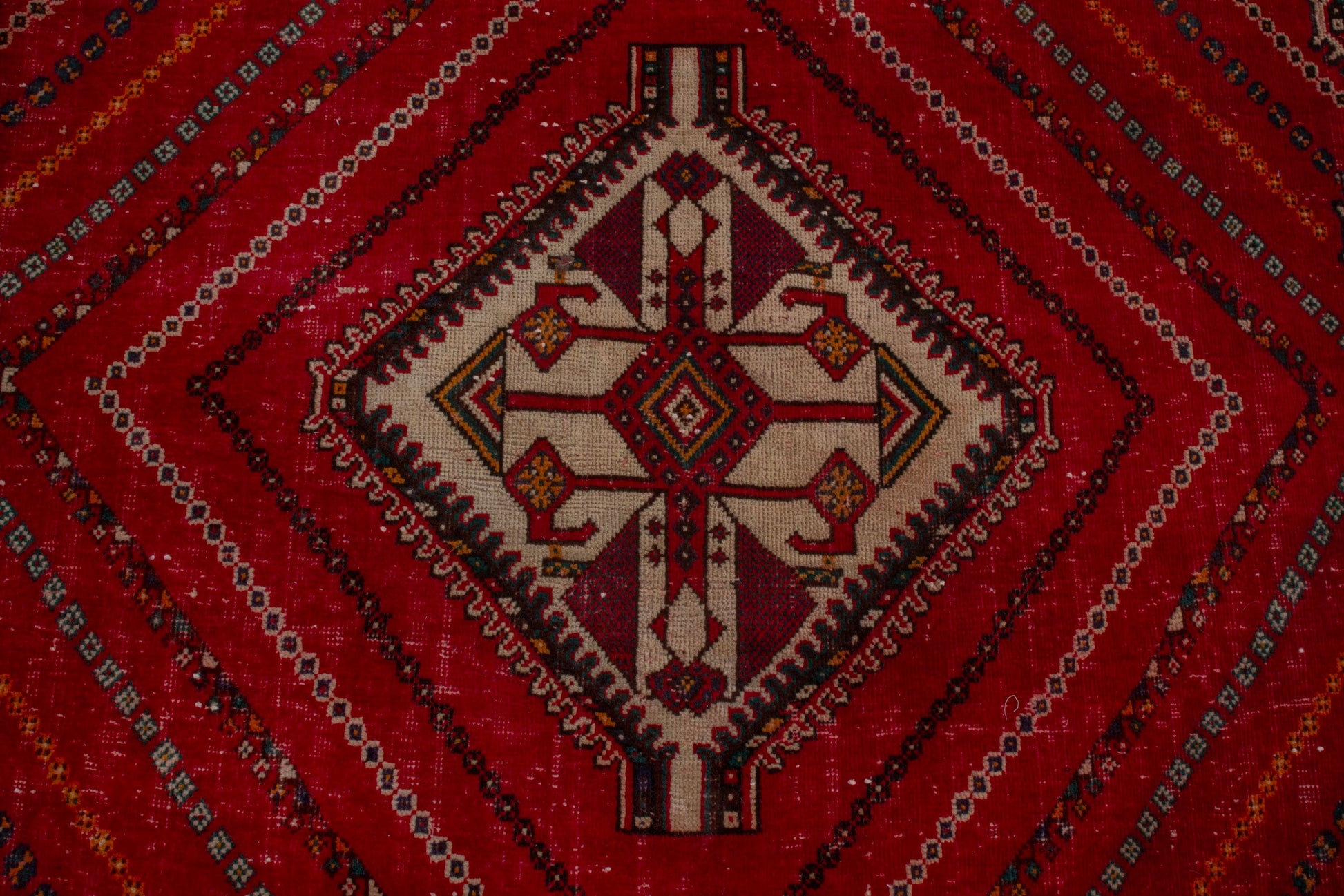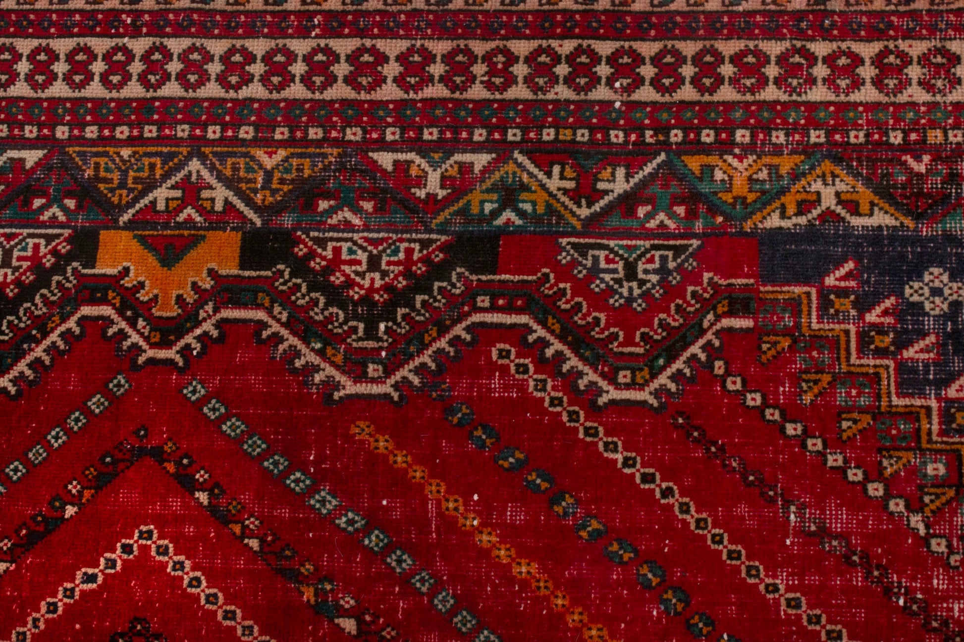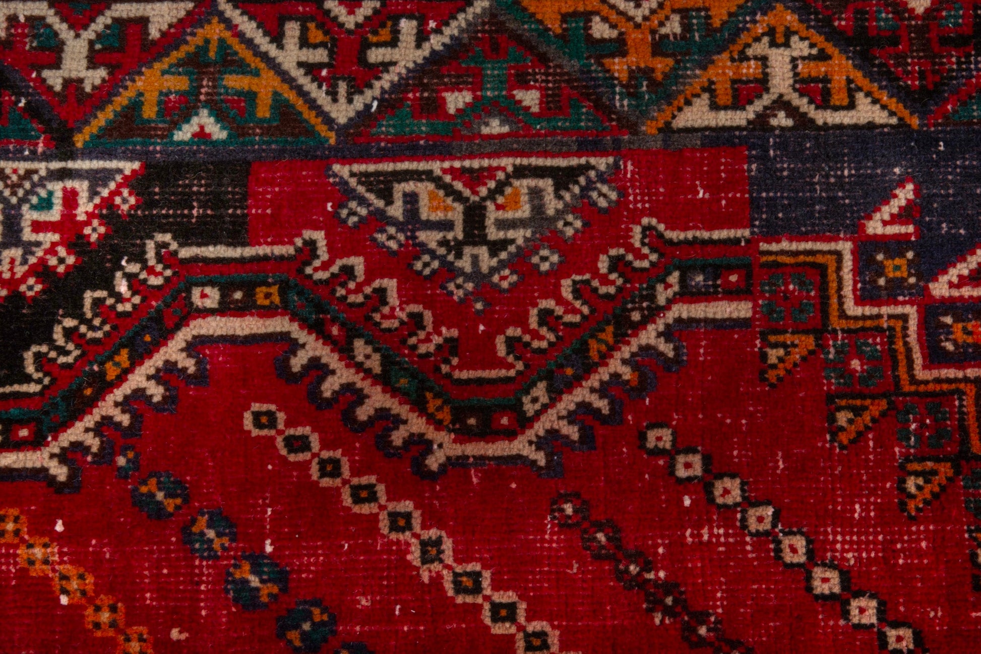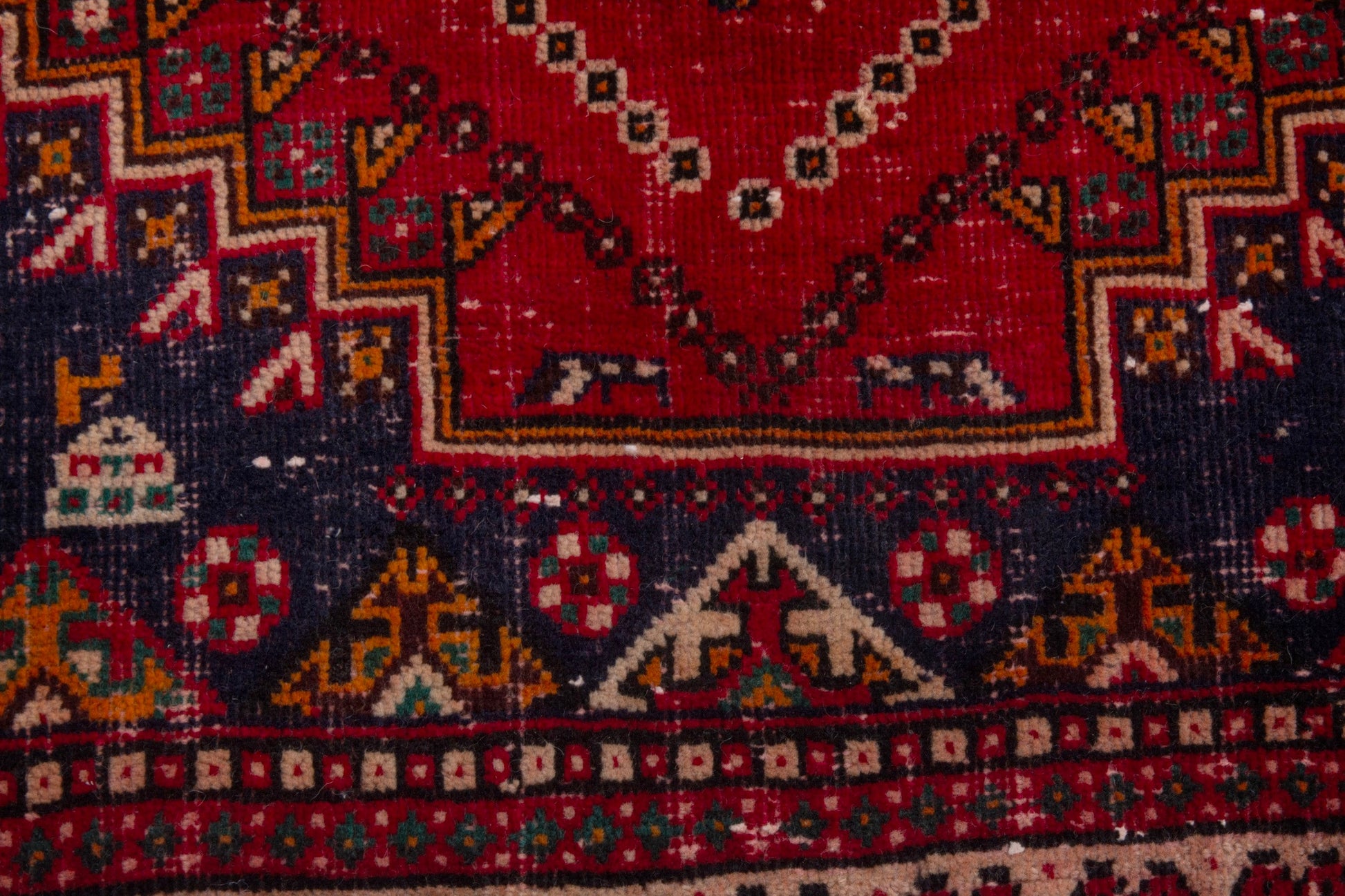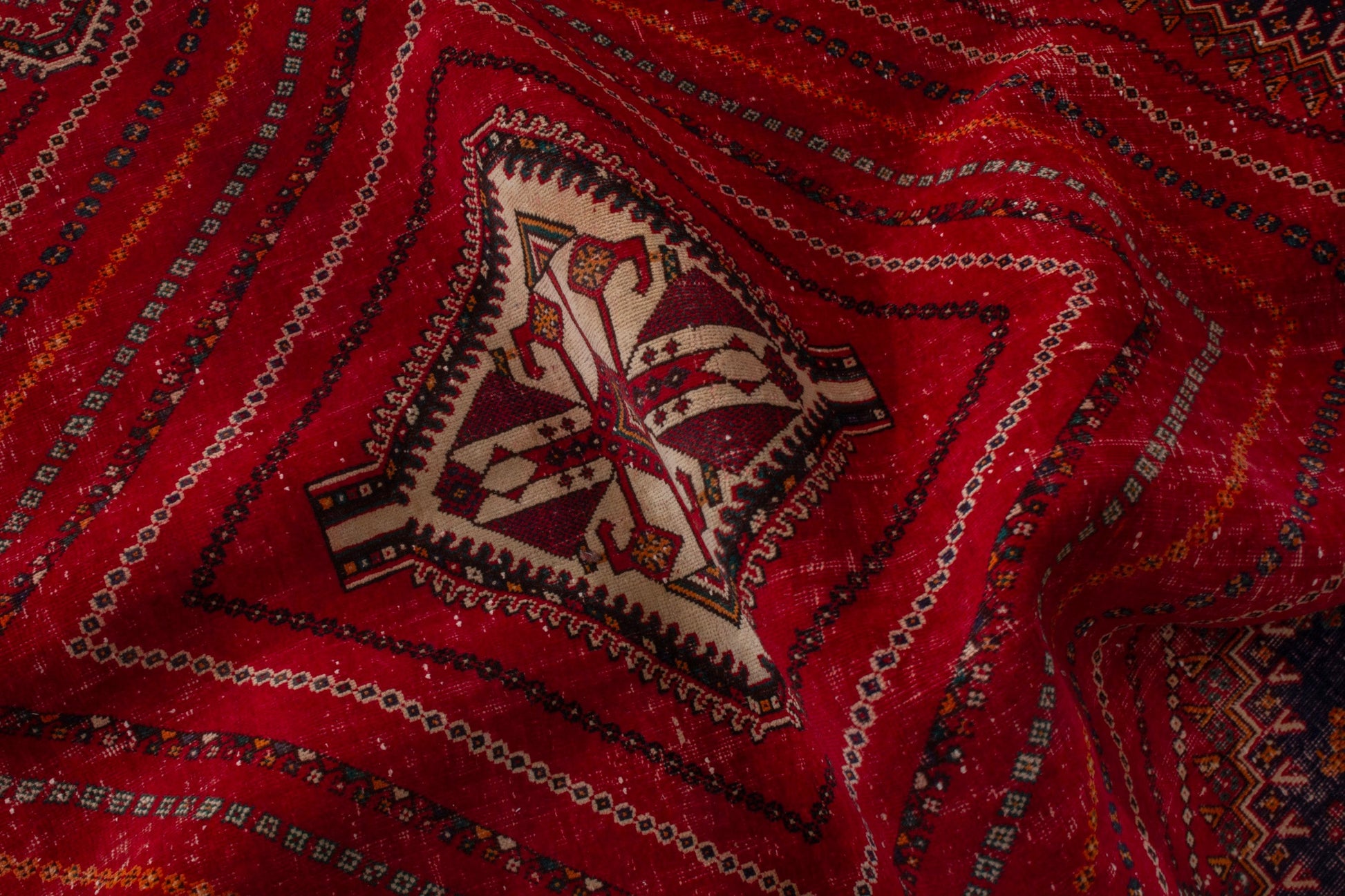 All the rugs we sell are professionally washed and cleaned; age-related wear and natural inconsistencies are inherent in these unique, handcrafted vintage rugs.
