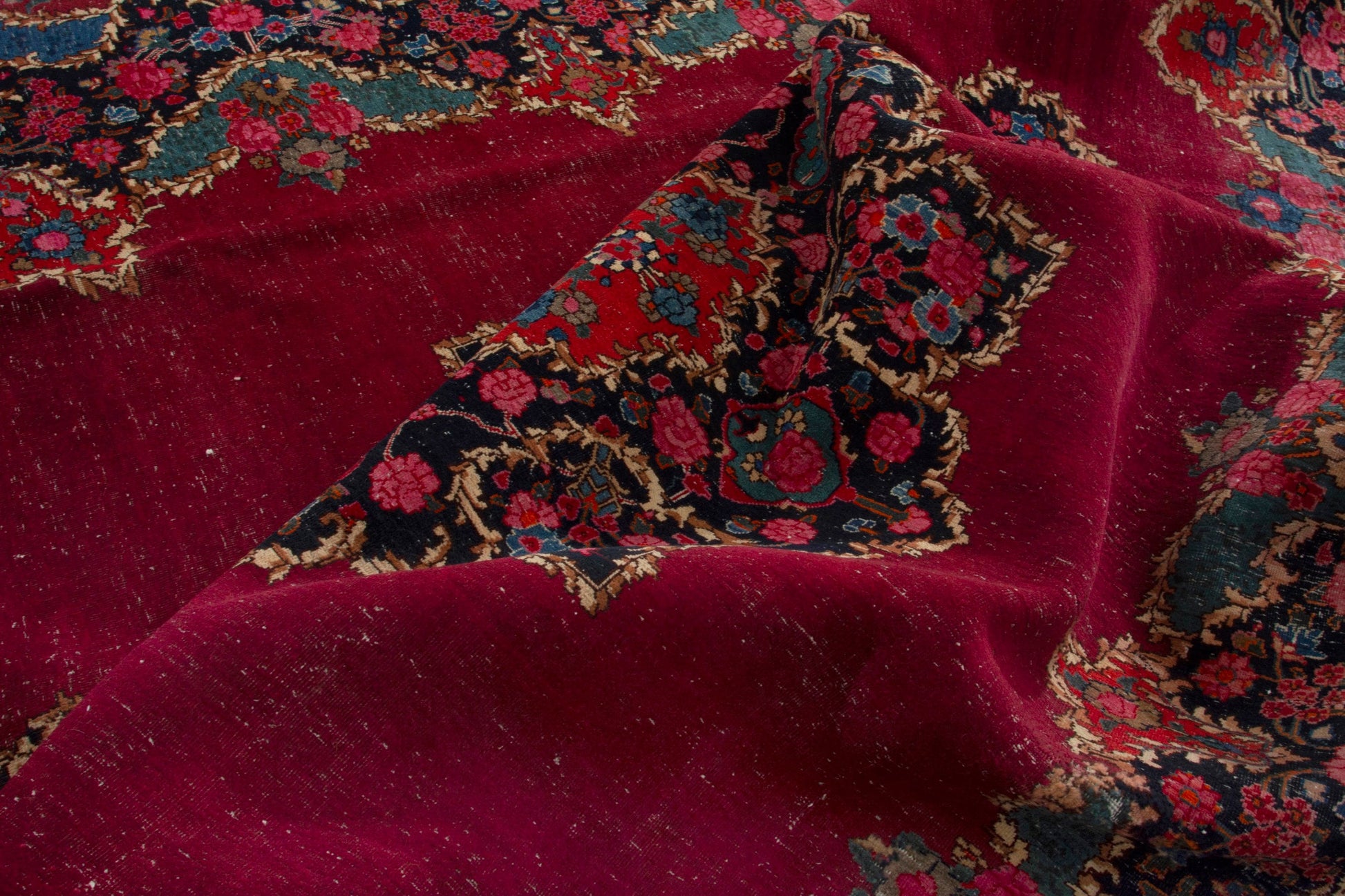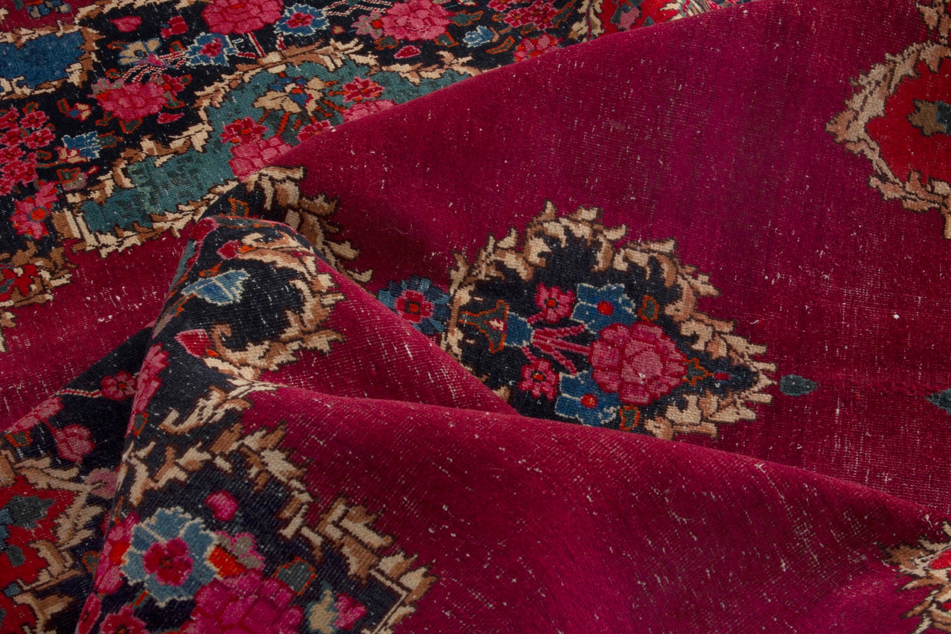 All the rugs we sell are professionally washed and cleaned; age-related wear and natural inconsistencies are inherent in these unique, handcrafted vintage rugs.