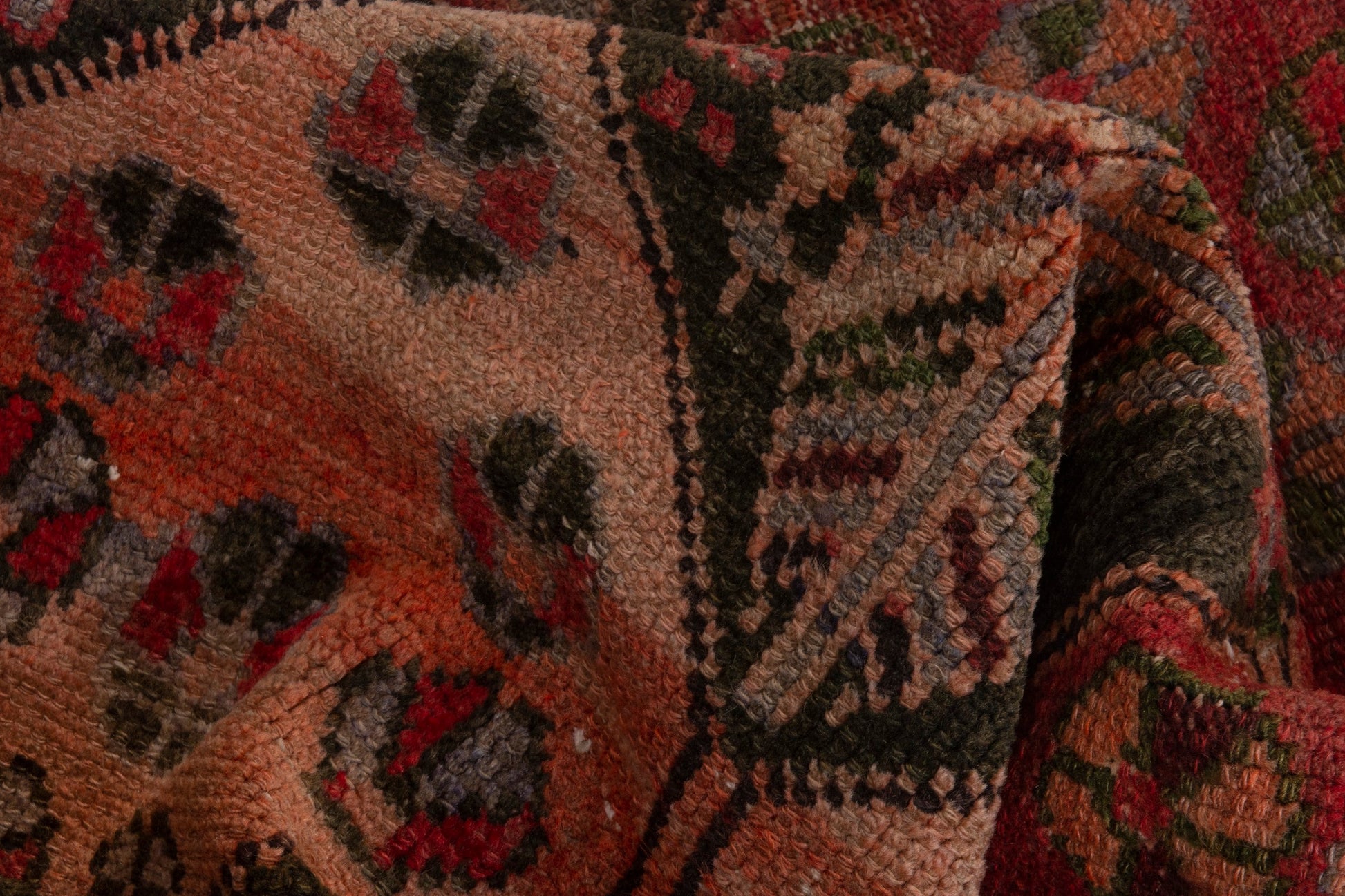 All the rugs we sell are professionally washed and cleaned; age-related wear and natural inconsistencies are inherent in these unique, handcrafted vintage rugs.