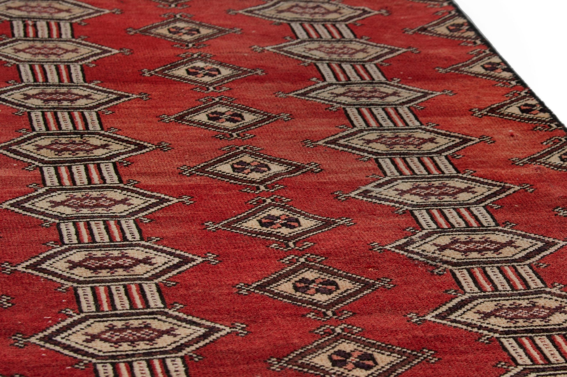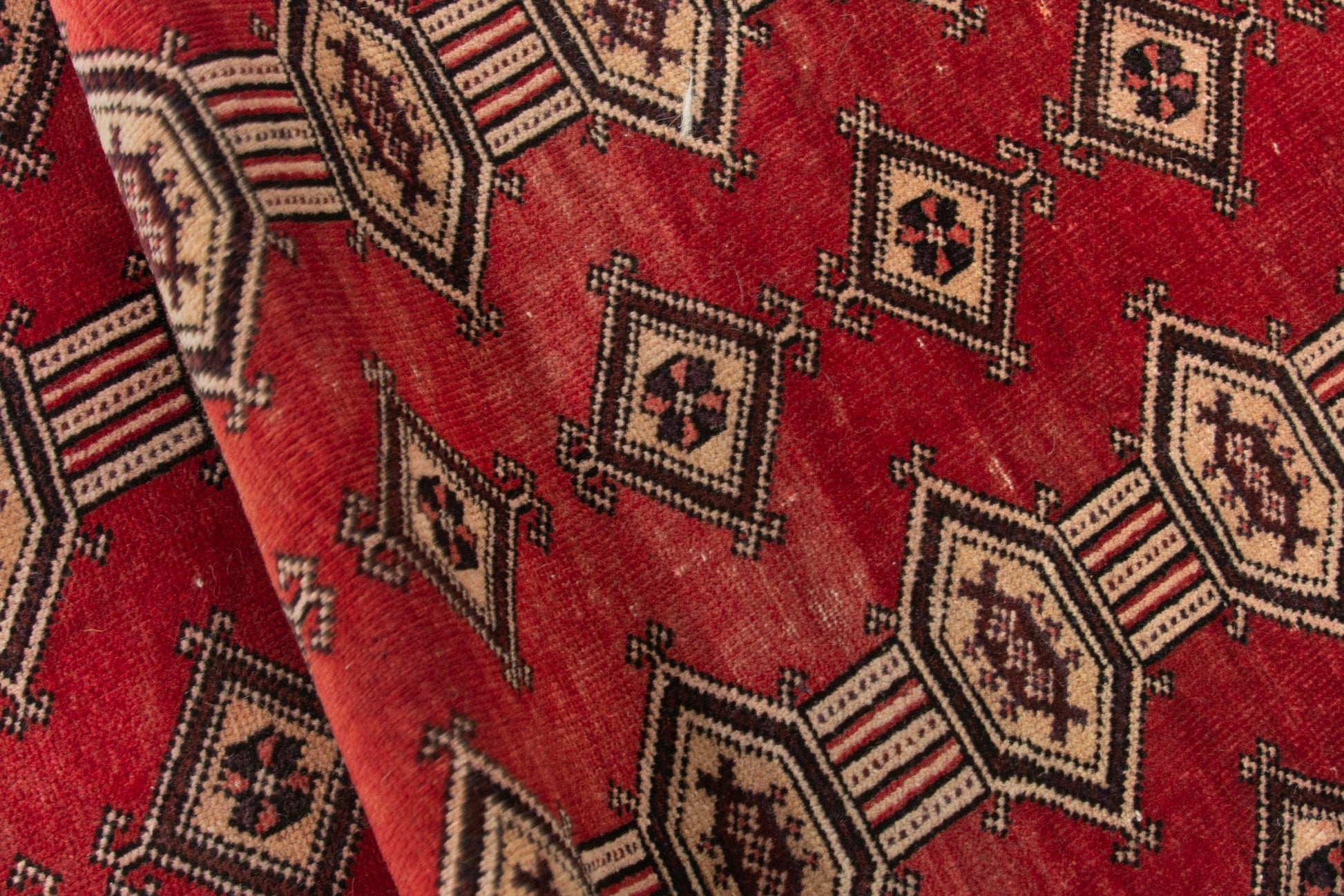 All the rugs we sell are professionally washed and cleaned; age-related wear and natural inconsistencies are inherent in these unique, handcrafted vintage rugs.