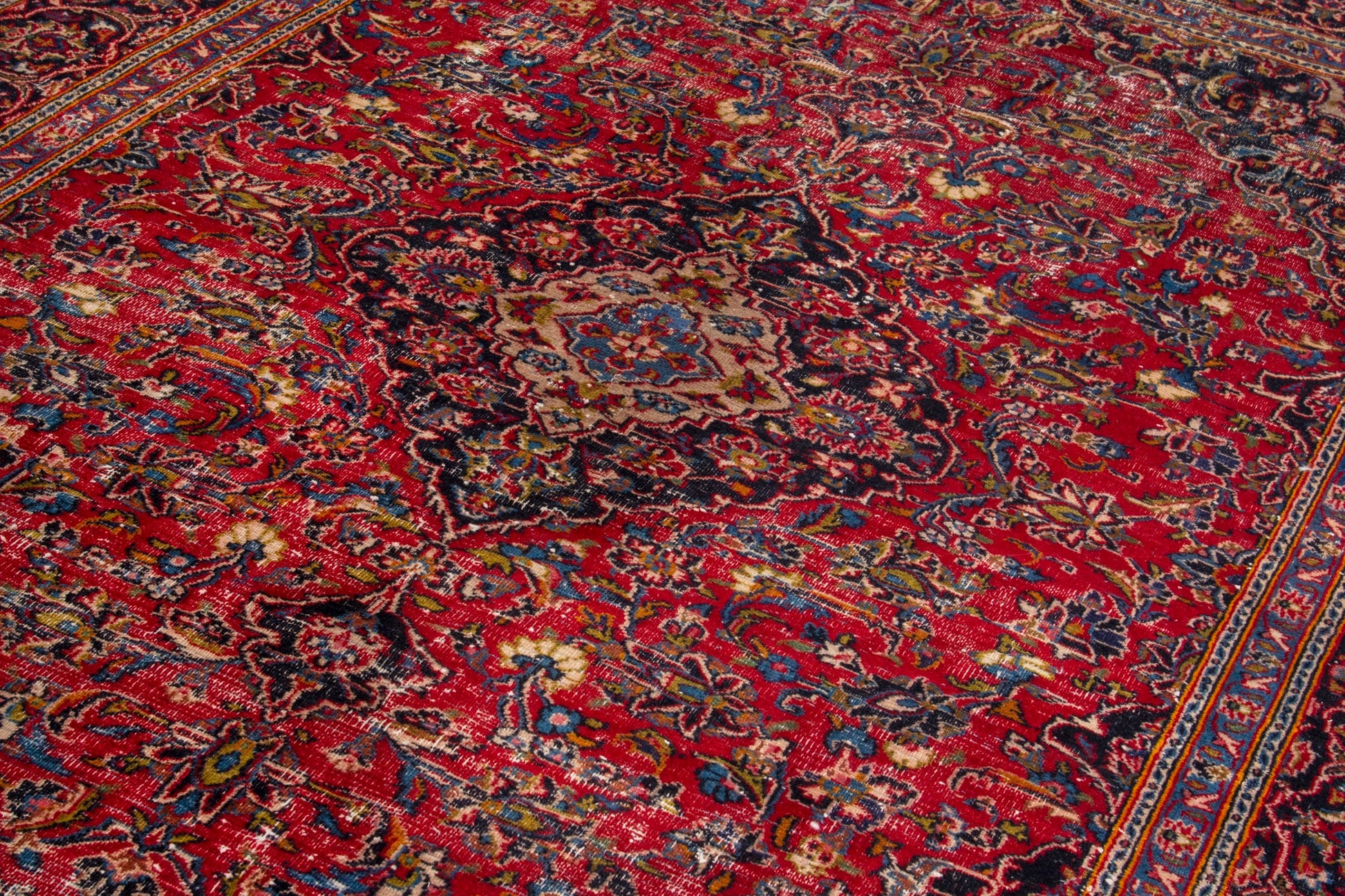 All the rugs we sell are professionally washed and cleaned; age-related wear and natural inconsistencies are inherent in these unique, handcrafted vintage rugs.