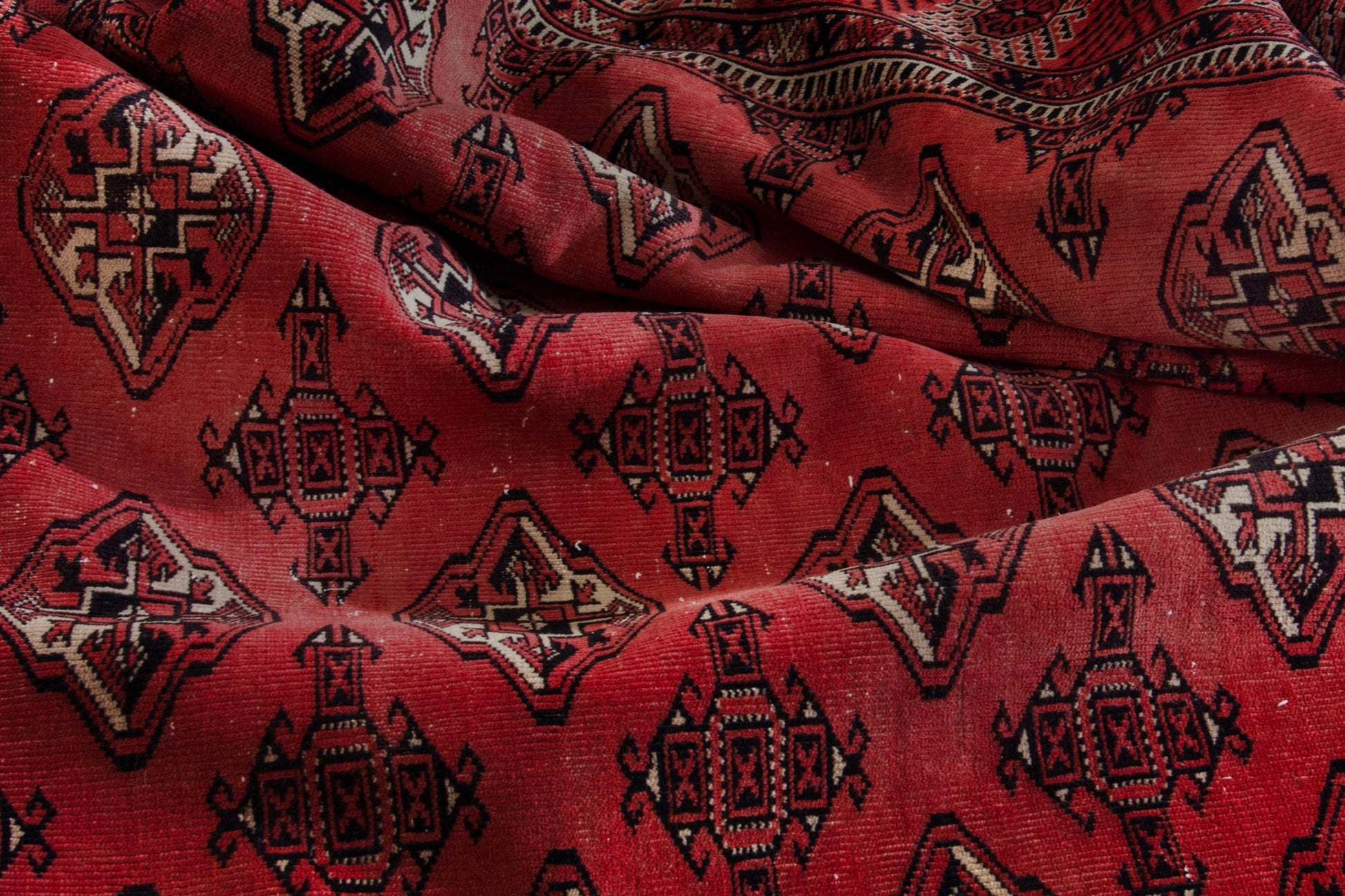 All the rugs we sell are professionally washed and cleaned; age-related wear and natural inconsistencies are inherent in these unique, handcrafted vintage rugs.