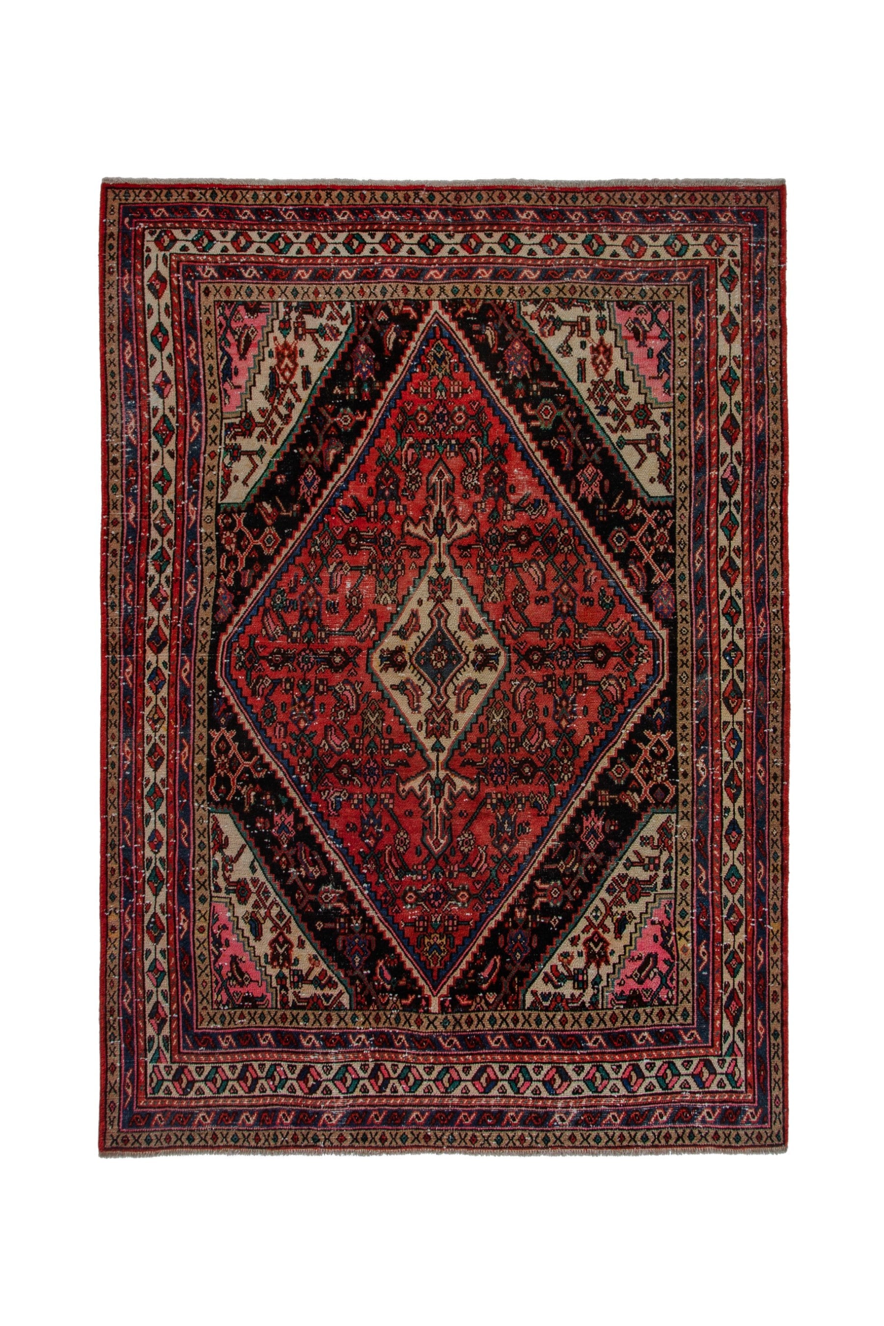 All the rugs we sell are professionally washed and cleaned; age-related wear and natural inconsistencies are inherent in these unique, handcrafted vintage rugs.