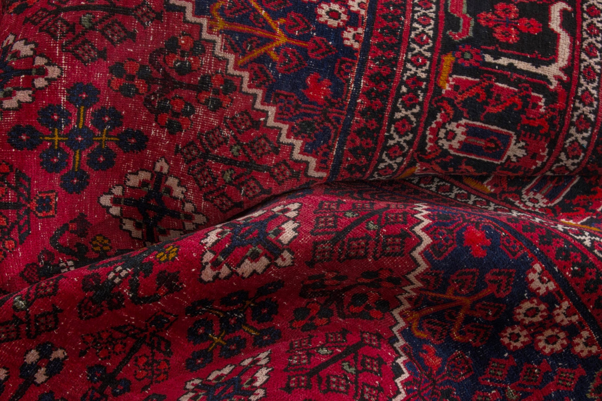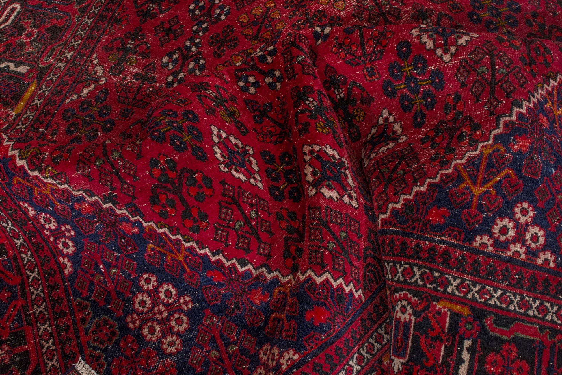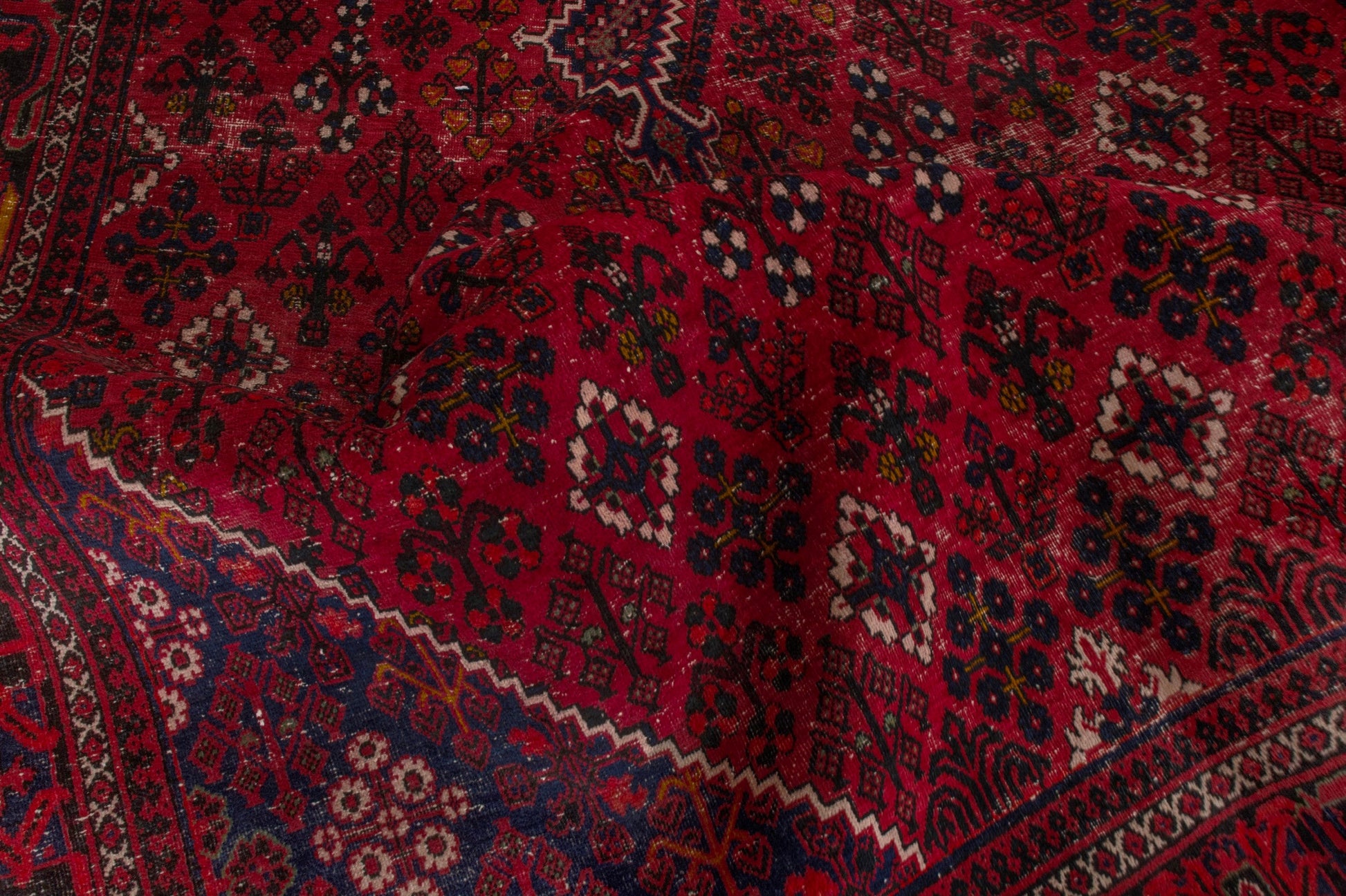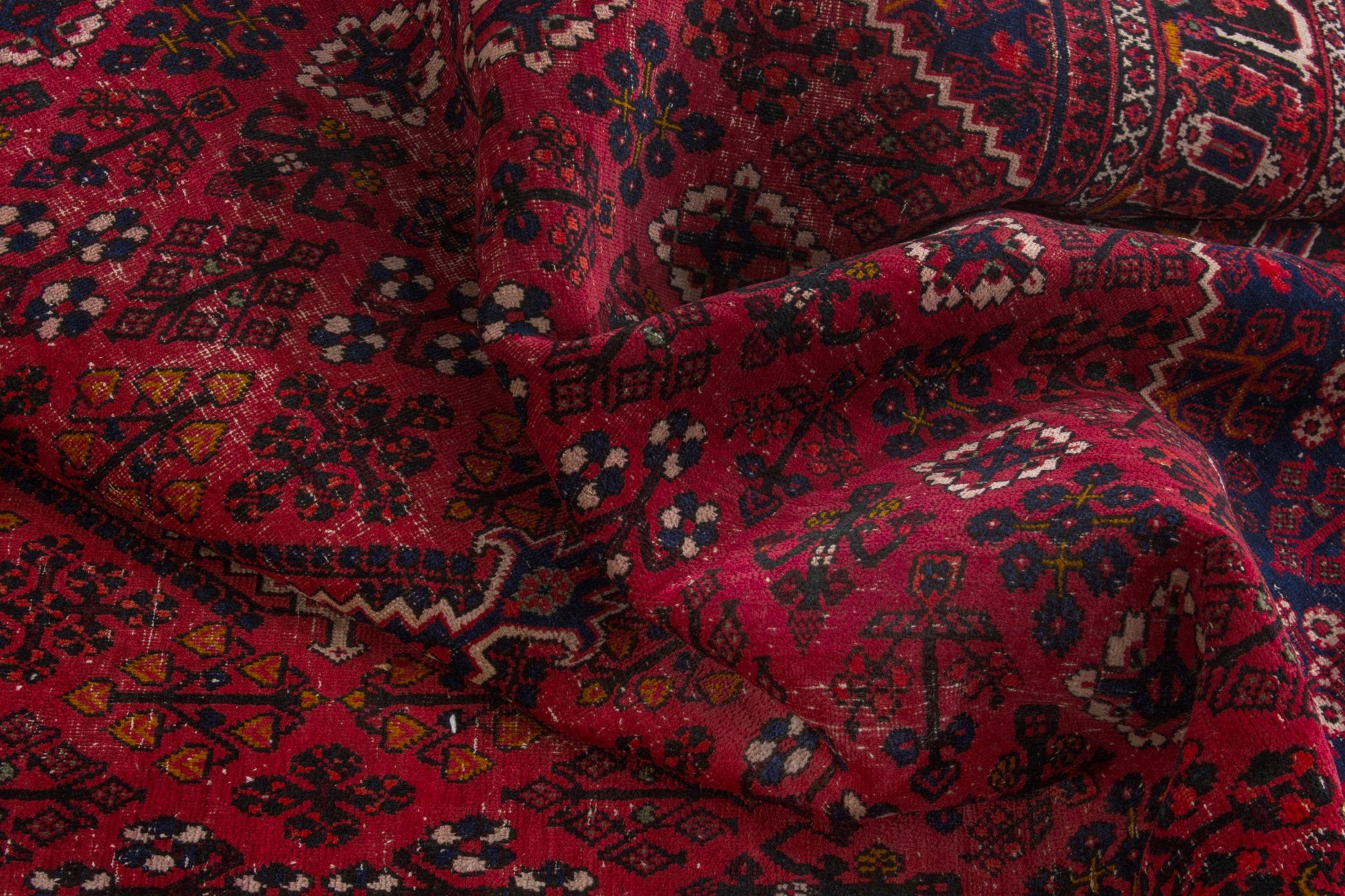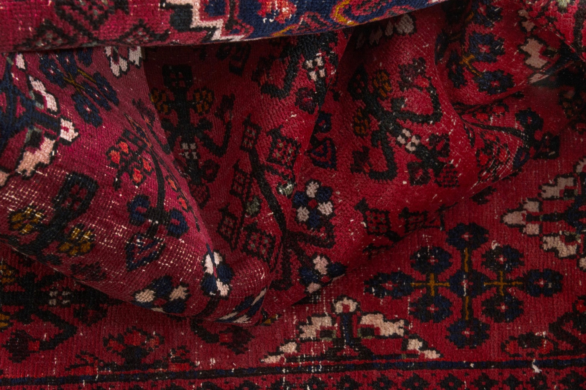 All the rugs we sell are professionally washed and cleaned; age-related wear and natural inconsistencies are inherent in these unique, handcrafted vintage rugs.