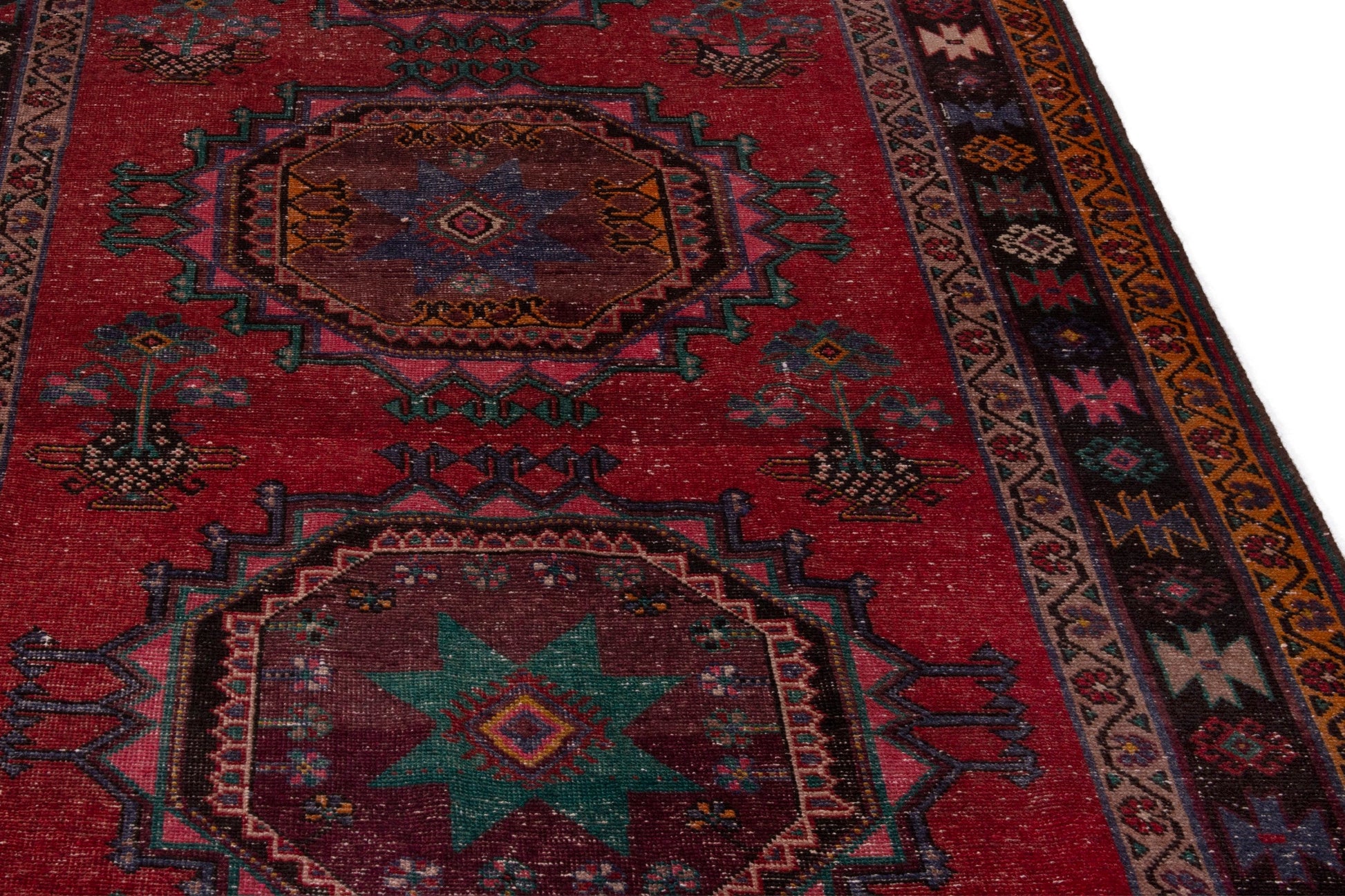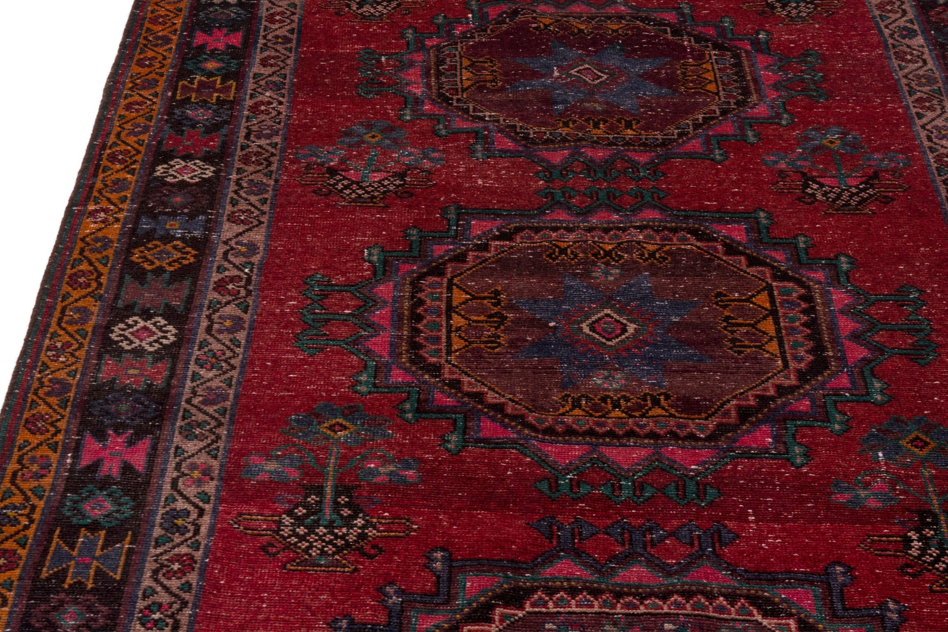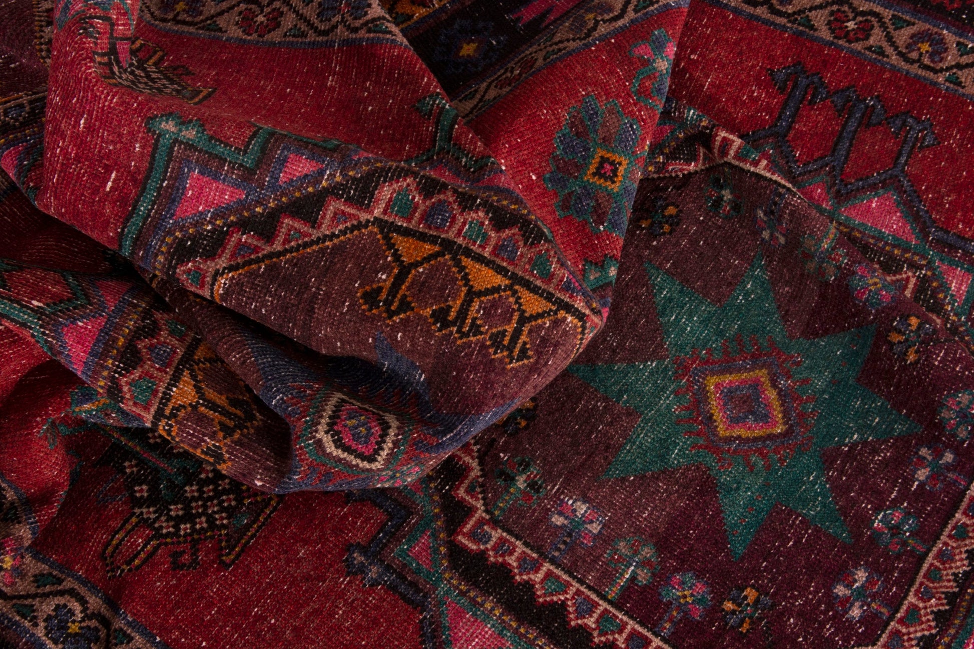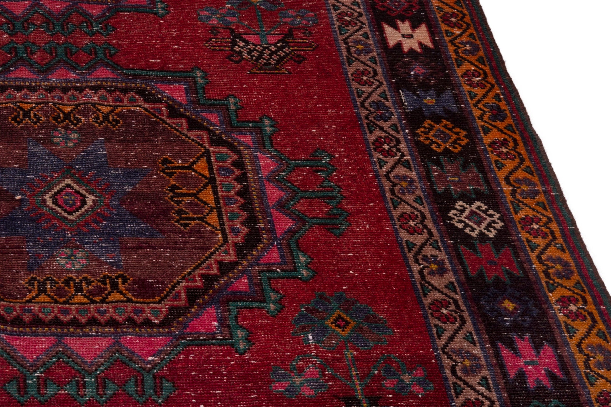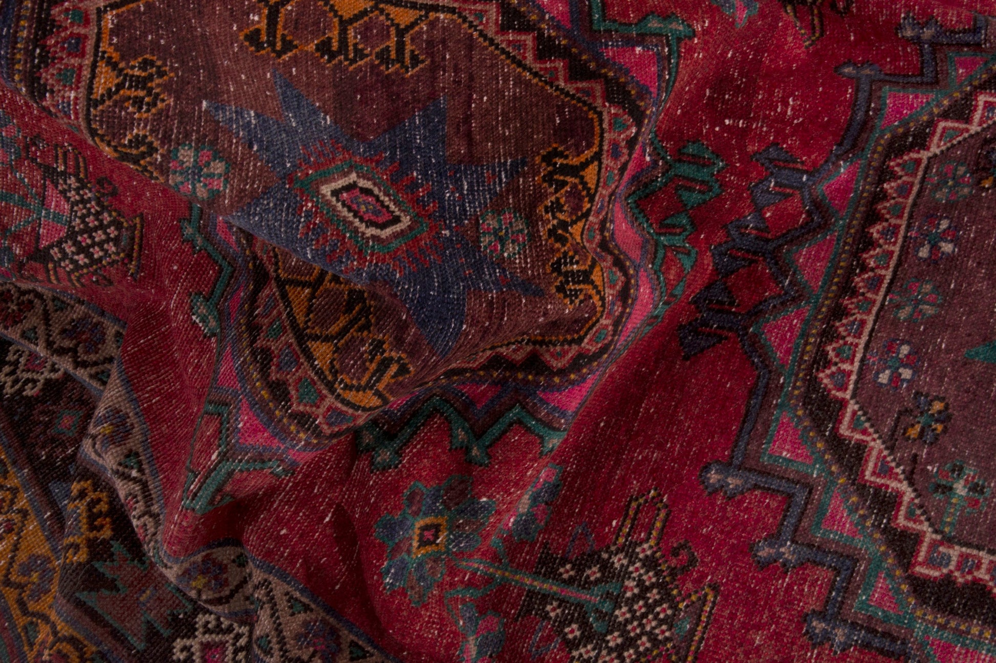 All the rugs we sell are professionally washed and cleaned; age-related wear and natural inconsistencies are inherent in these unique, handcrafted vintage rugs.