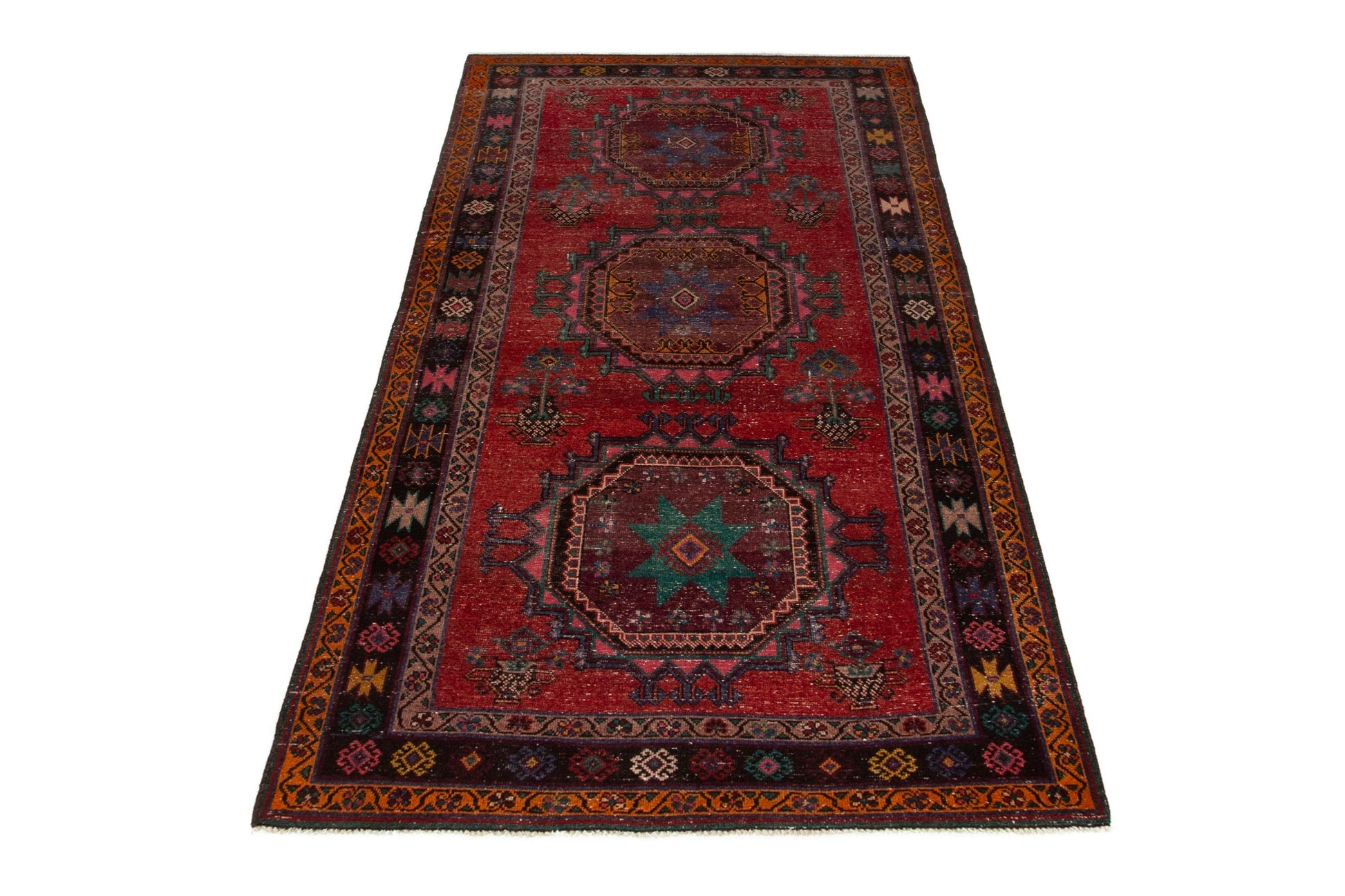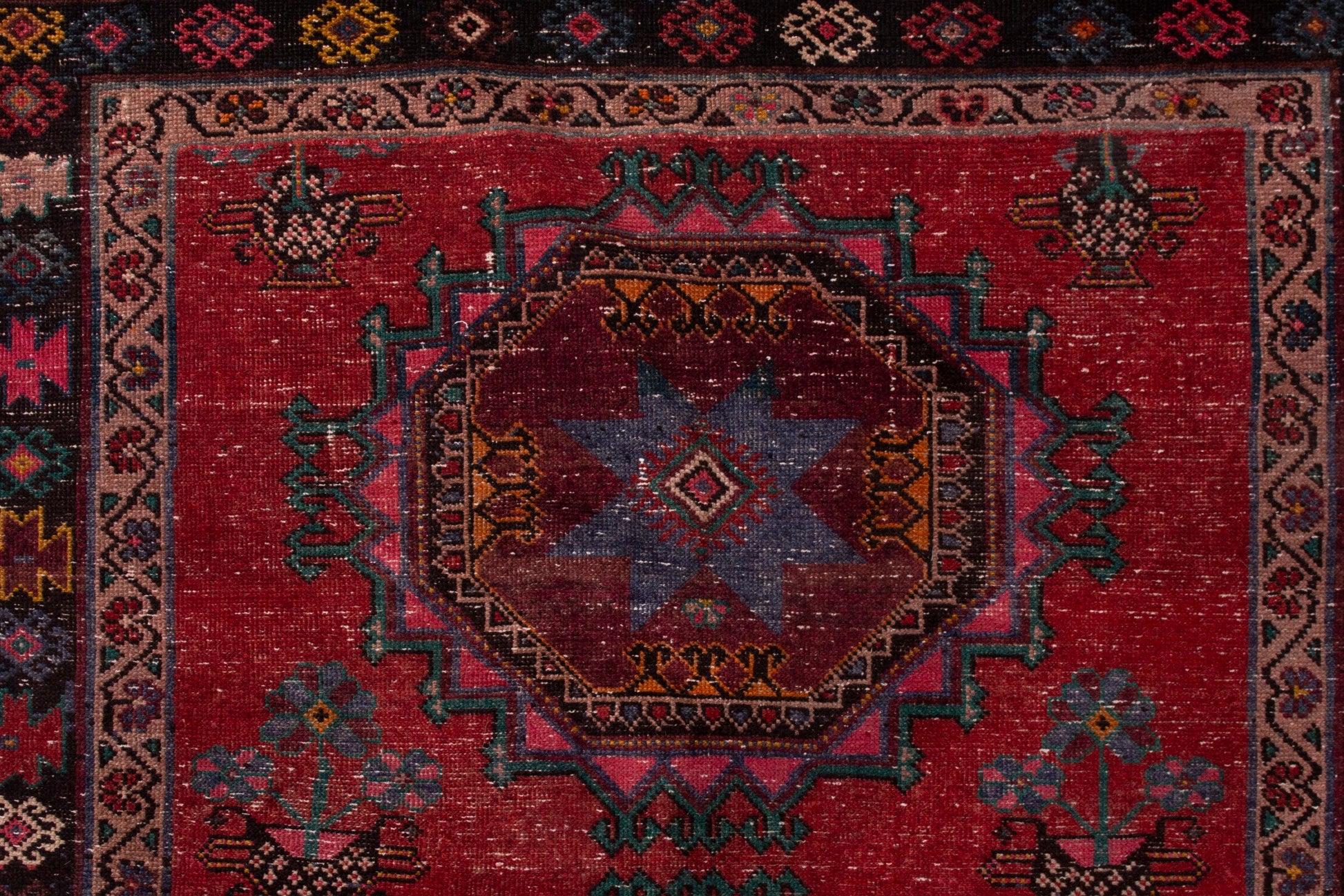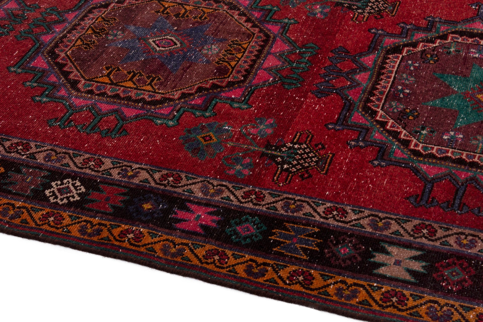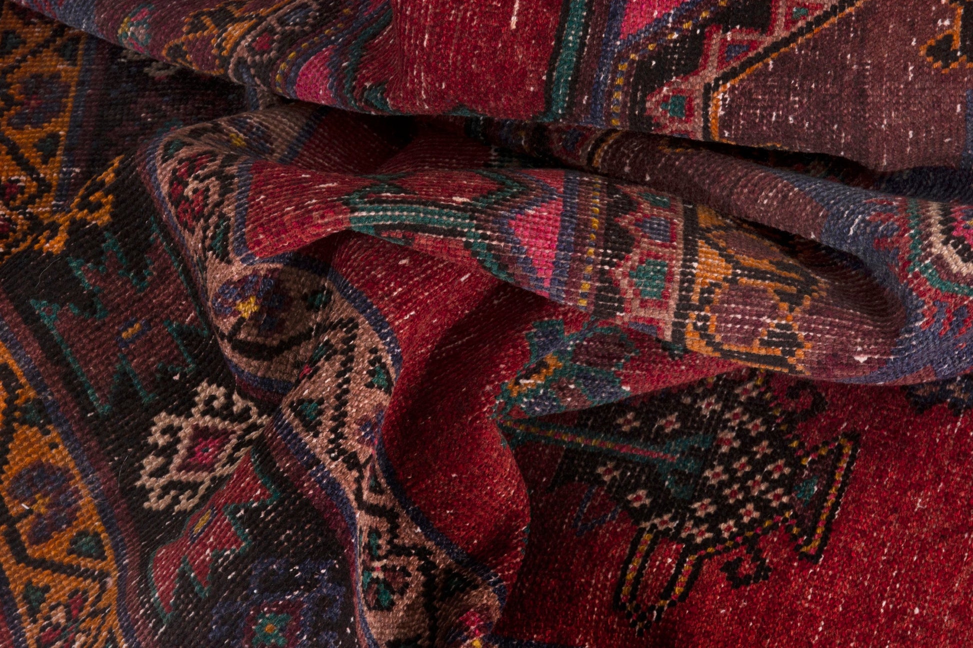 All the rugs we sell are professionally washed and cleaned; age-related wear and natural inconsistencies are inherent in these unique, handcrafted vintage rugs.