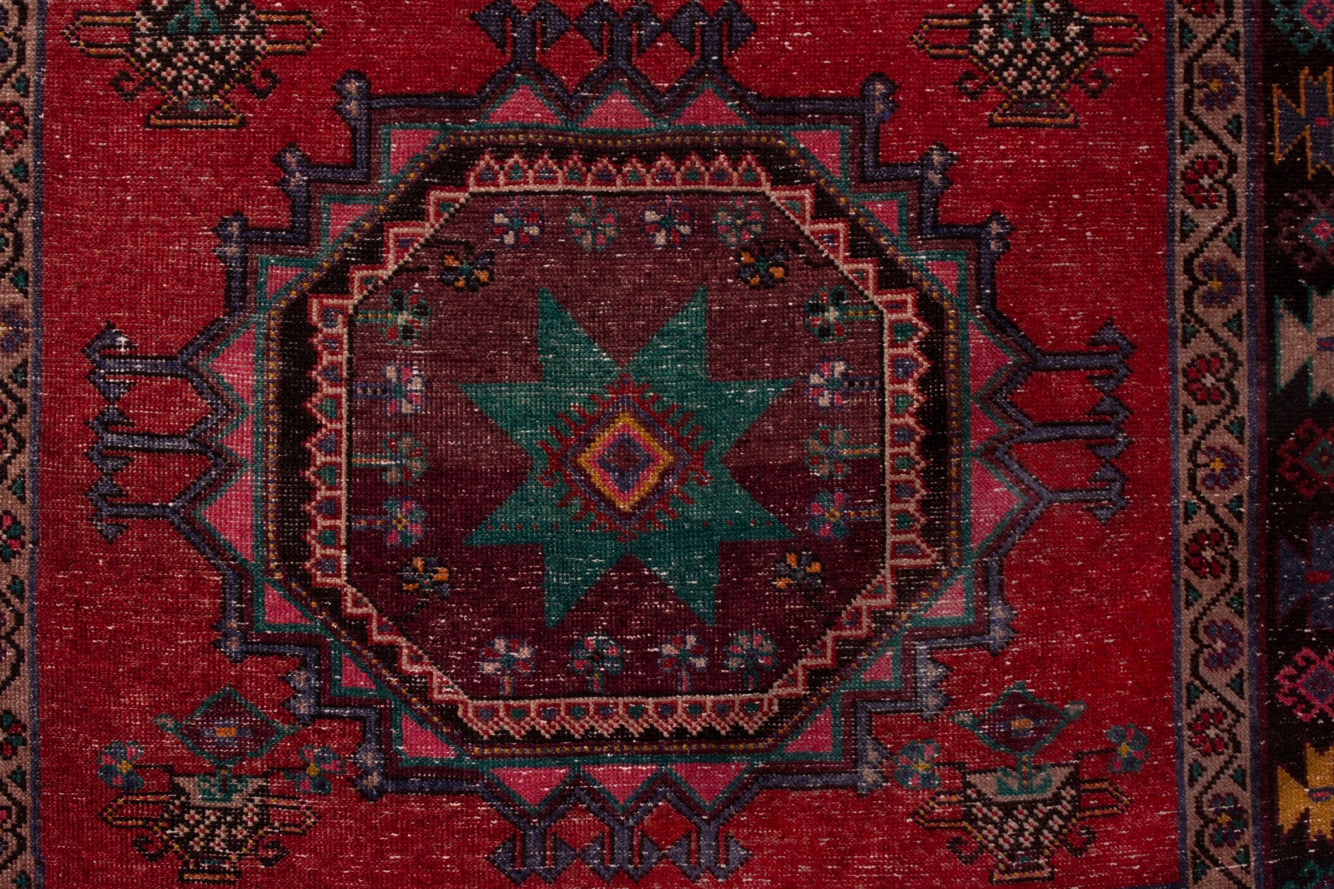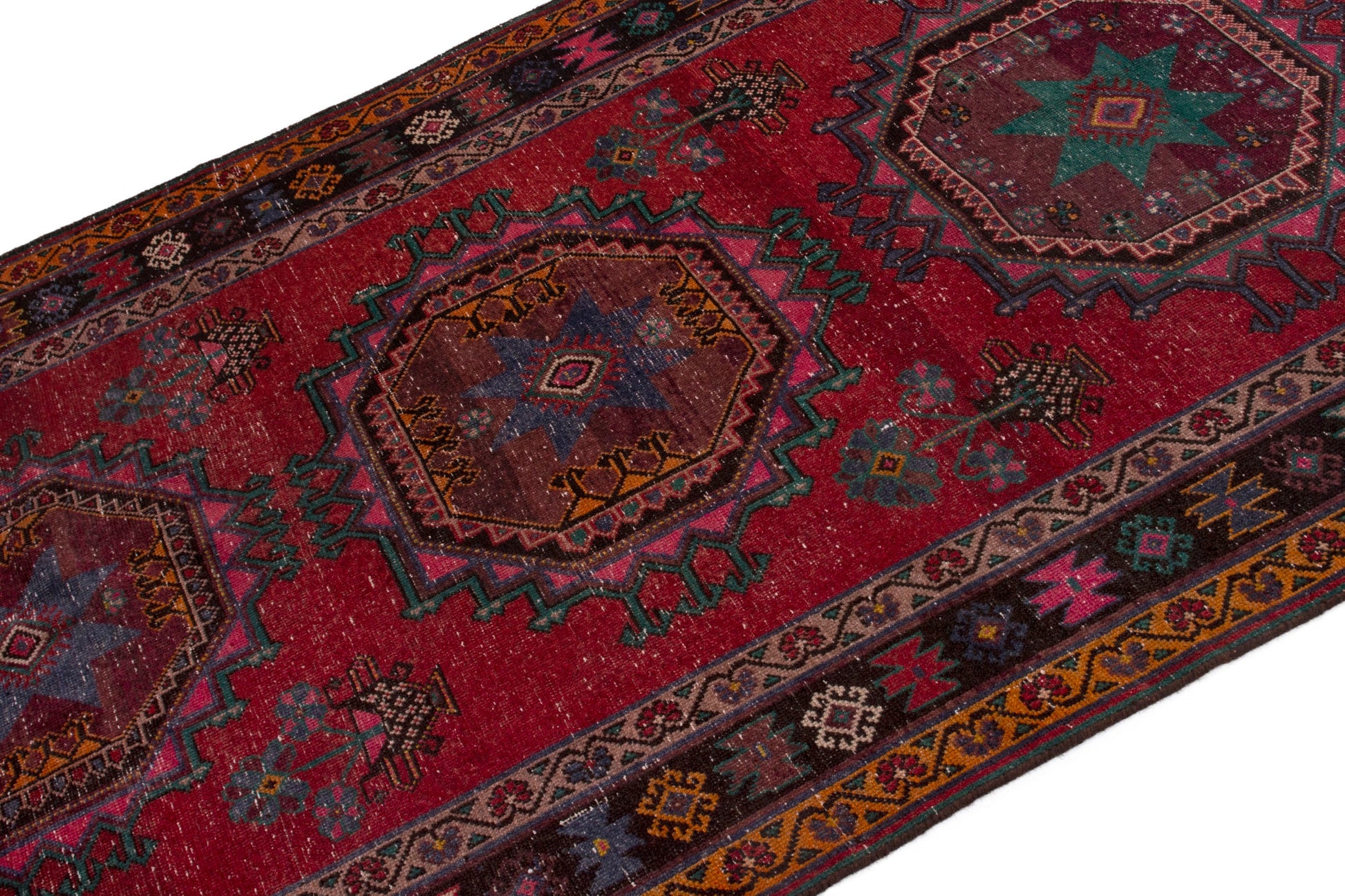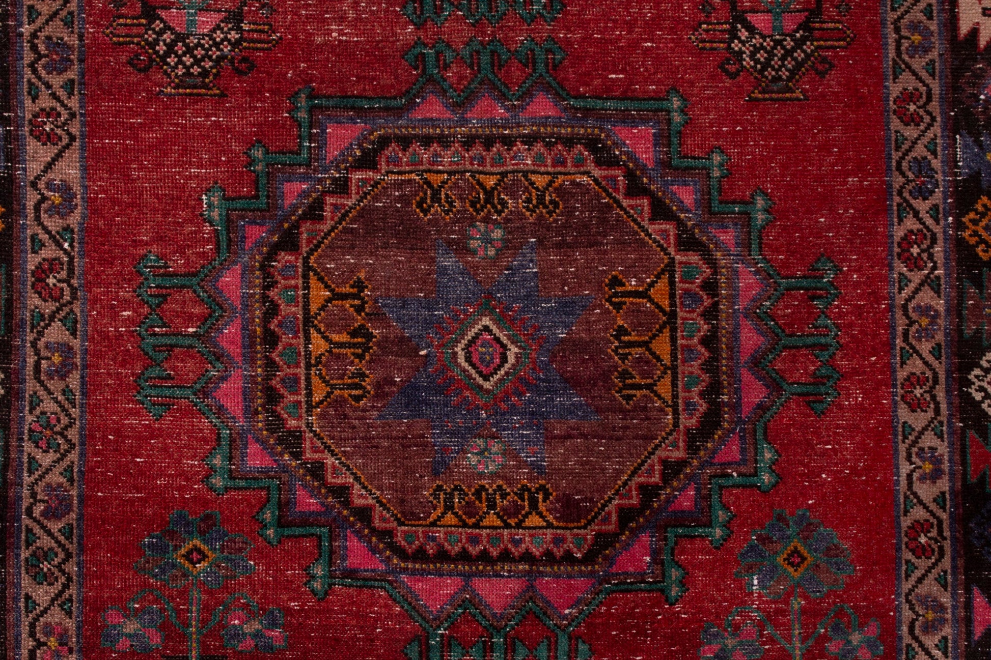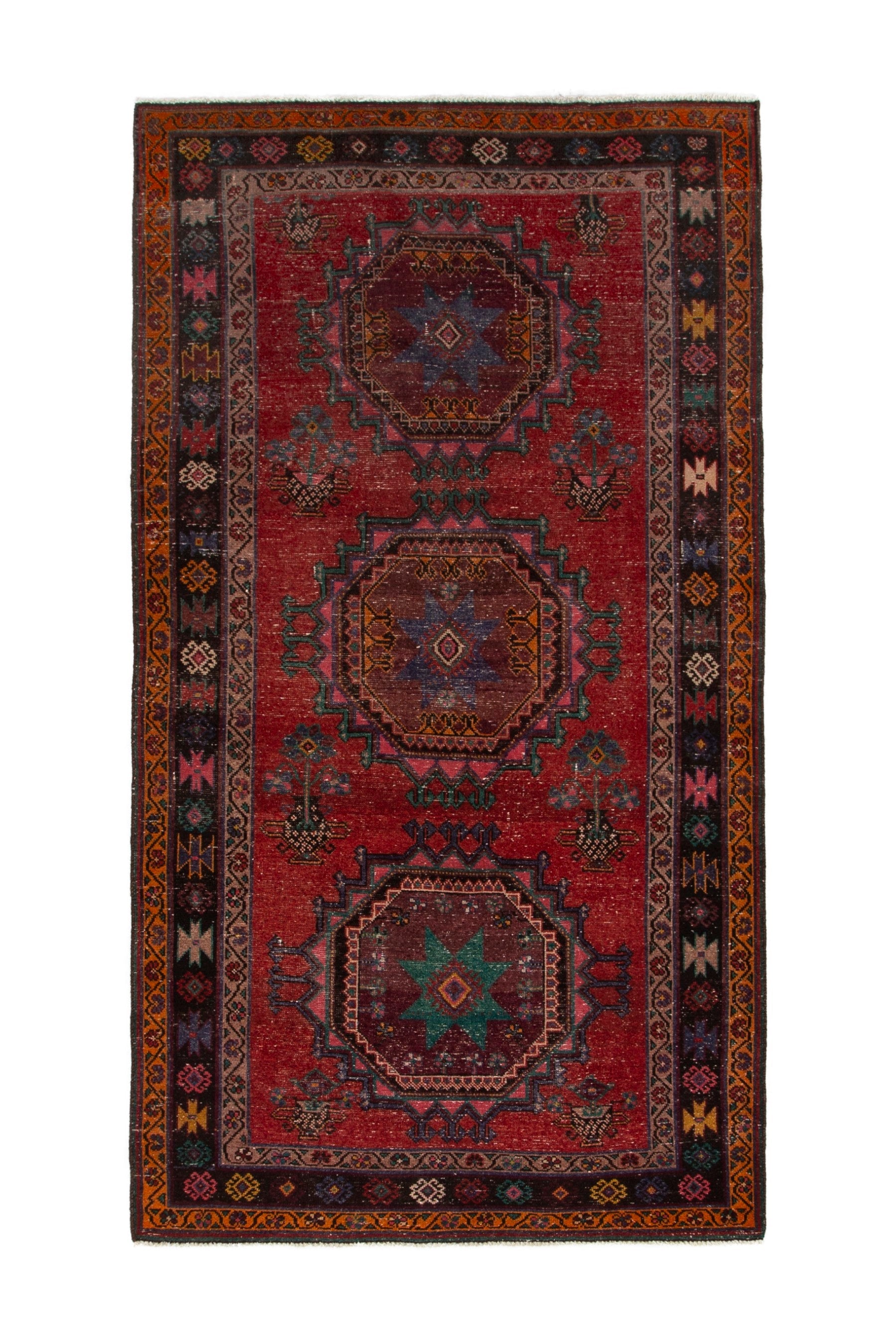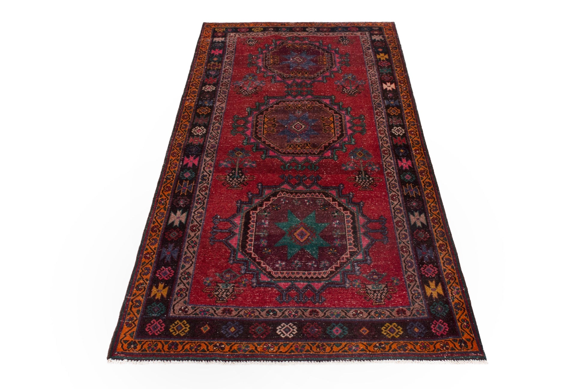 All the rugs we sell are professionally washed and cleaned; age-related wear and natural inconsistencies are inherent in these unique, handcrafted vintage rugs.