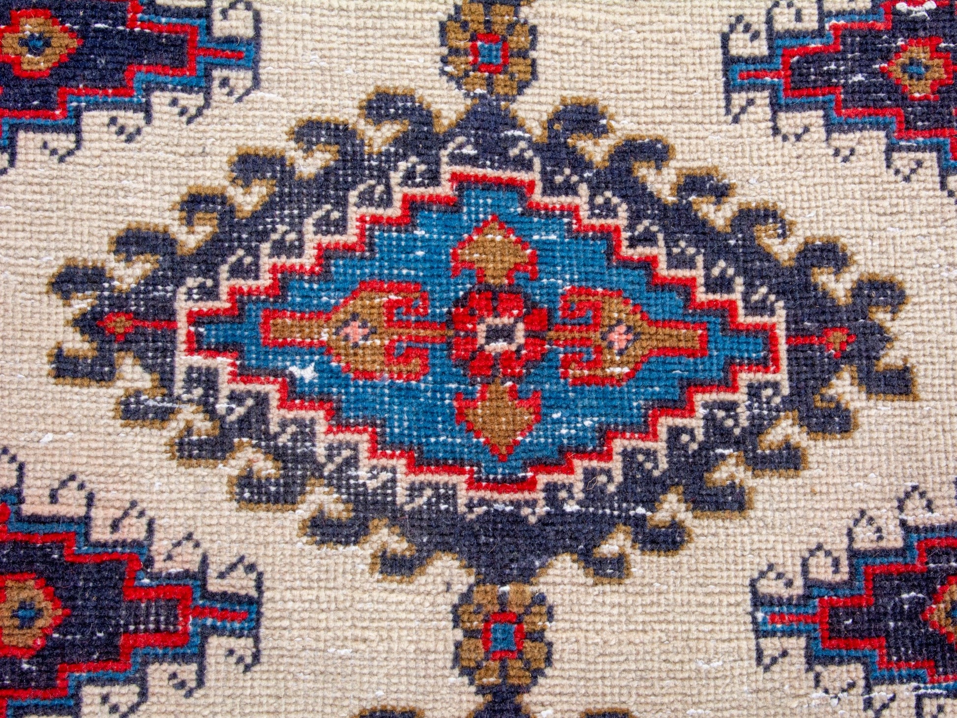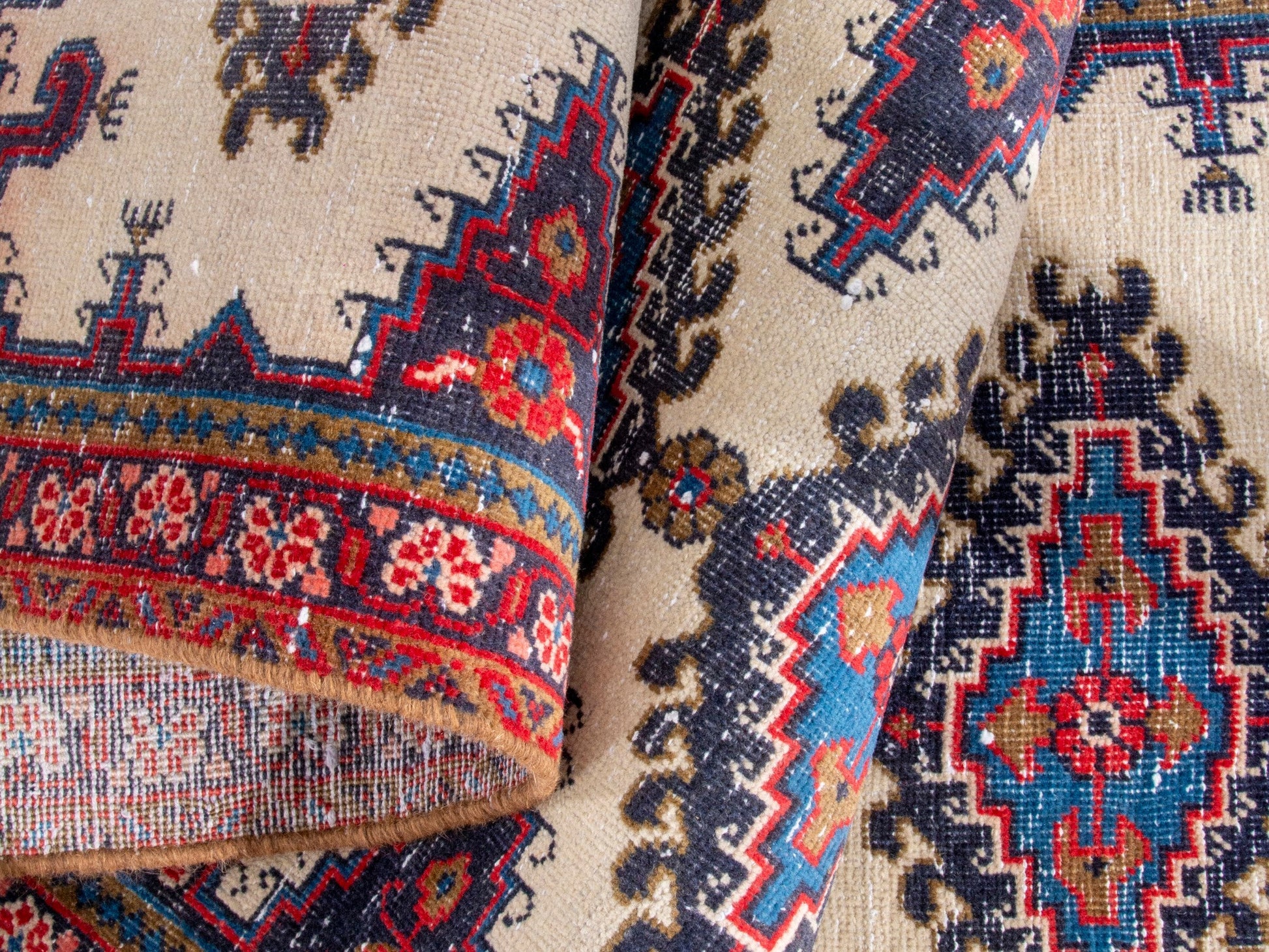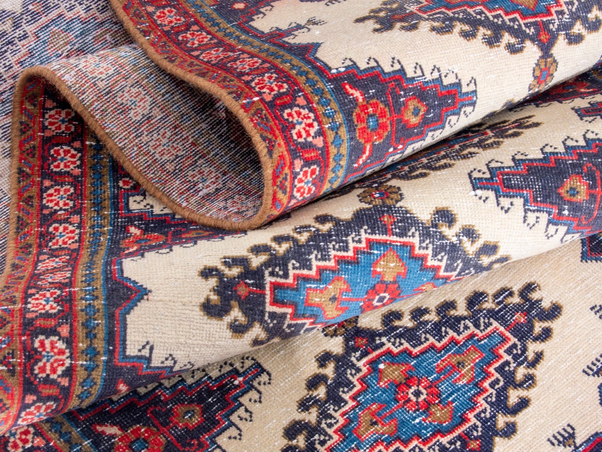 All the rugs we sell are professionally washed and cleaned; age-related wear and natural inconsistencies are inherent in these unique, handcrafted vintage rugs.