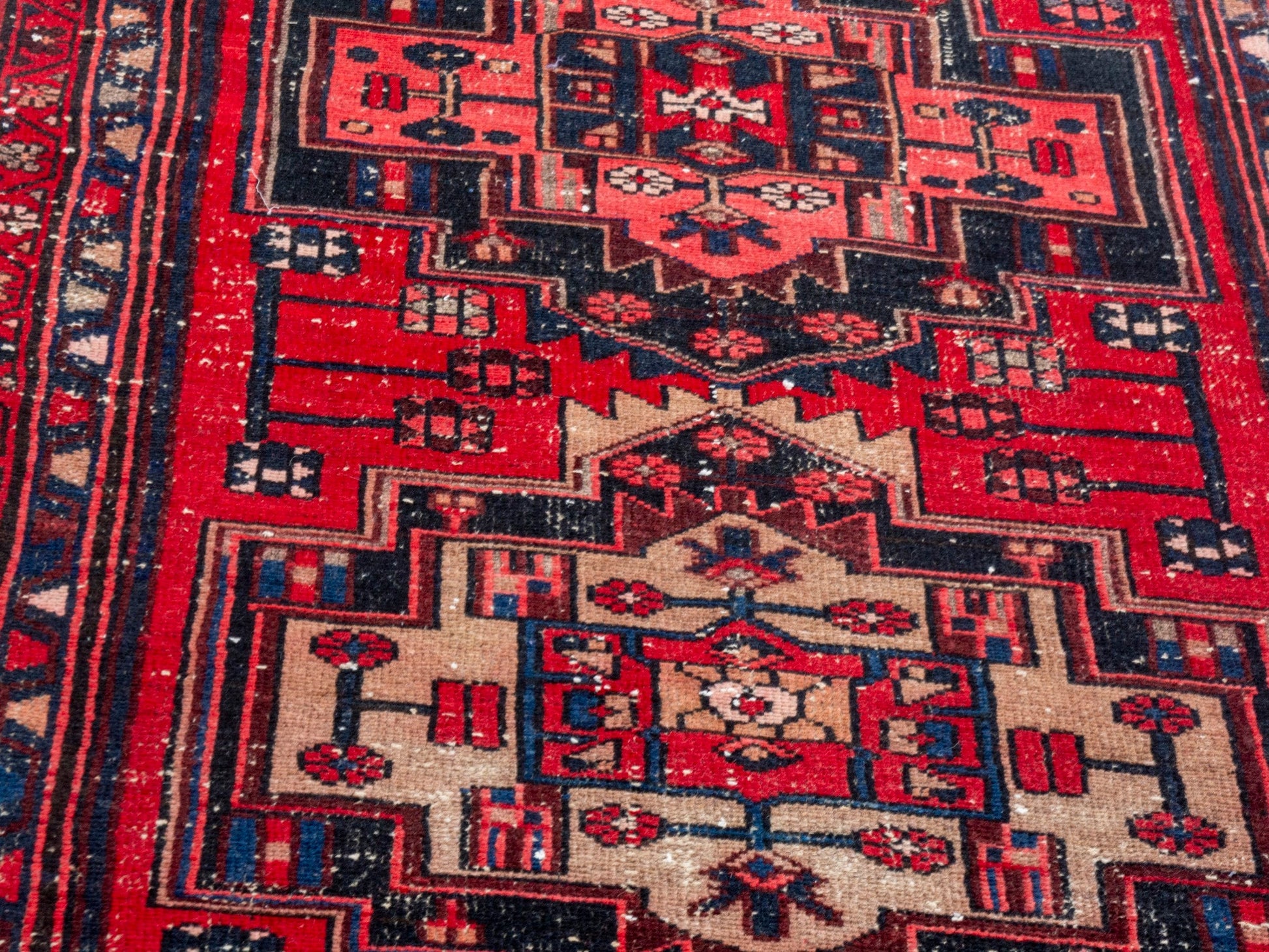 All the rugs we sell are professionally washed and cleaned; age-related wear and natural inconsistencies are inherent in these unique, handcrafted vintage rugs.