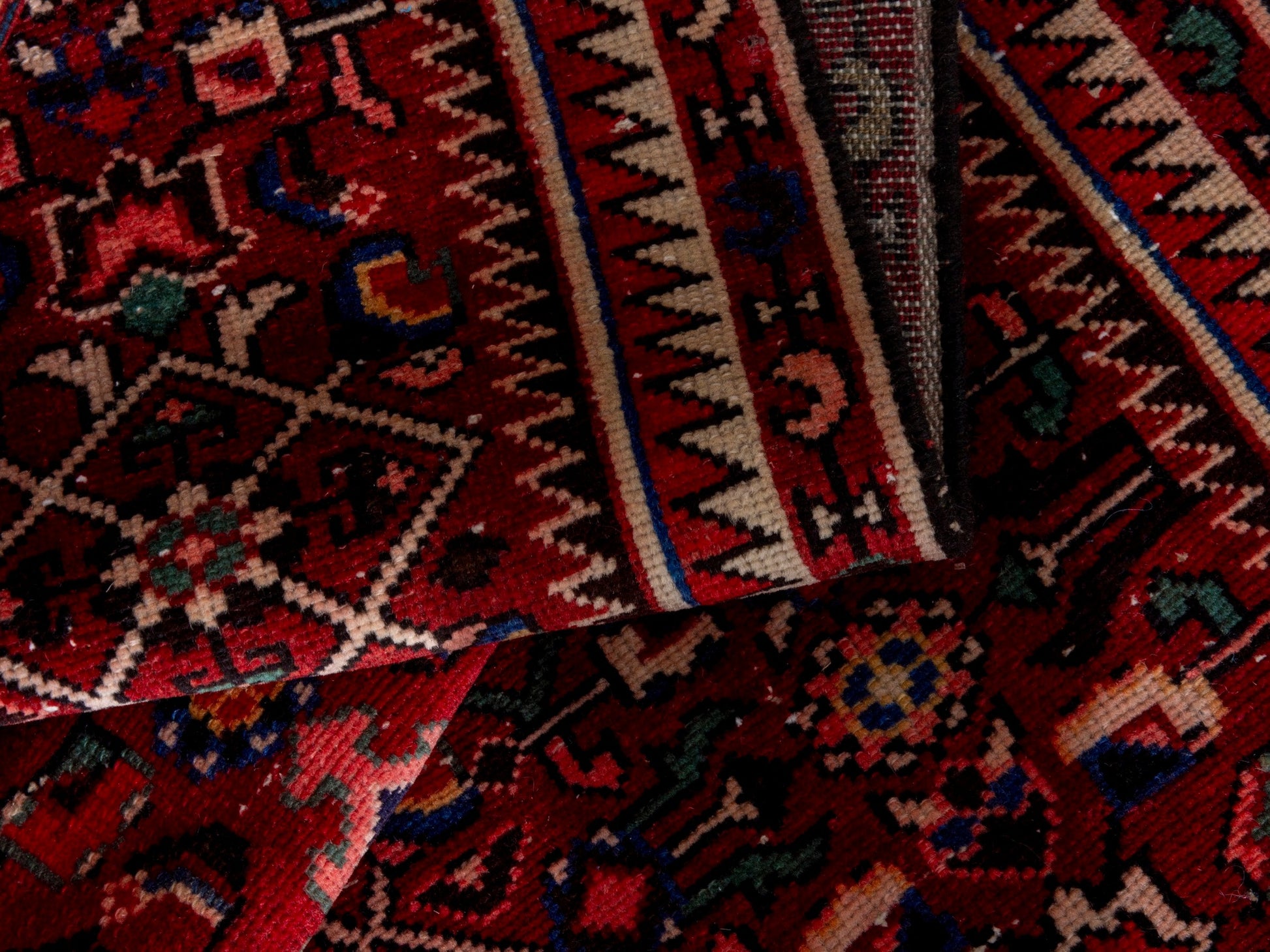 All the rugs we sell are professionally washed and cleaned; age-related wear and natural inconsistencies are inherent in these unique, handcrafted vintage rugs.