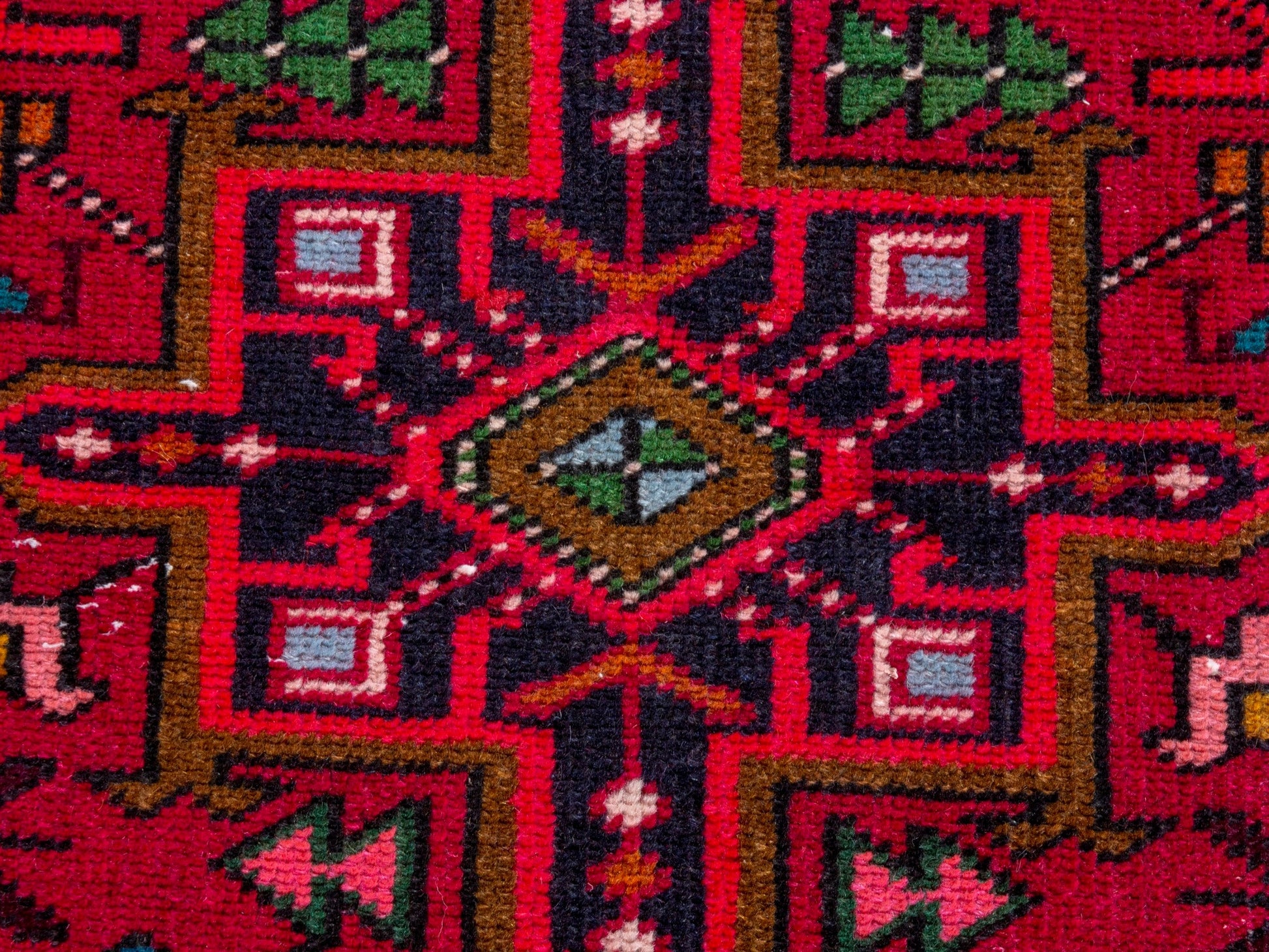 All the rugs we sell are professionally washed and cleaned; age-related wear and natural inconsistencies are inherent in these unique, handcrafted vintage rugs.