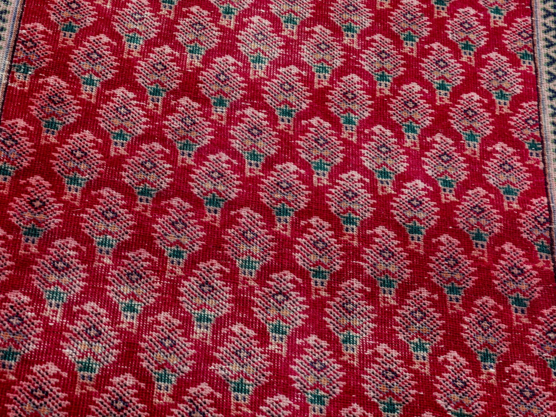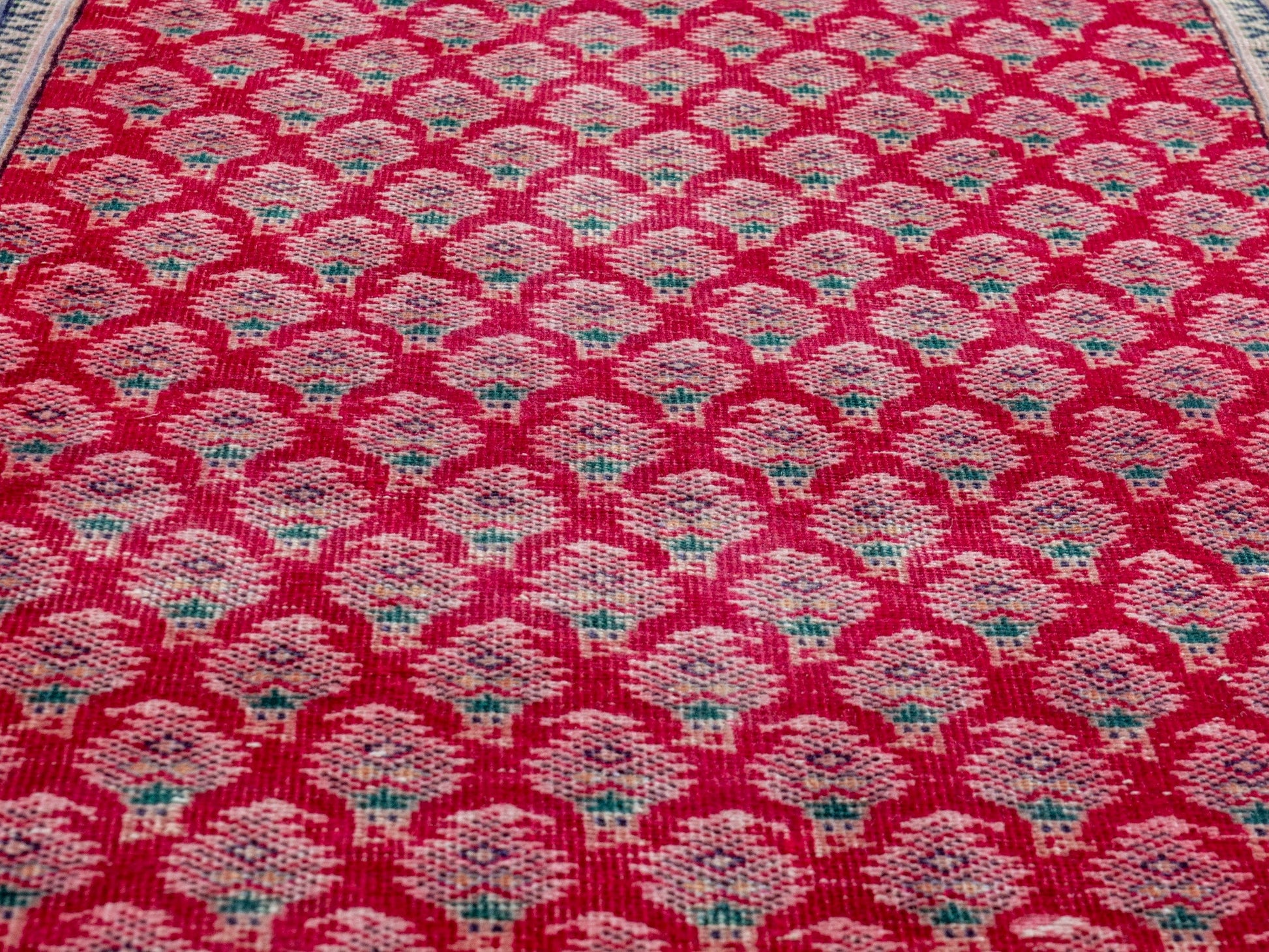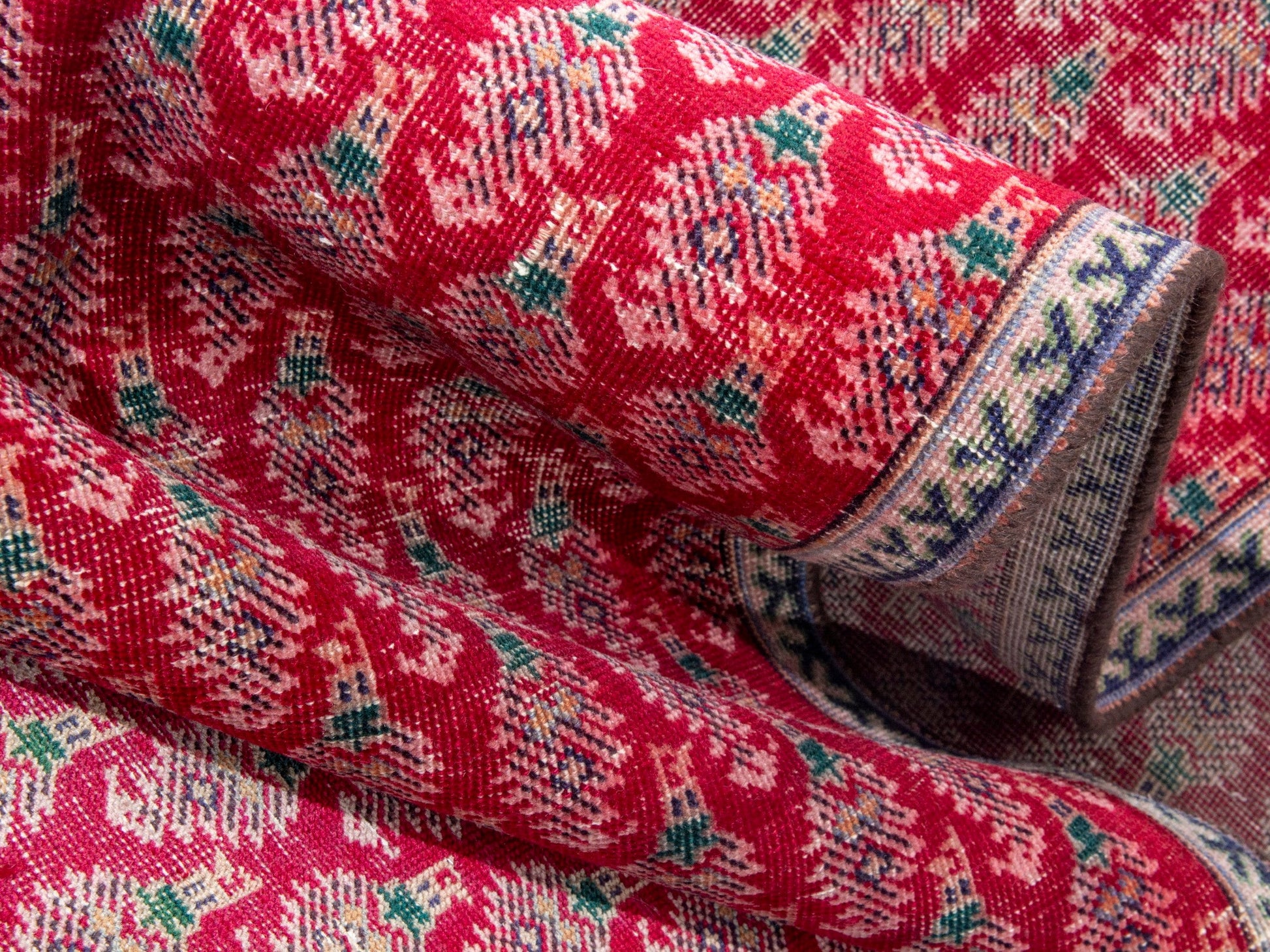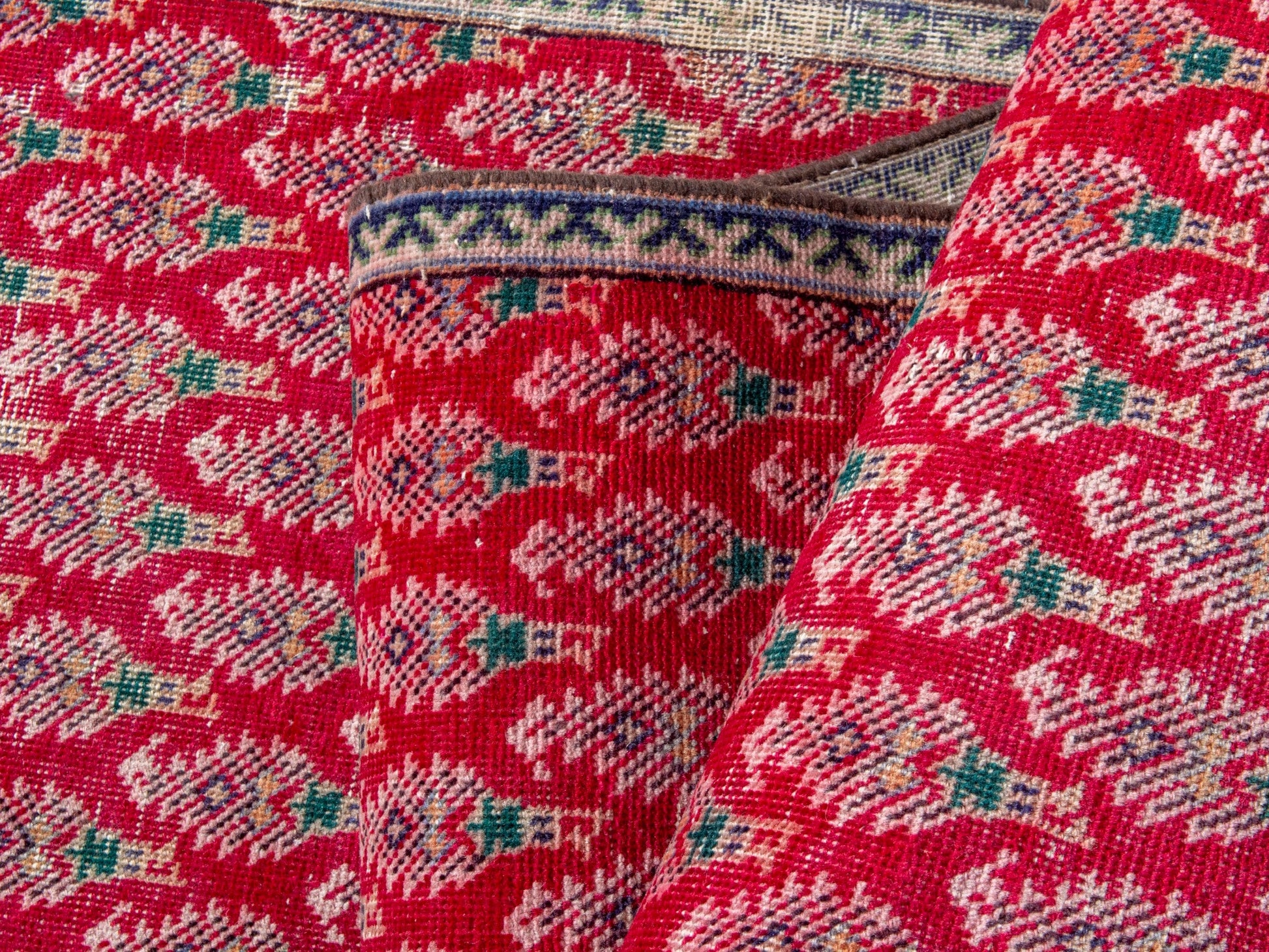All the rugs we sell are professionally washed and cleaned; age-related wear and natural inconsistencies are inherent in these unique, handcrafted vintage rugs.