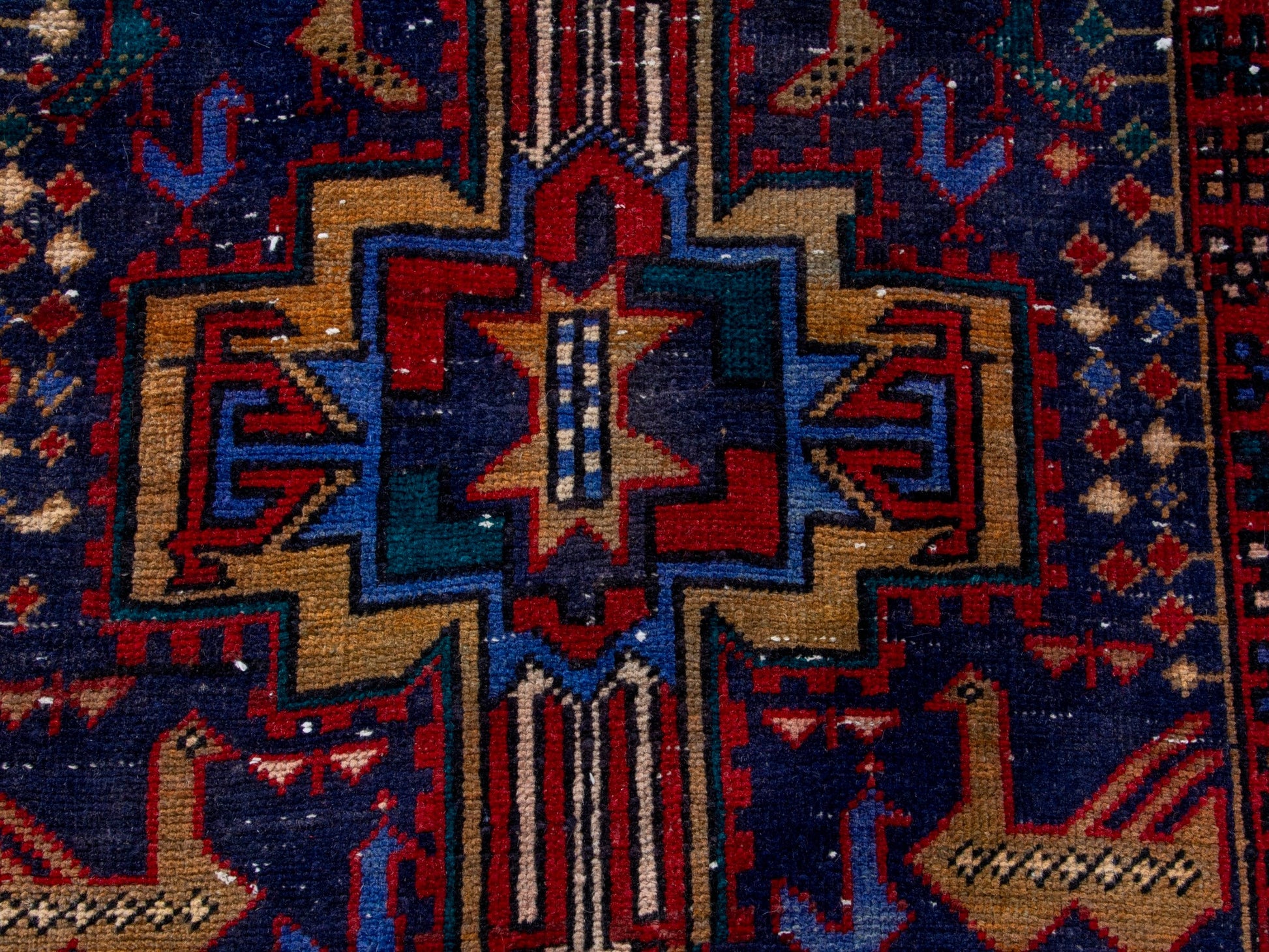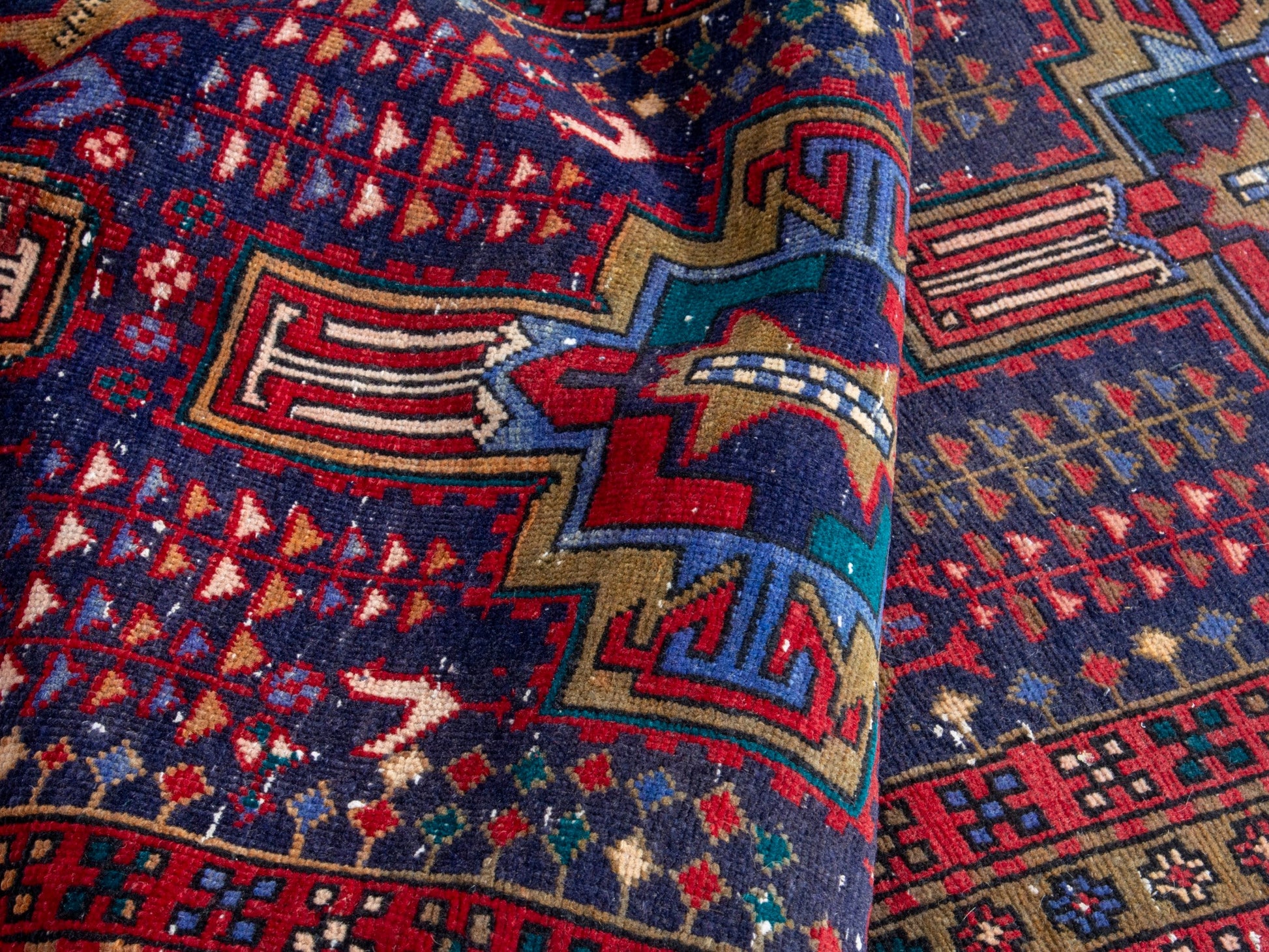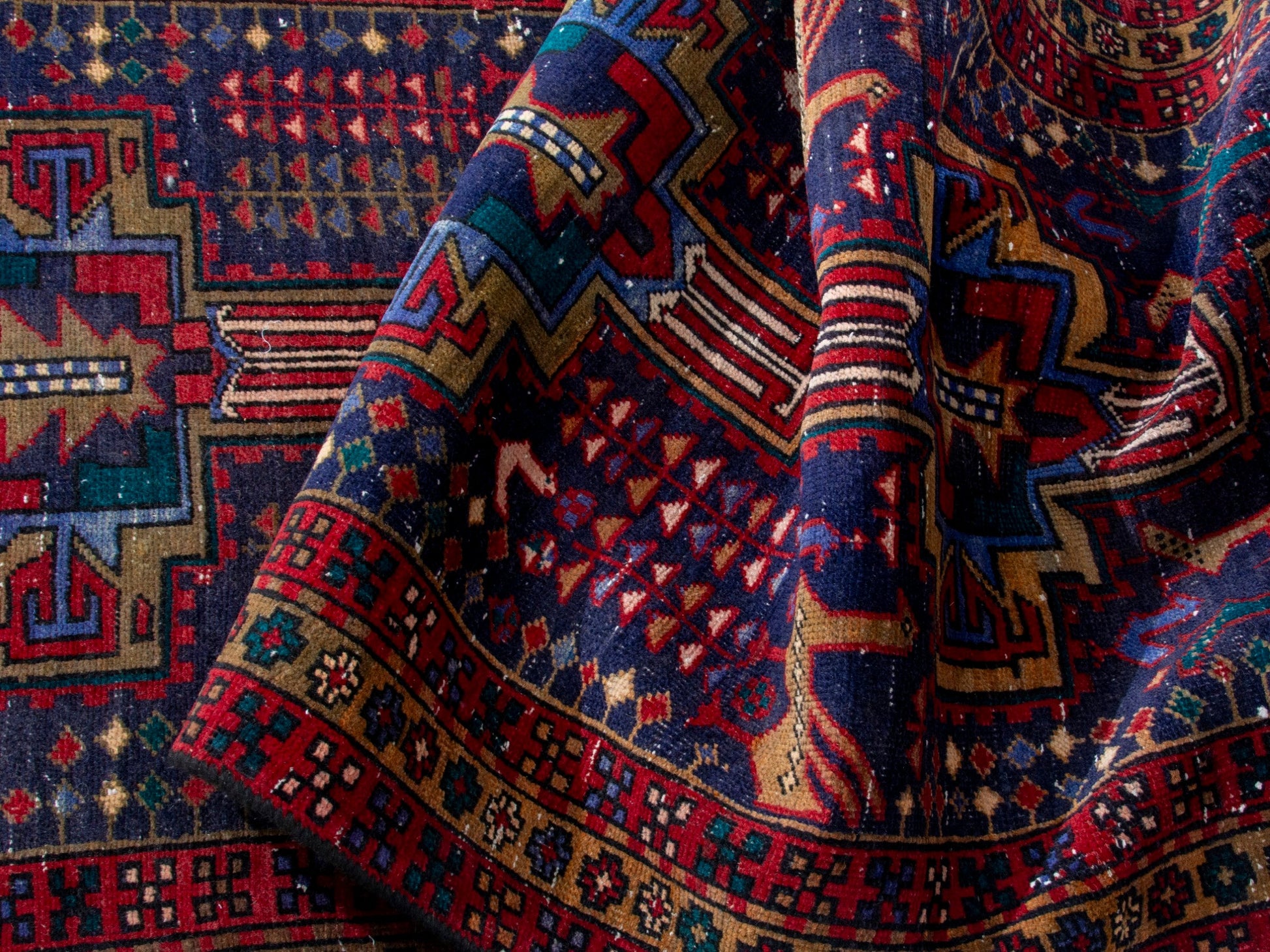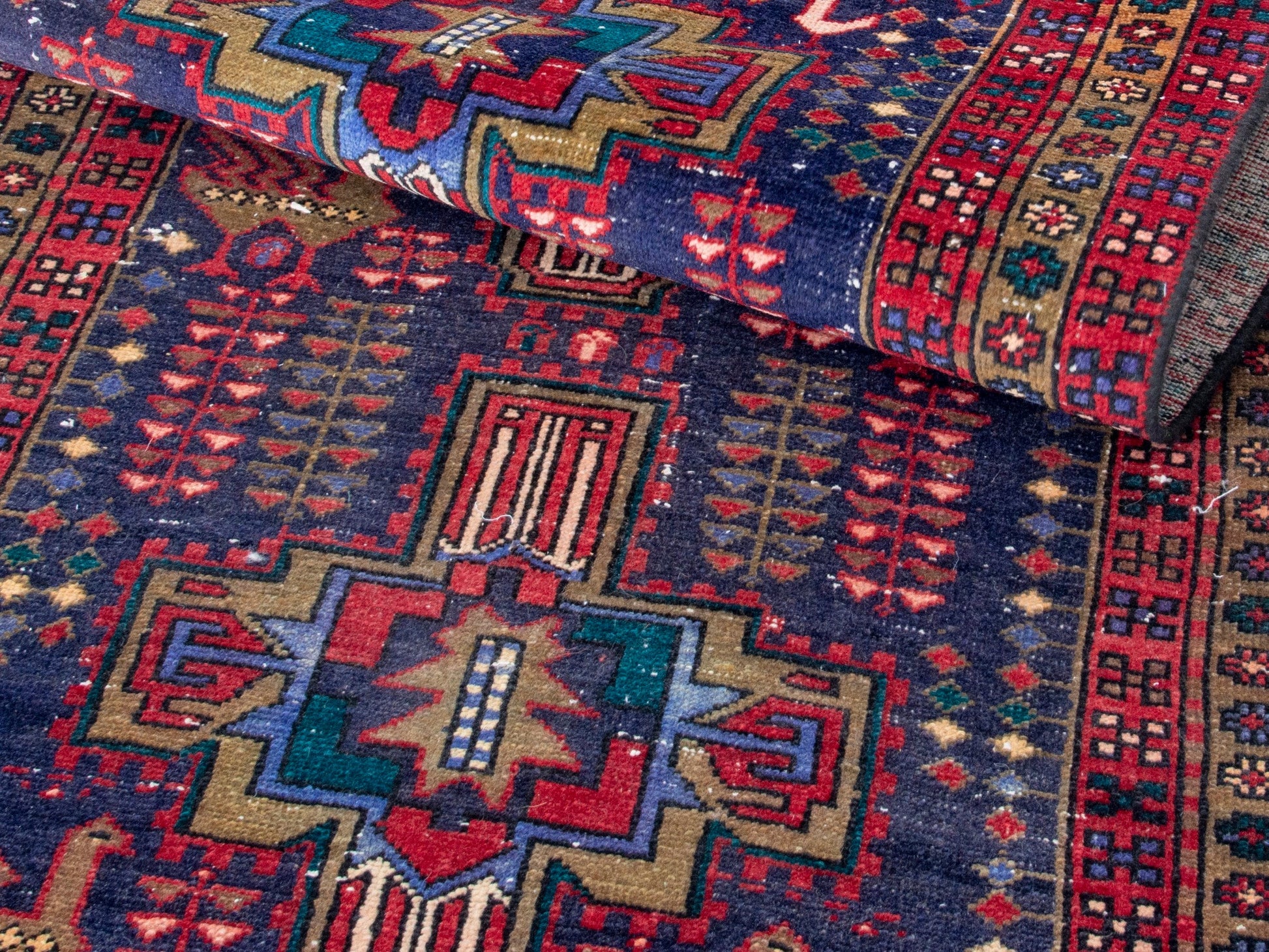 All the rugs we sell are professionally washed and cleaned; age-related wear and natural inconsistencies are inherent in these unique, handcrafted vintage rugs.