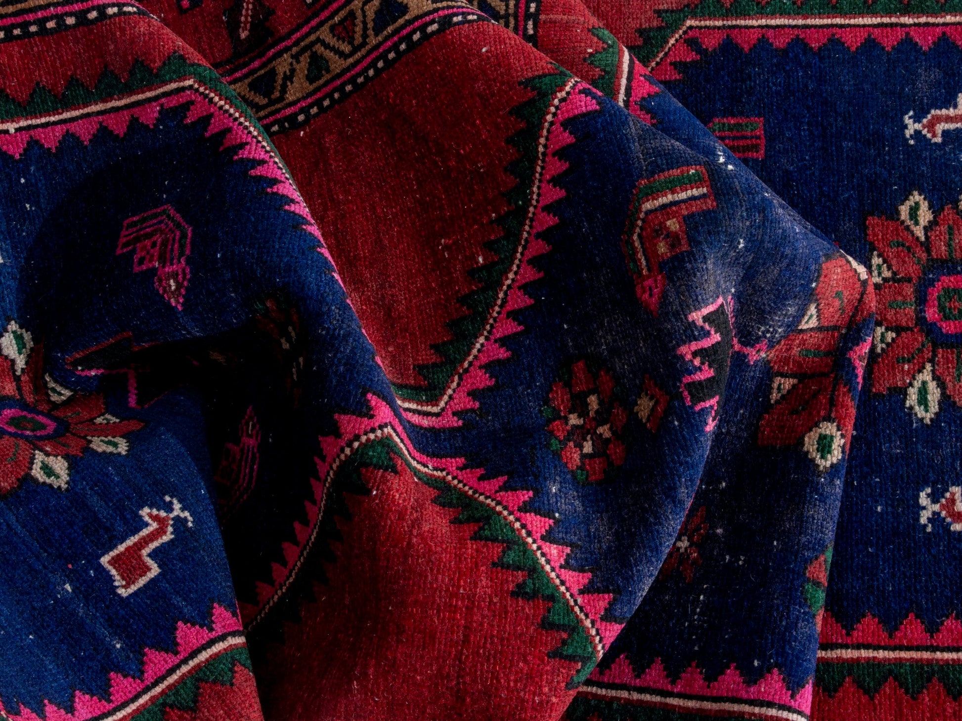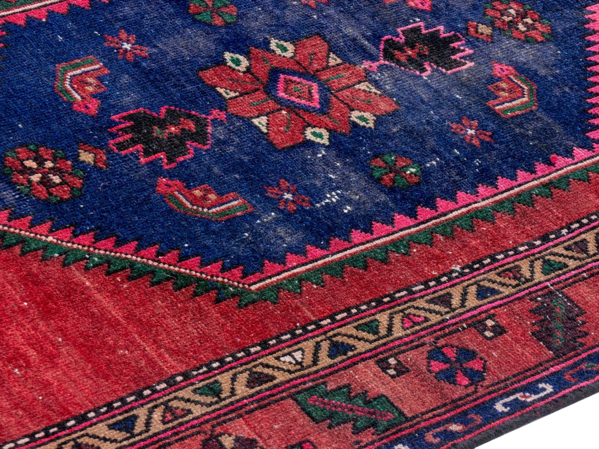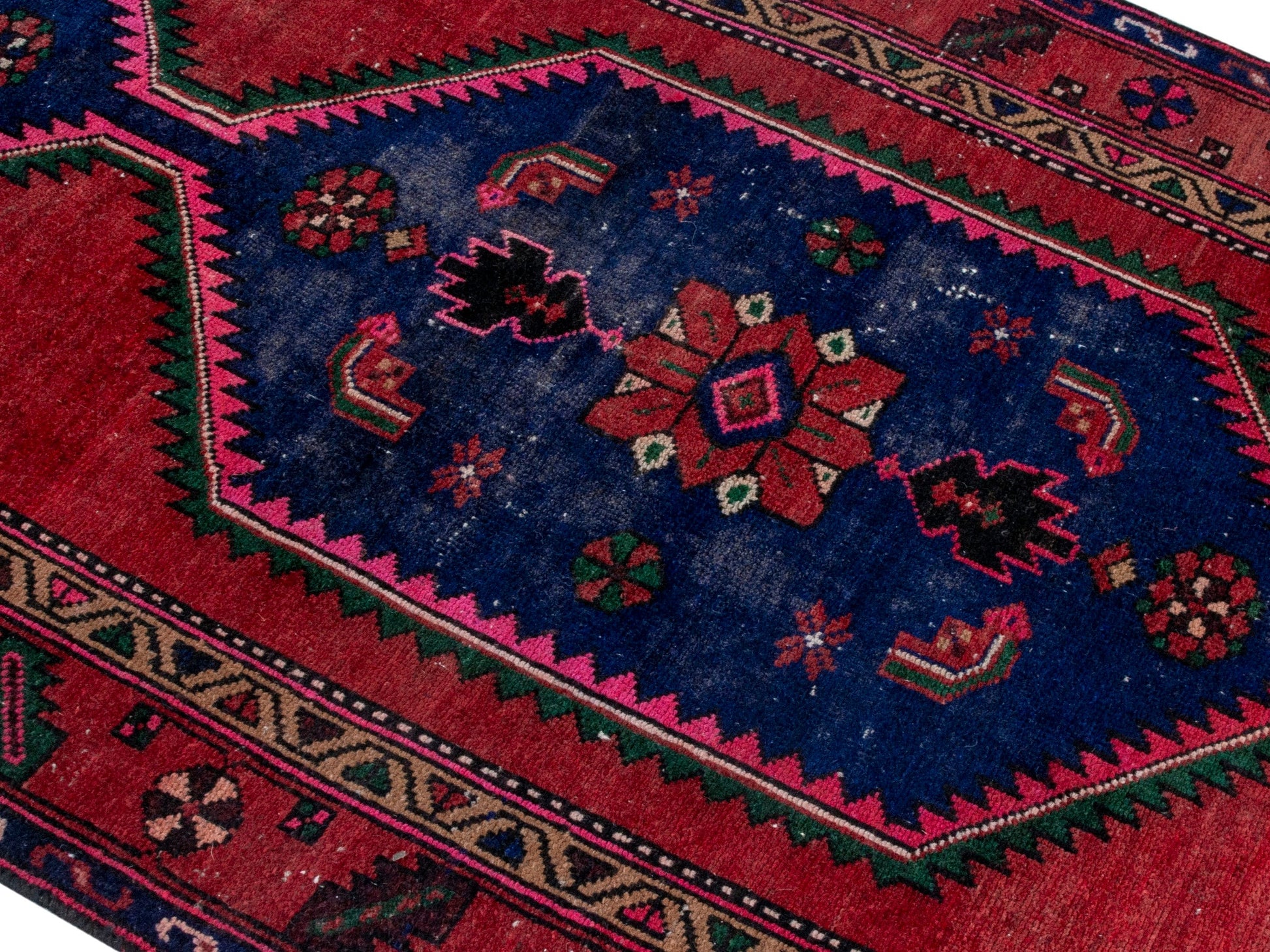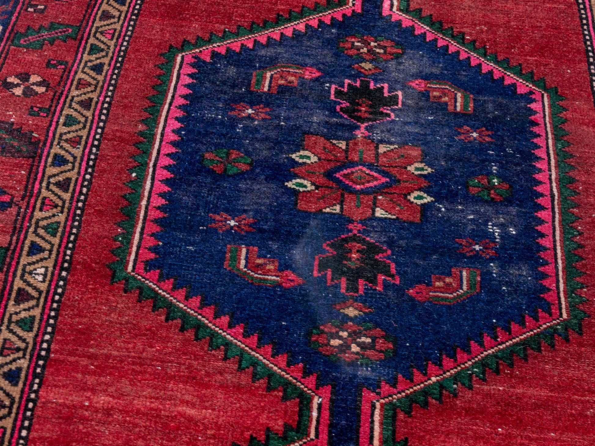 All the rugs we sell are professionally washed and cleaned; age-related wear and natural inconsistencies are inherent in these unique, handcrafted vintage rugs.