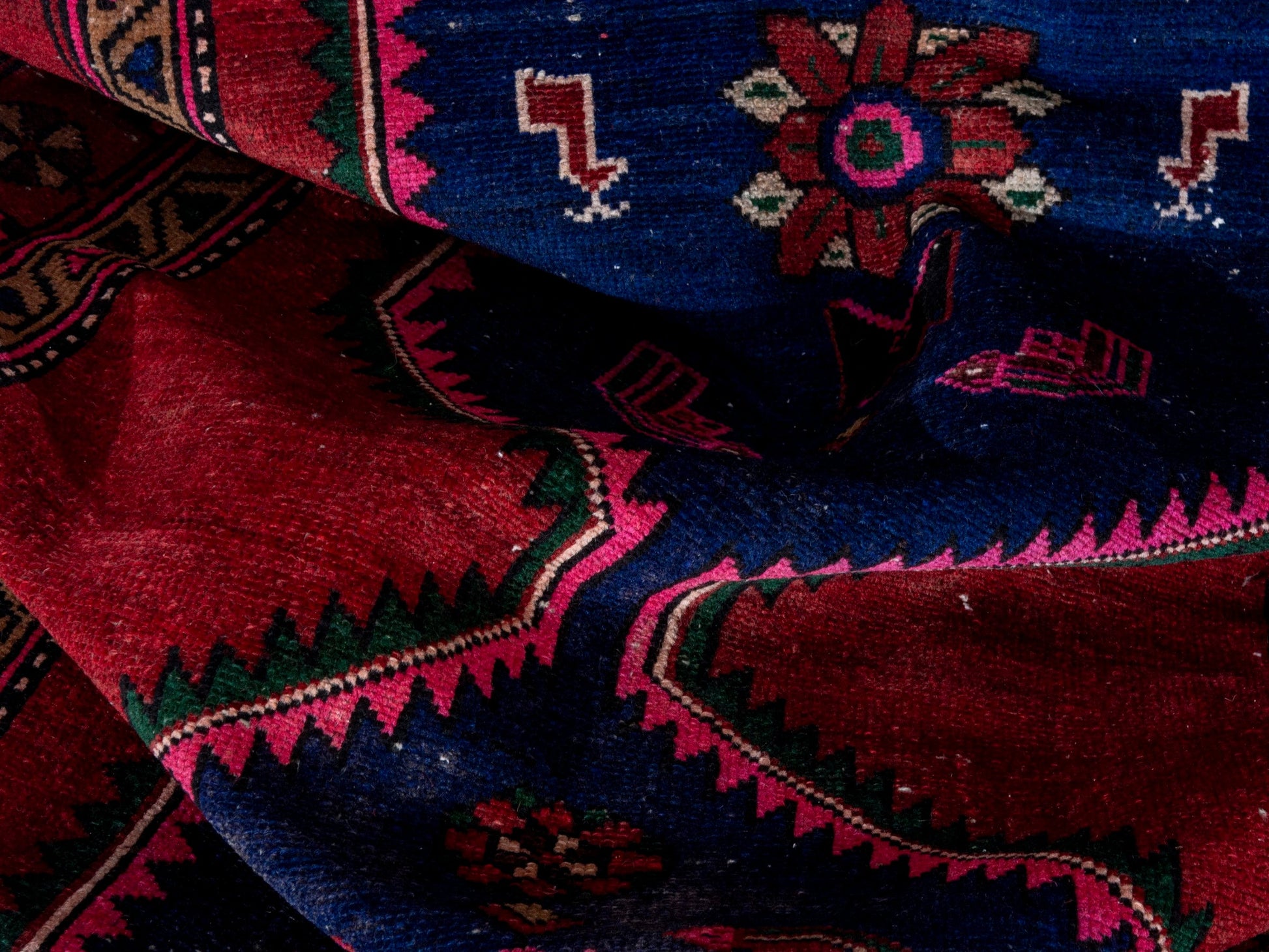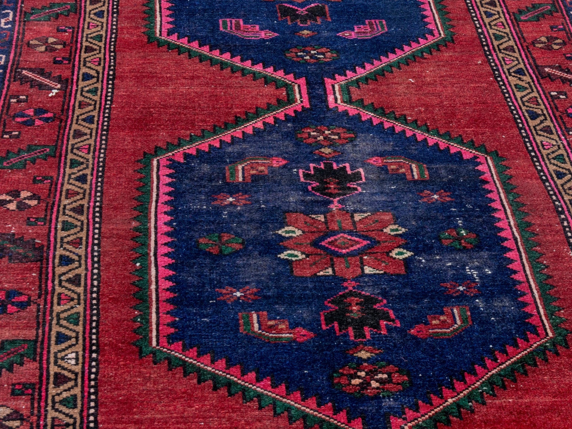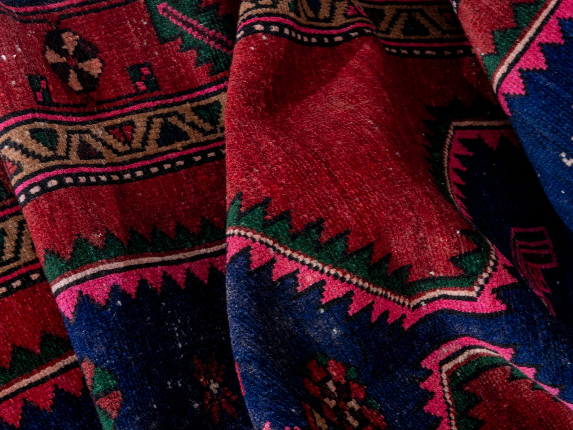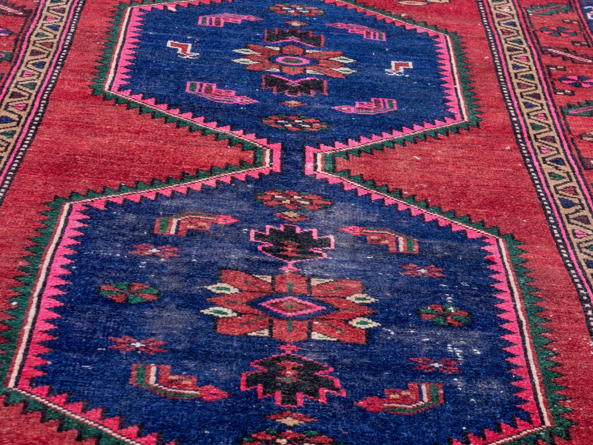 All the rugs we sell are professionally washed and cleaned; age-related wear and natural inconsistencies are inherent in these unique, handcrafted vintage rugs.
