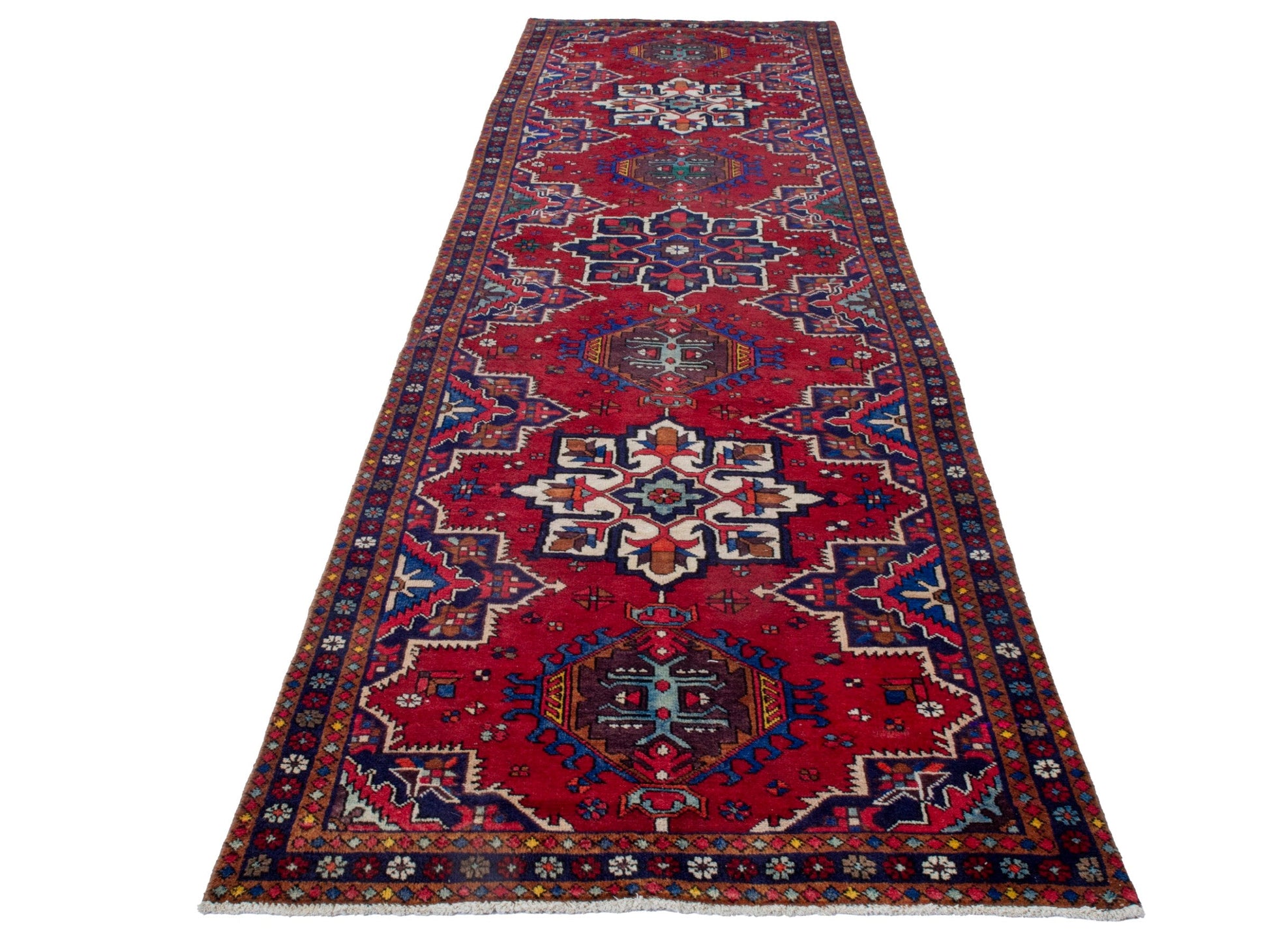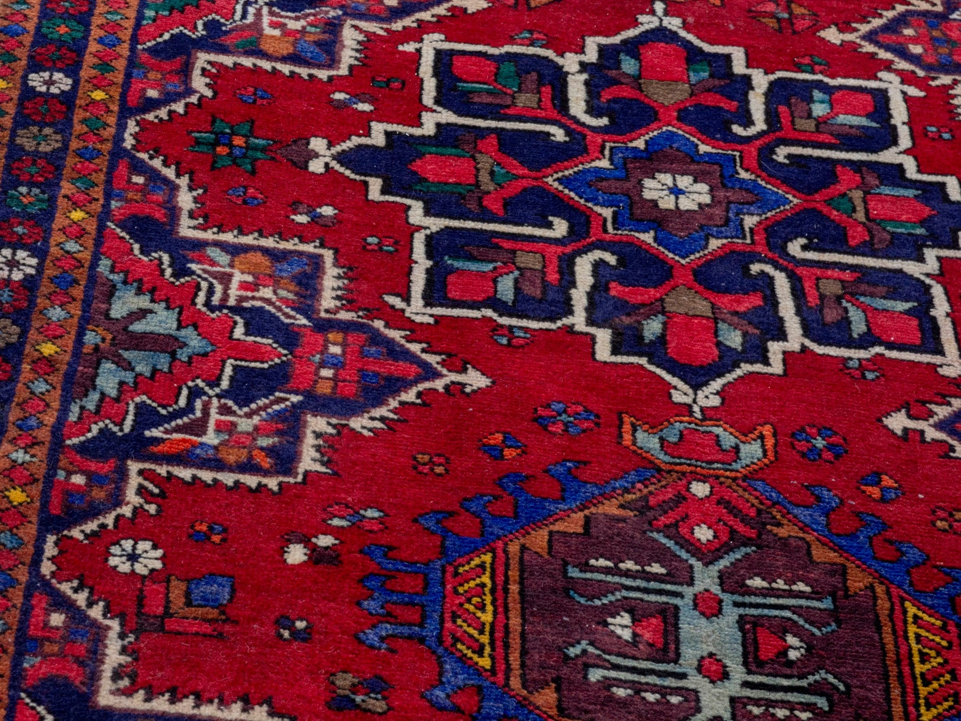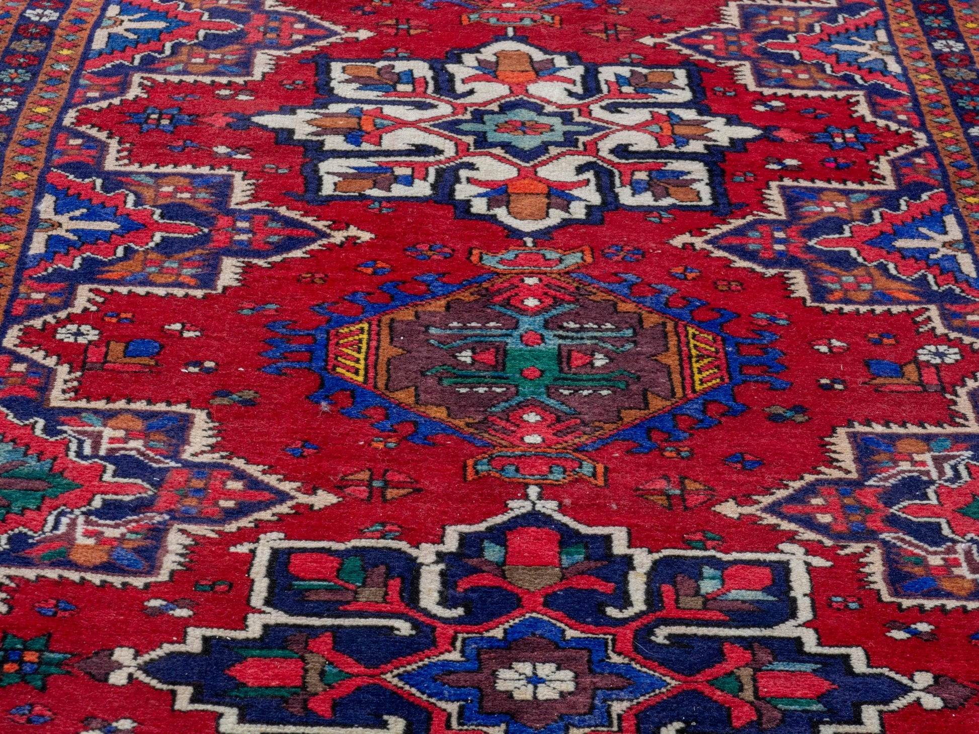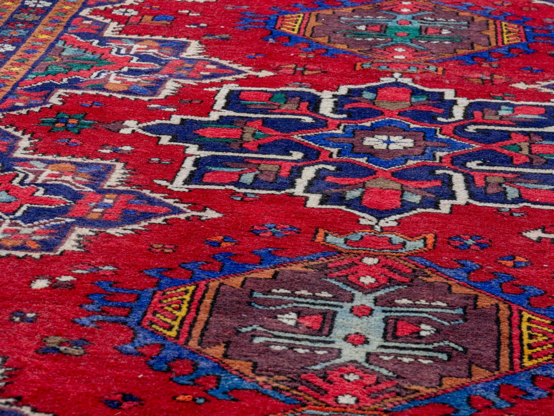 All the rugs we sell are professionally washed and cleaned; age-related wear and natural inconsistencies are inherent in these unique, handcrafted vintage rugs.