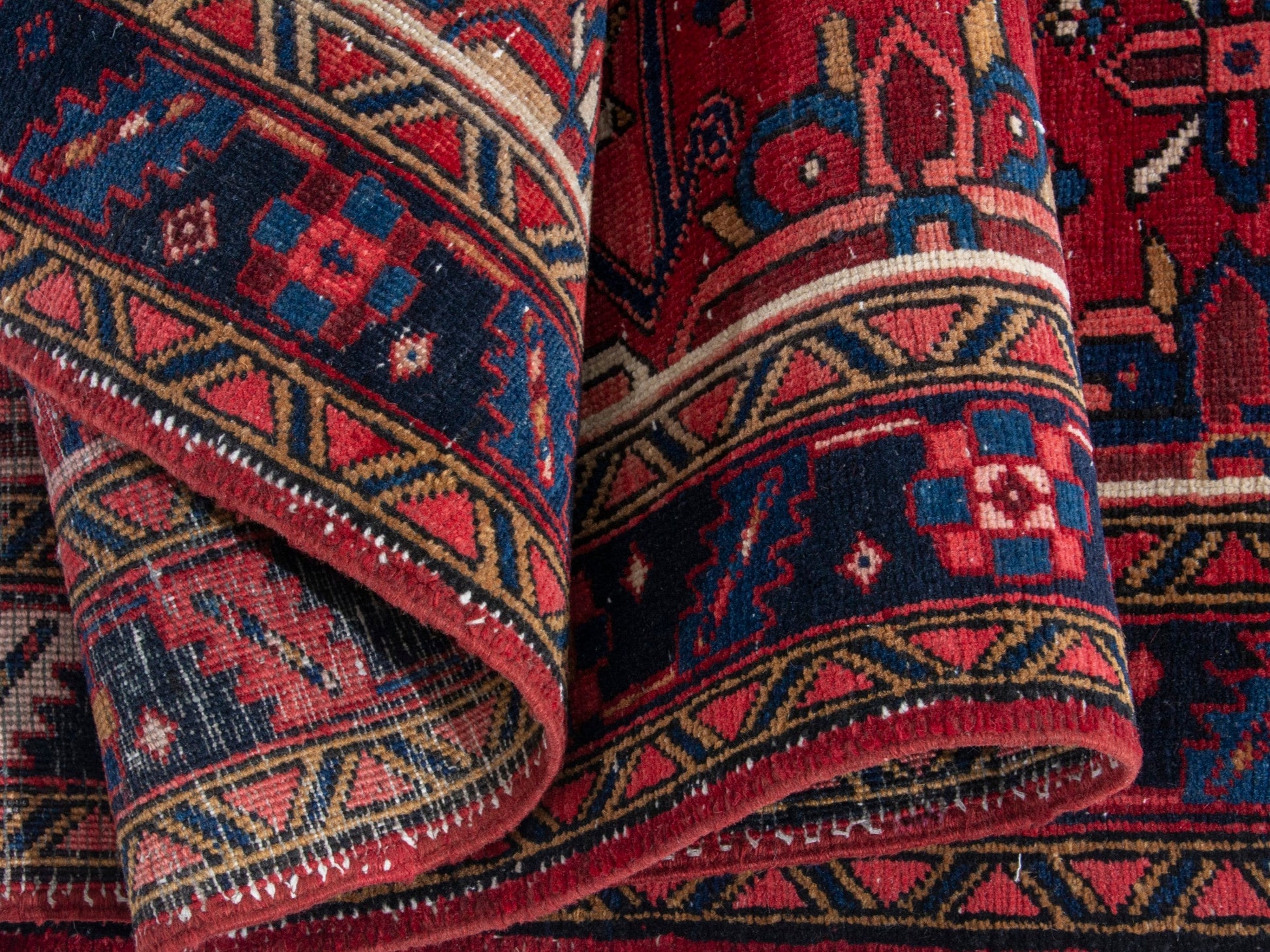 All the rugs we sell are professionally washed and cleaned; age-related wear and natural inconsistencies are inherent in these unique, handcrafted vintage rugs.