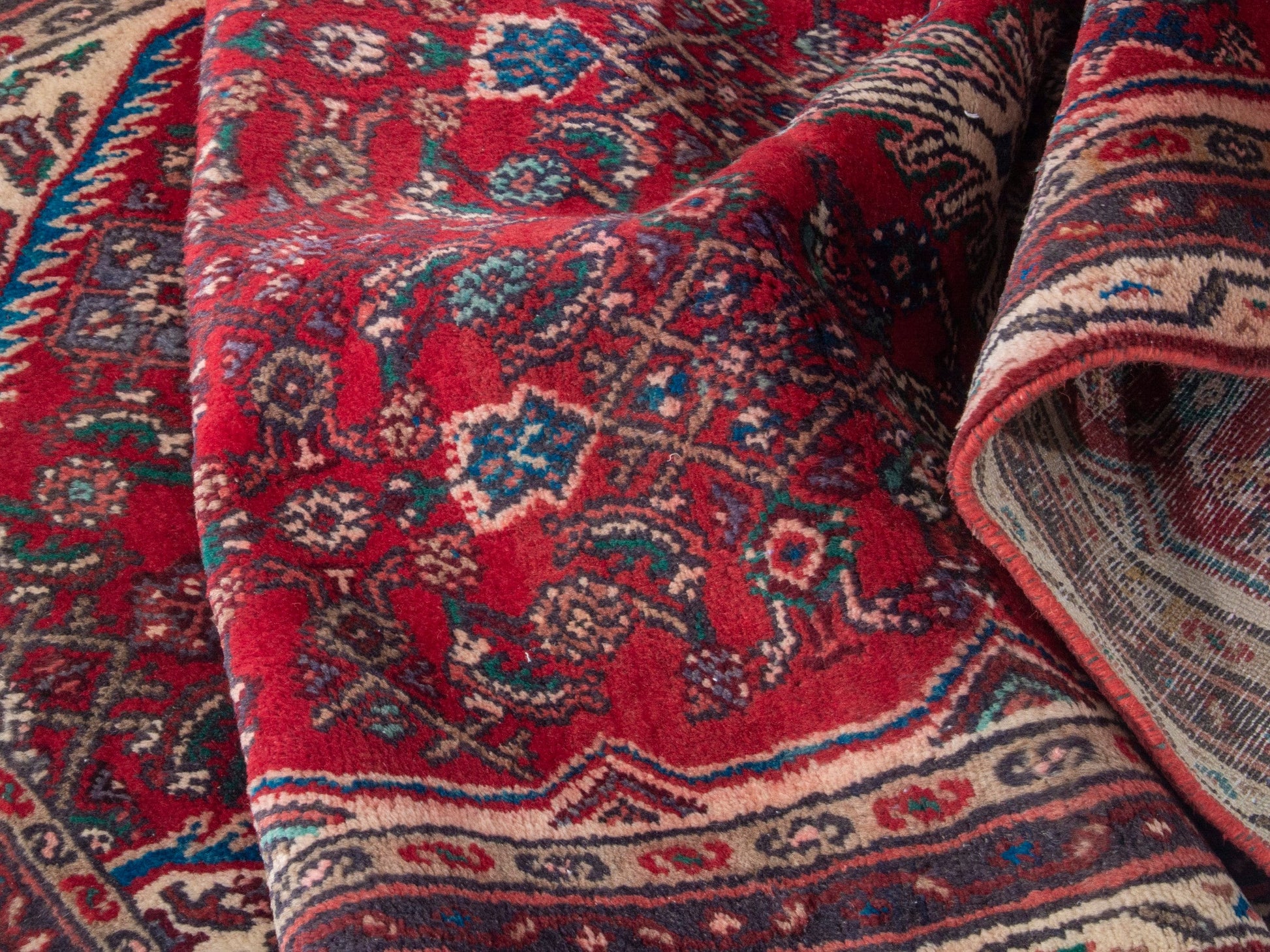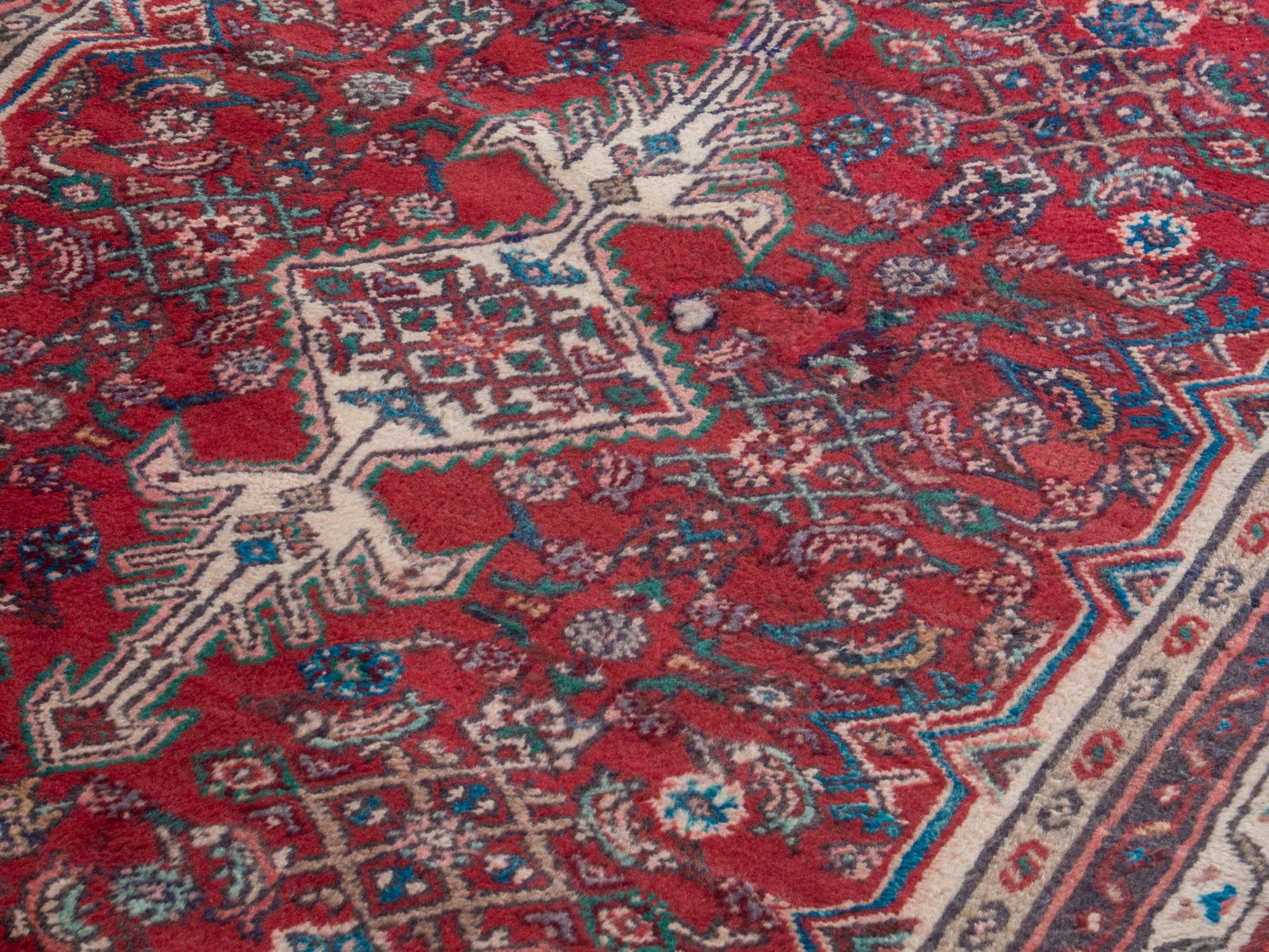 All the rugs we sell are professionally washed and cleaned; age-related wear and natural inconsistencies are inherent in these unique, handcrafted vintage rugs.