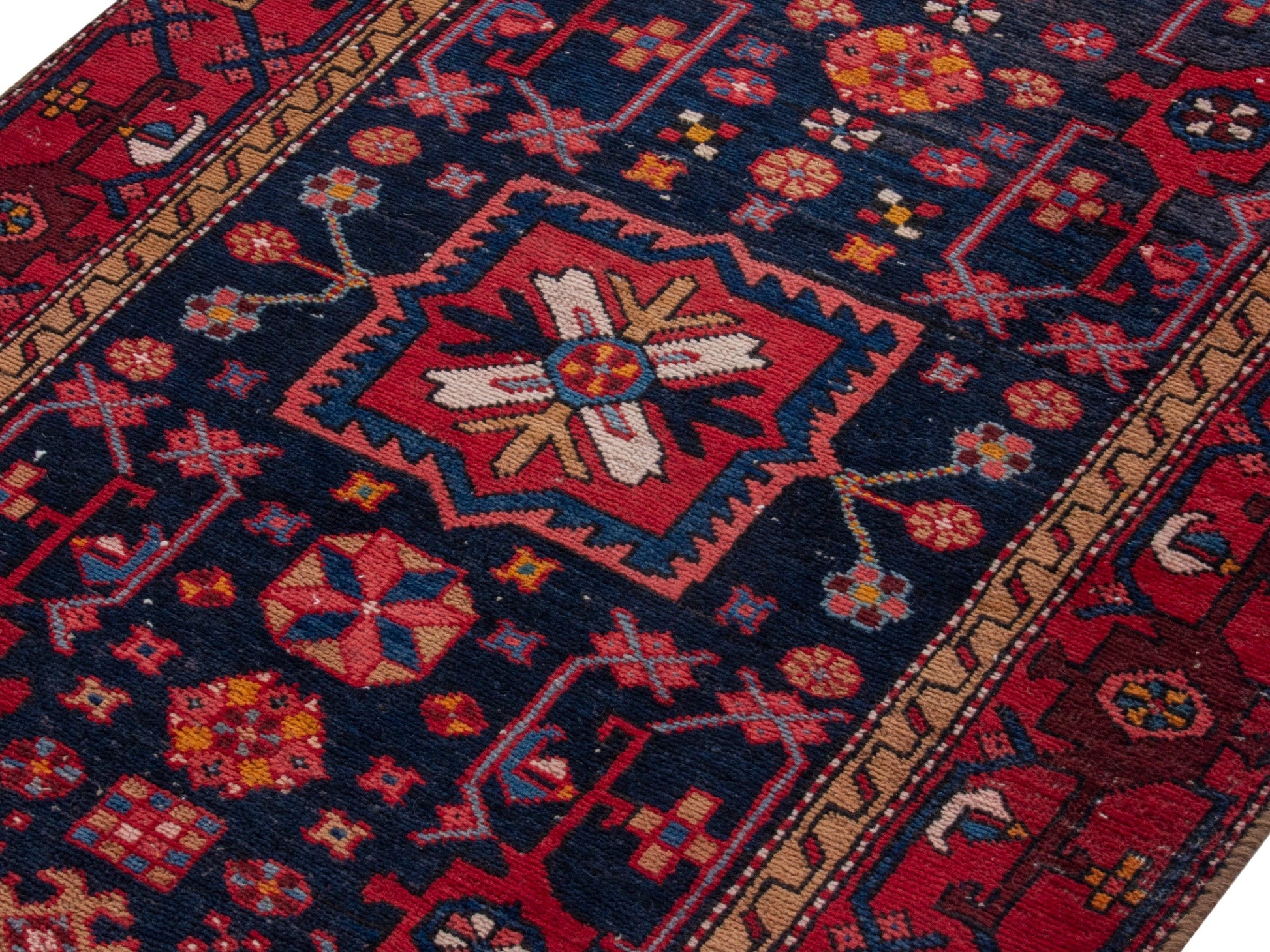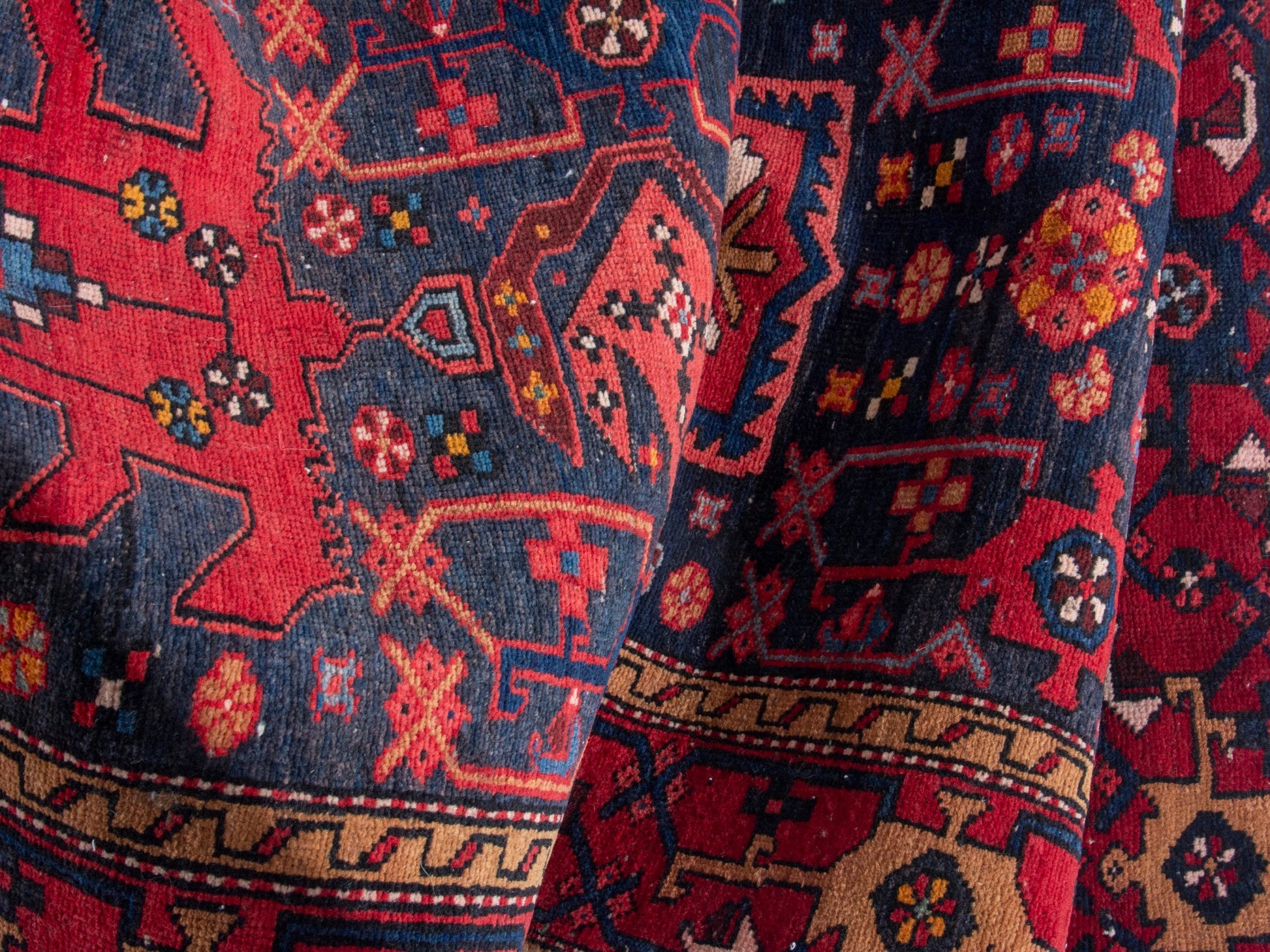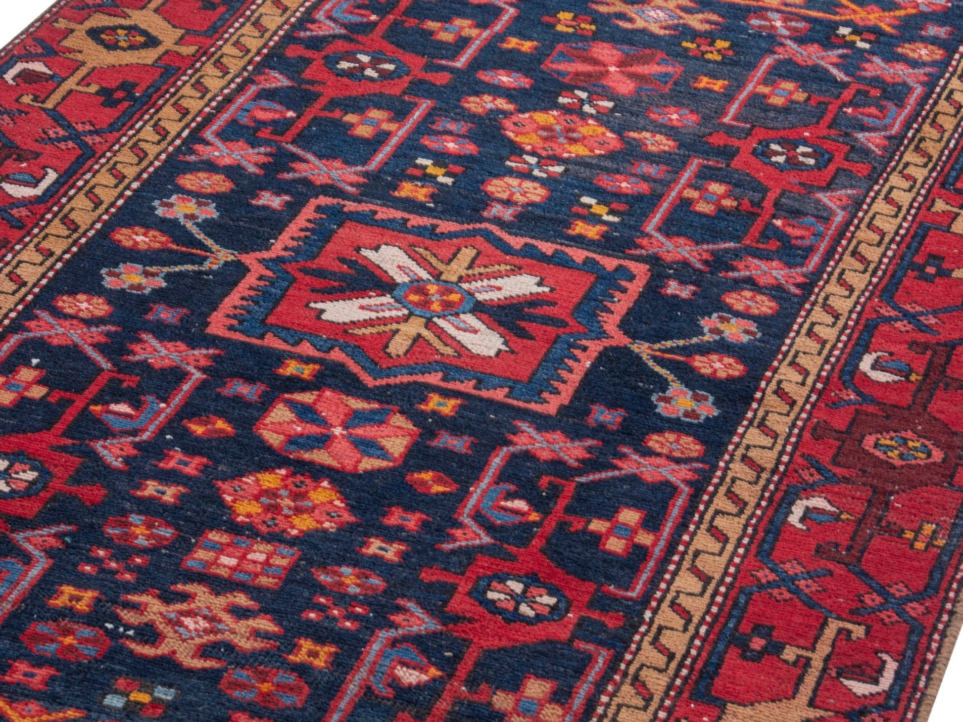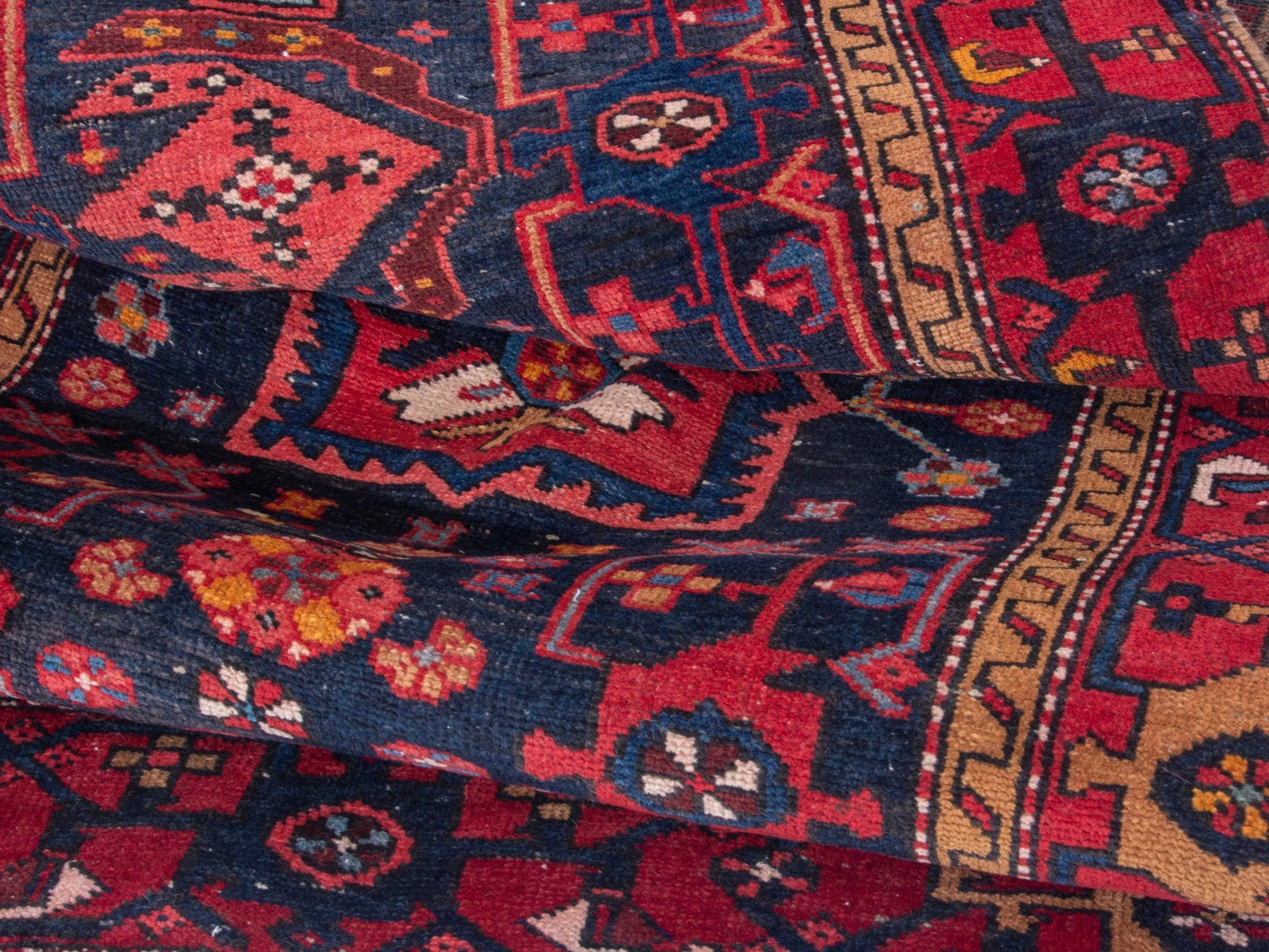 All the rugs we sell are professionally washed and cleaned; age-related wear and natural inconsistencies are inherent in these unique, handcrafted vintage rugs.