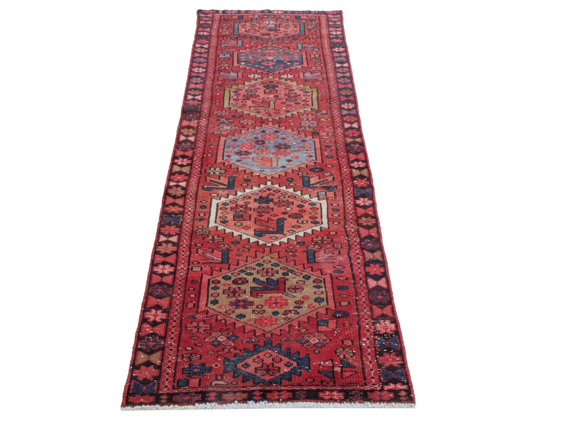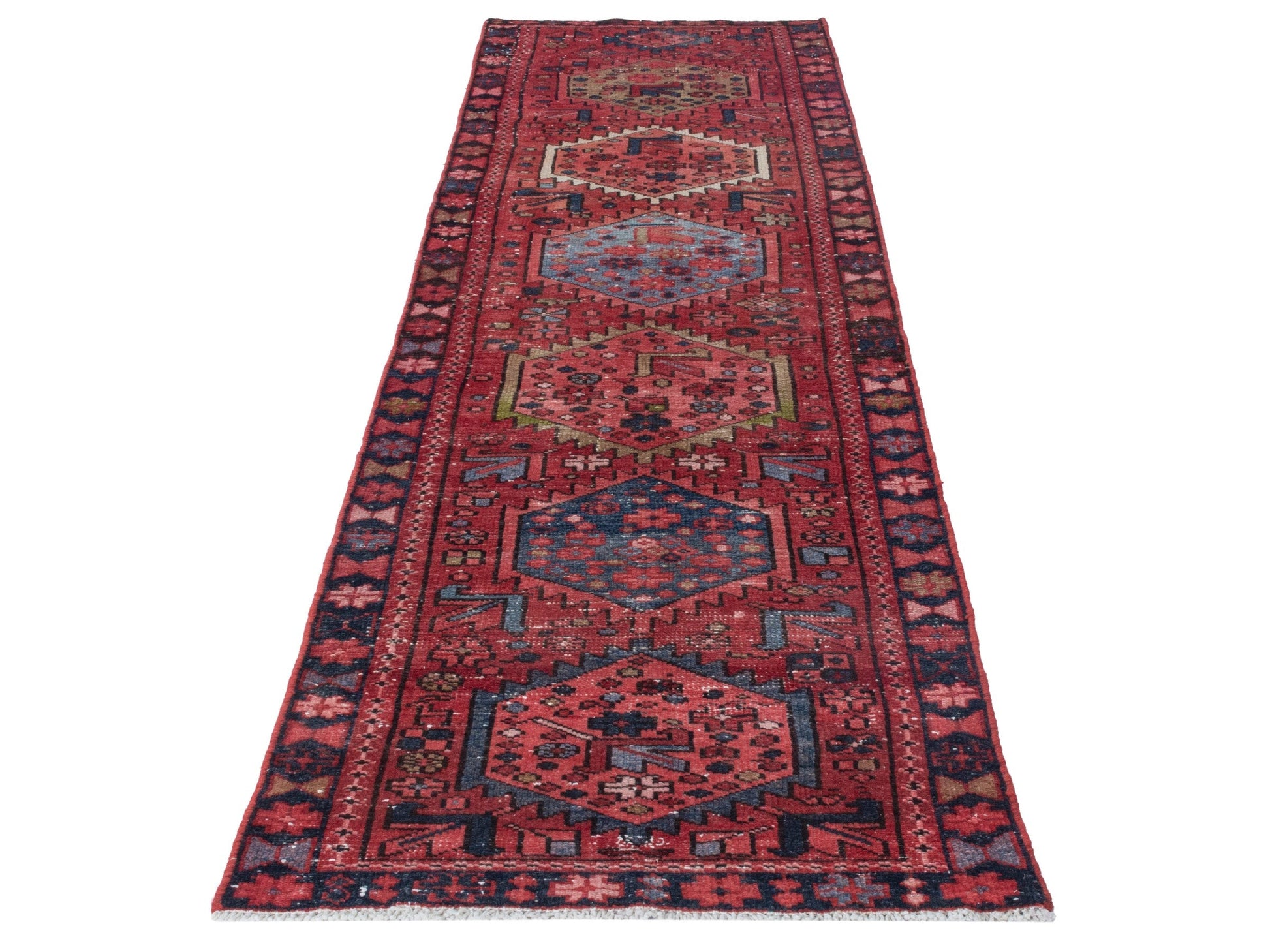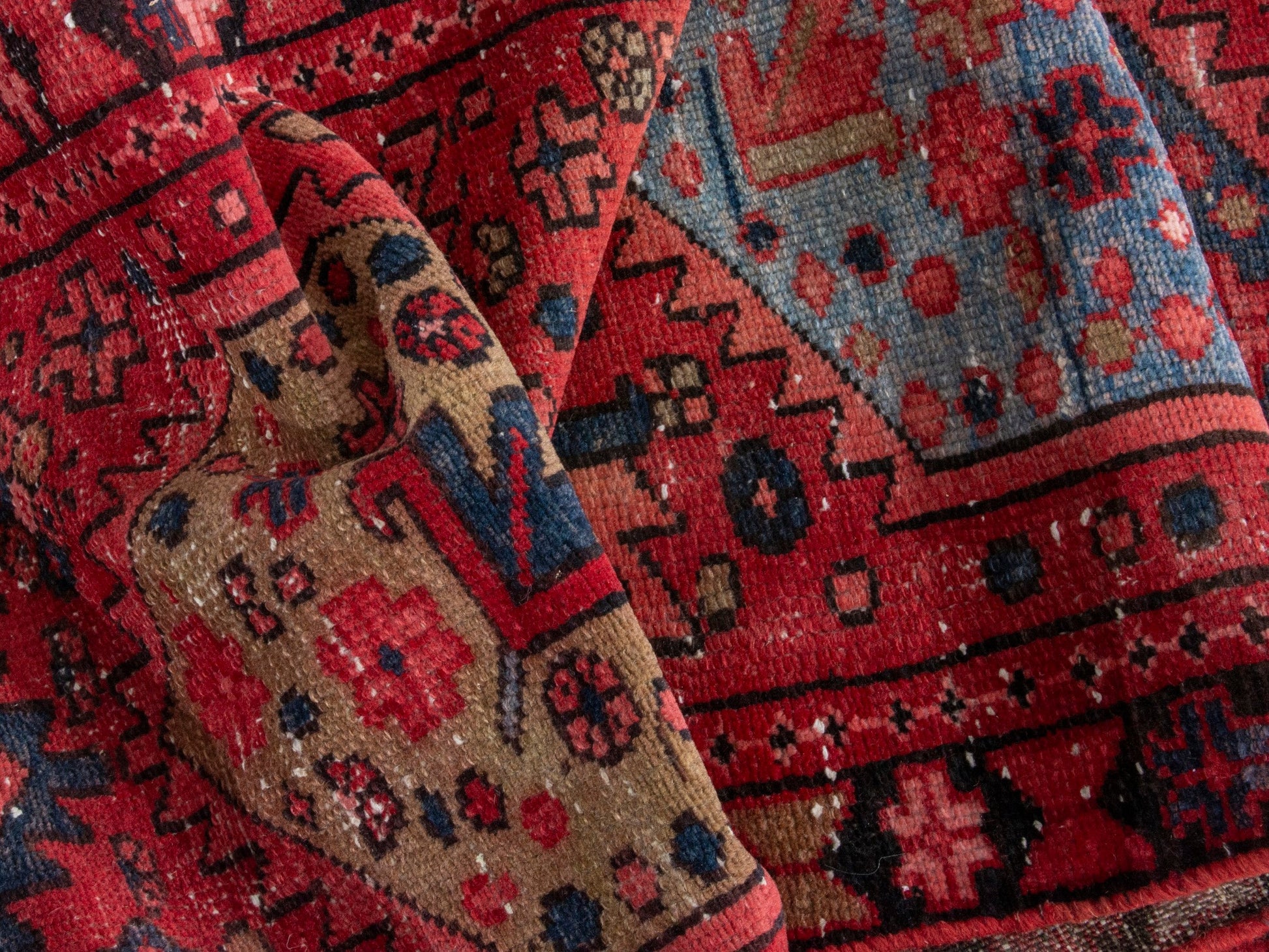 All the rugs we sell are professionally washed and cleaned; age-related wear and natural inconsistencies are inherent in these unique, handcrafted vintage rugs.