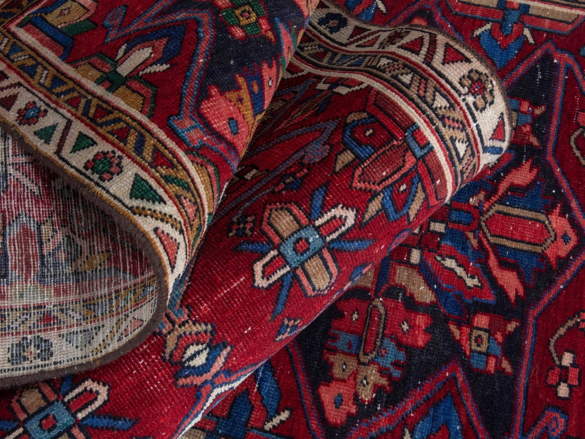 All the rugs we sell are professionally washed and cleaned; age-related wear and natural inconsistencies are inherent in these unique, handcrafted vintage rugs.
