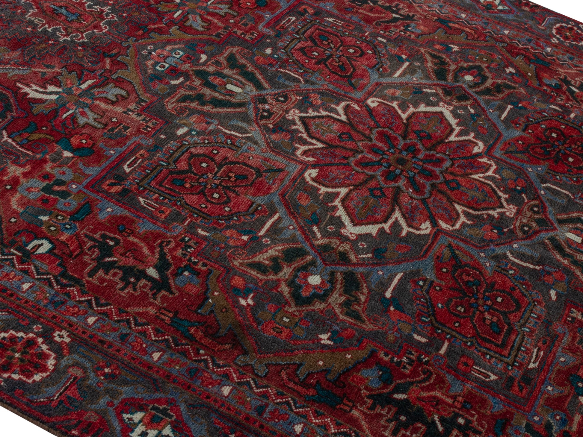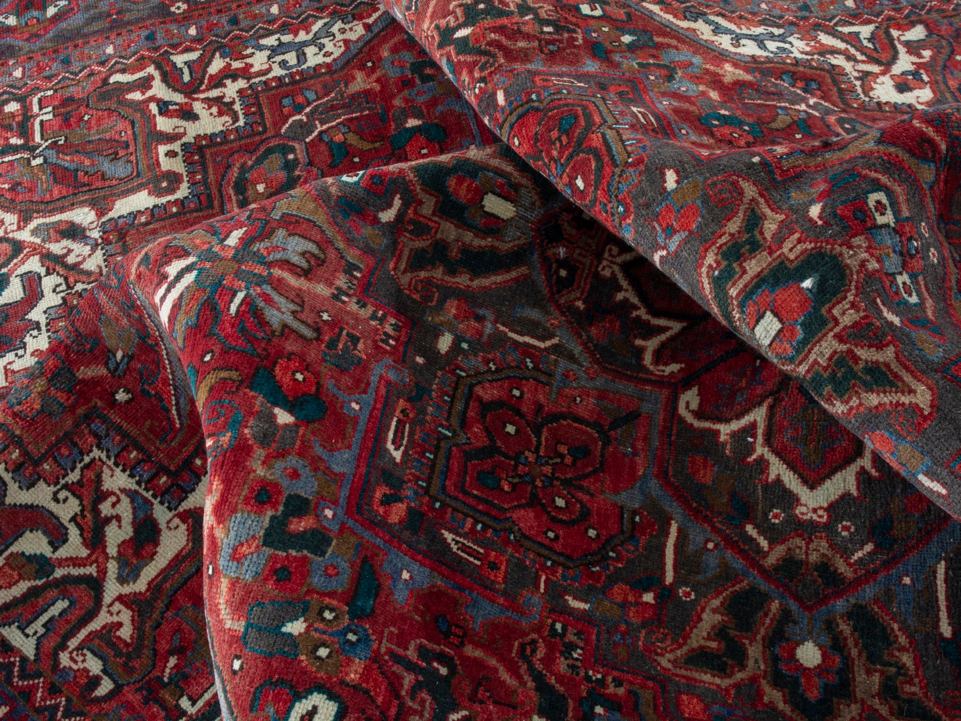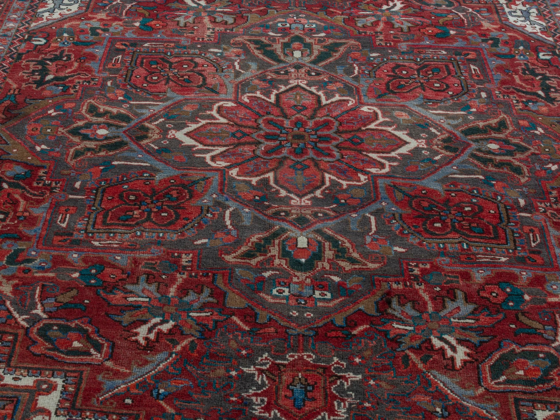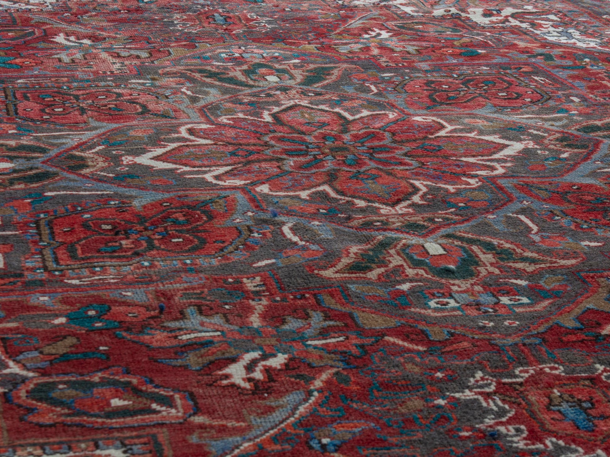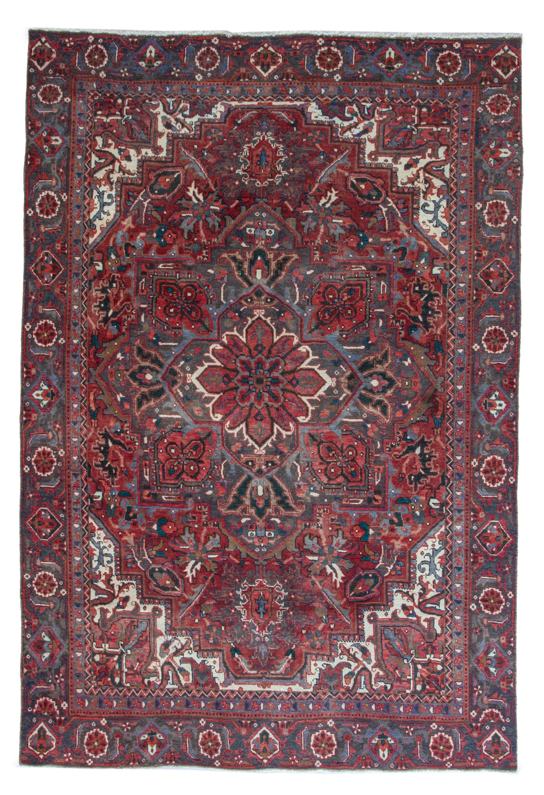All the rugs we sell are professionally washed and cleaned; age-related wear and natural inconsistencies are inherent in these unique, handcrafted vintage rugs.