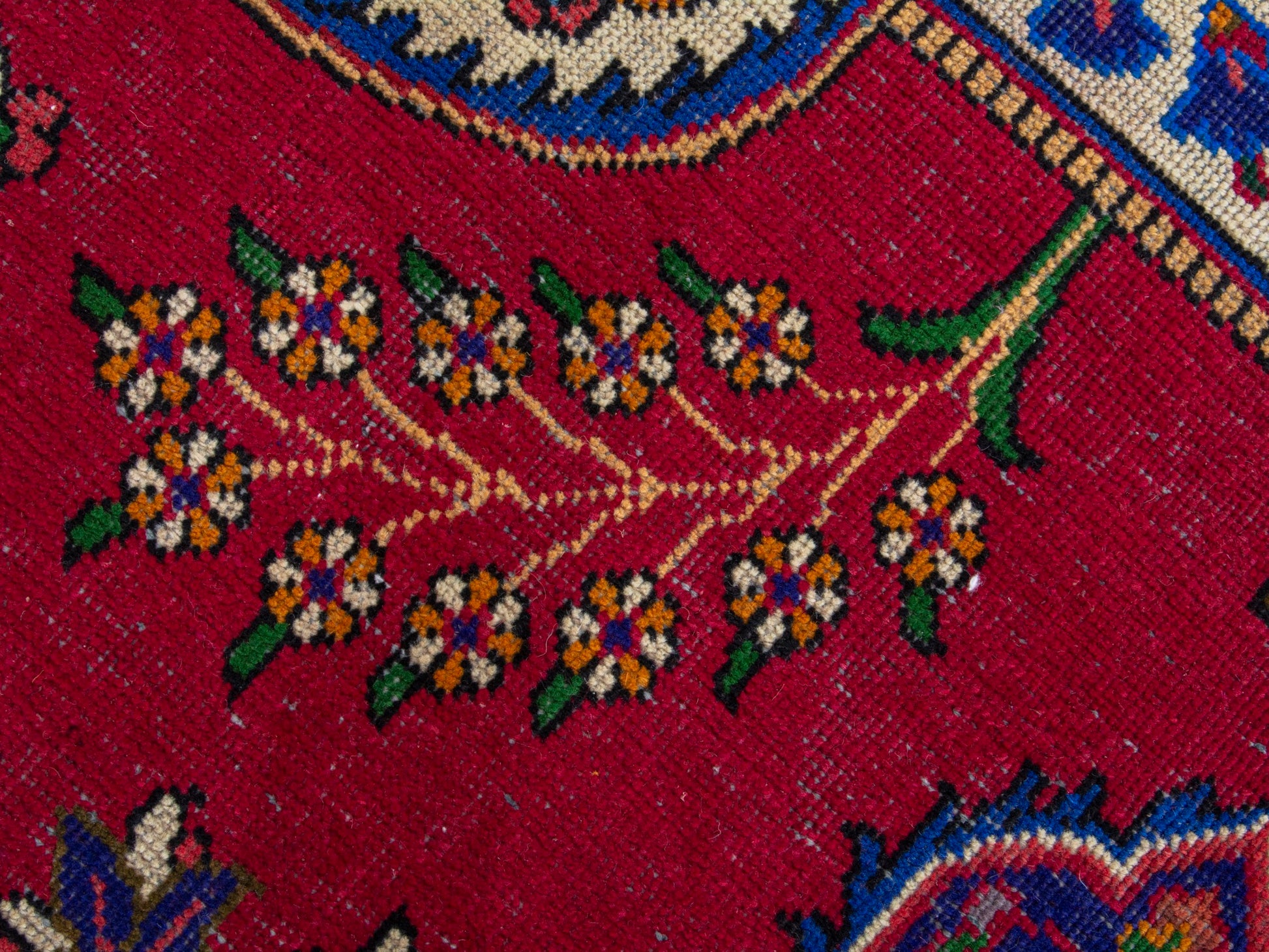 All the rugs we sell are professionally washed and cleaned; age-related wear and natural inconsistencies are inherent in these unique, handcrafted vintage rugs.