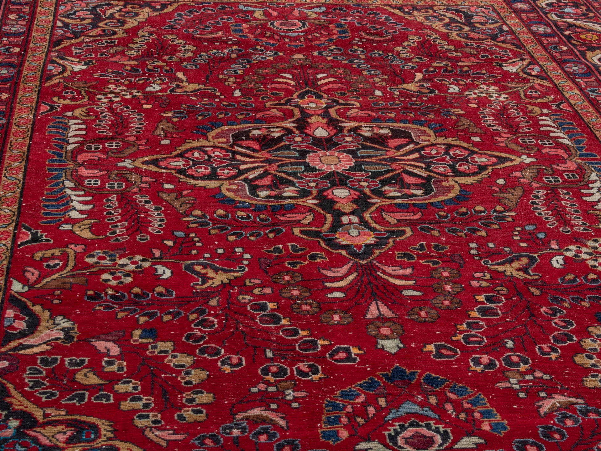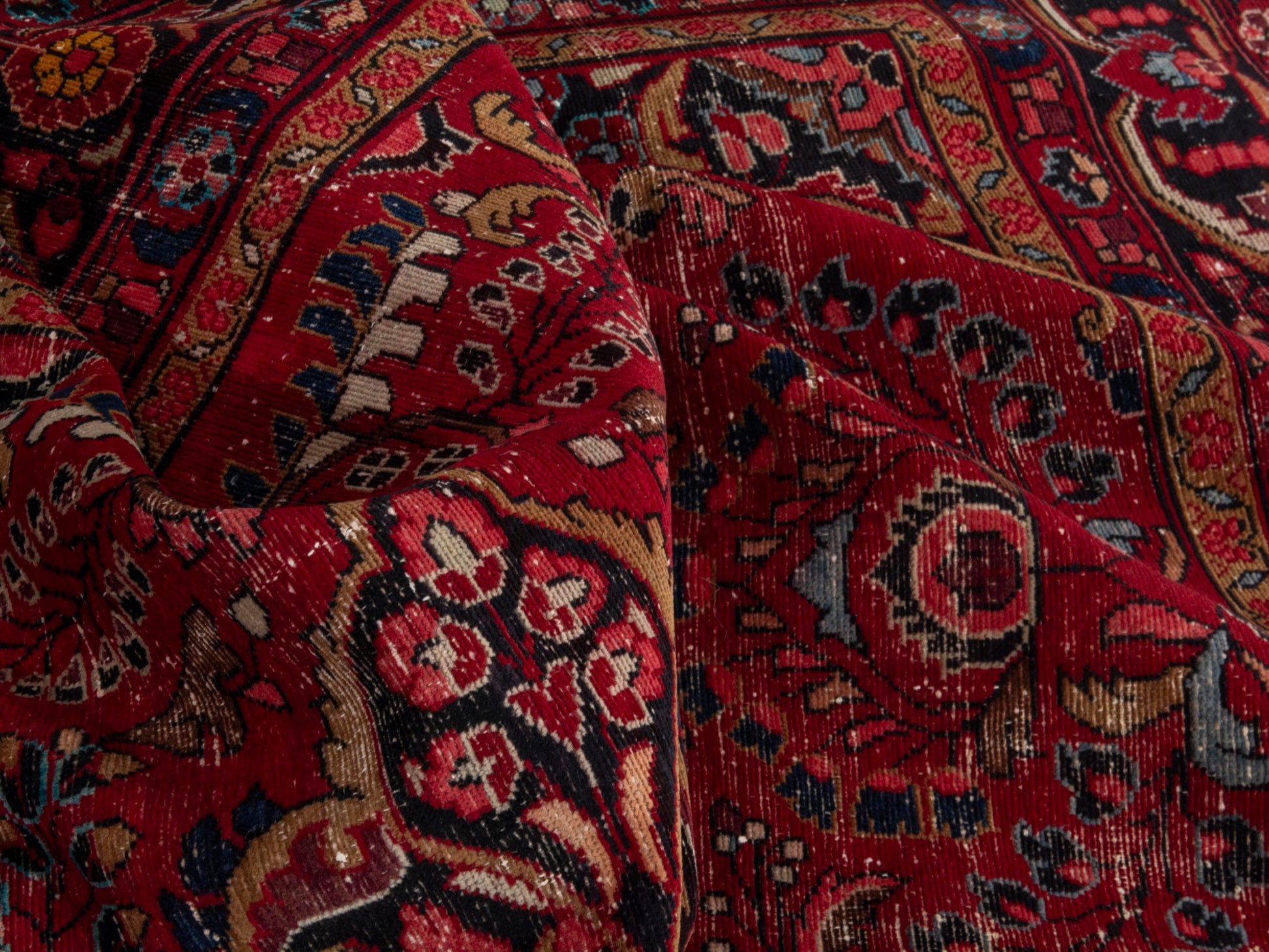 All the rugs we sell are professionally washed and cleaned; age-related wear and natural inconsistencies are inherent in these unique, handcrafted vintage rugs.