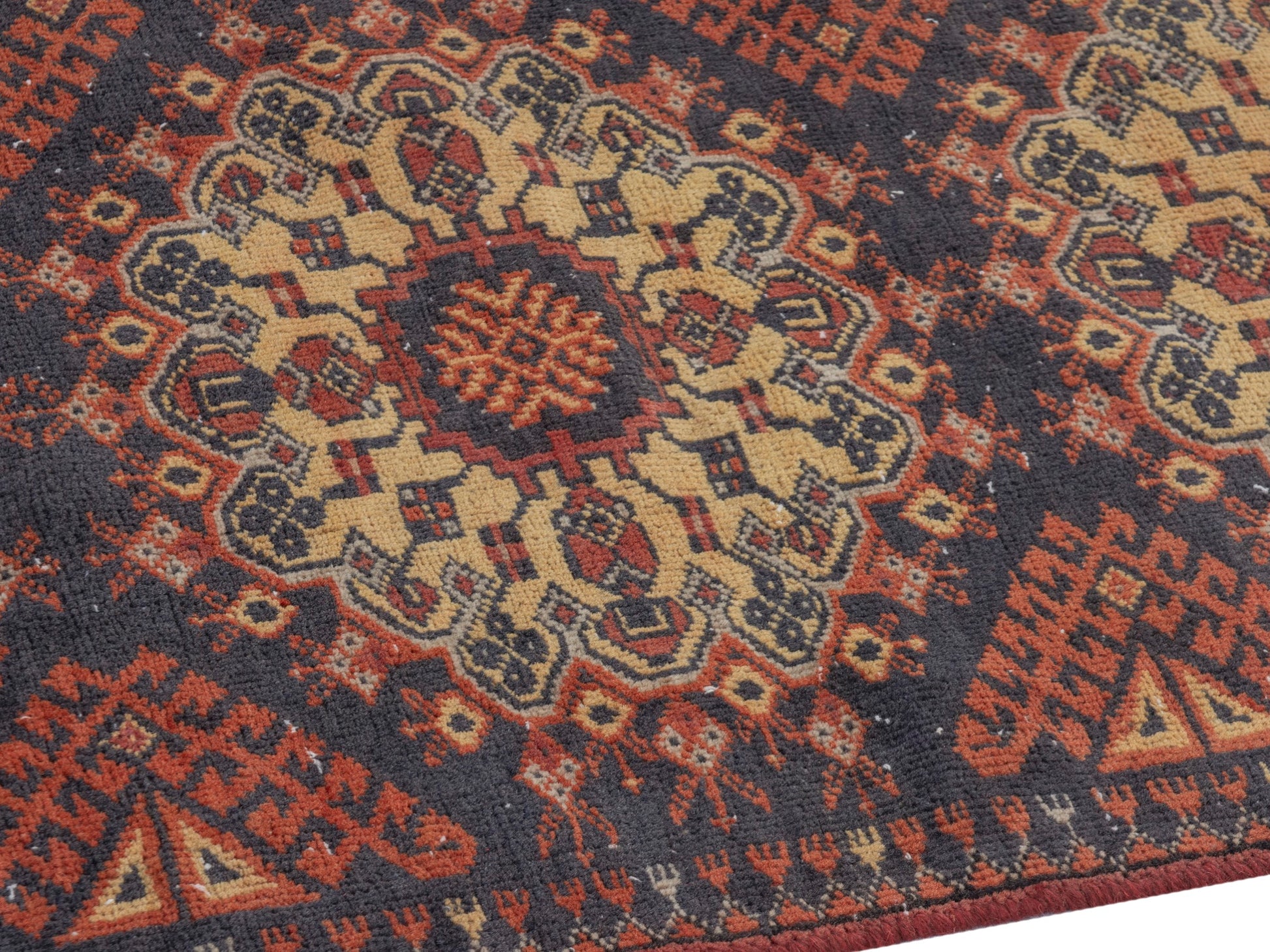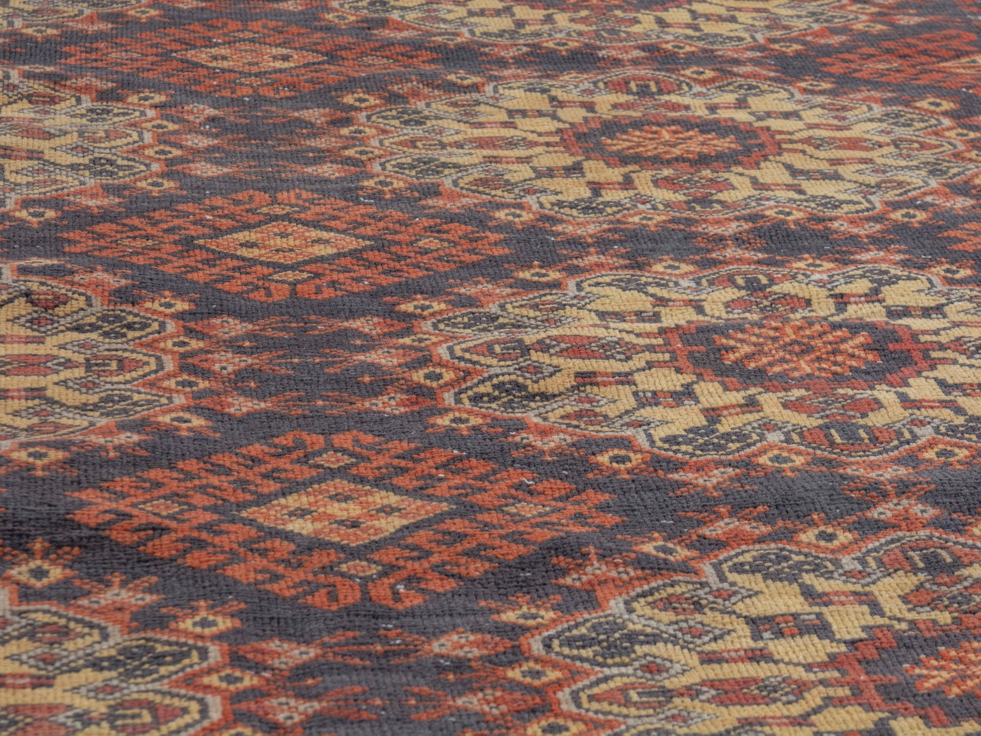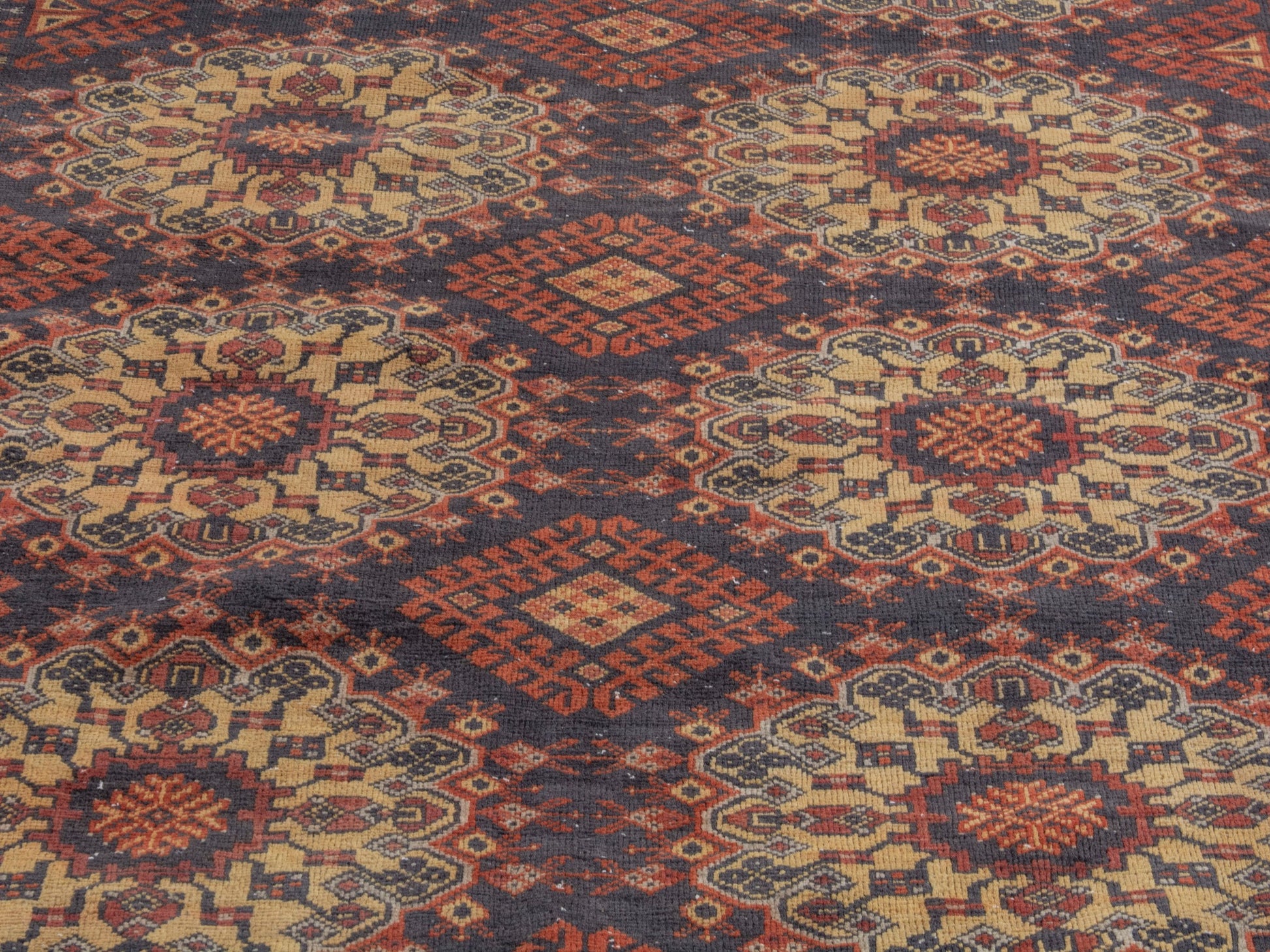 All the rugs we sell are professionally washed and cleaned; age-related wear and natural inconsistencies are inherent in these unique, handcrafted vintage rugs.