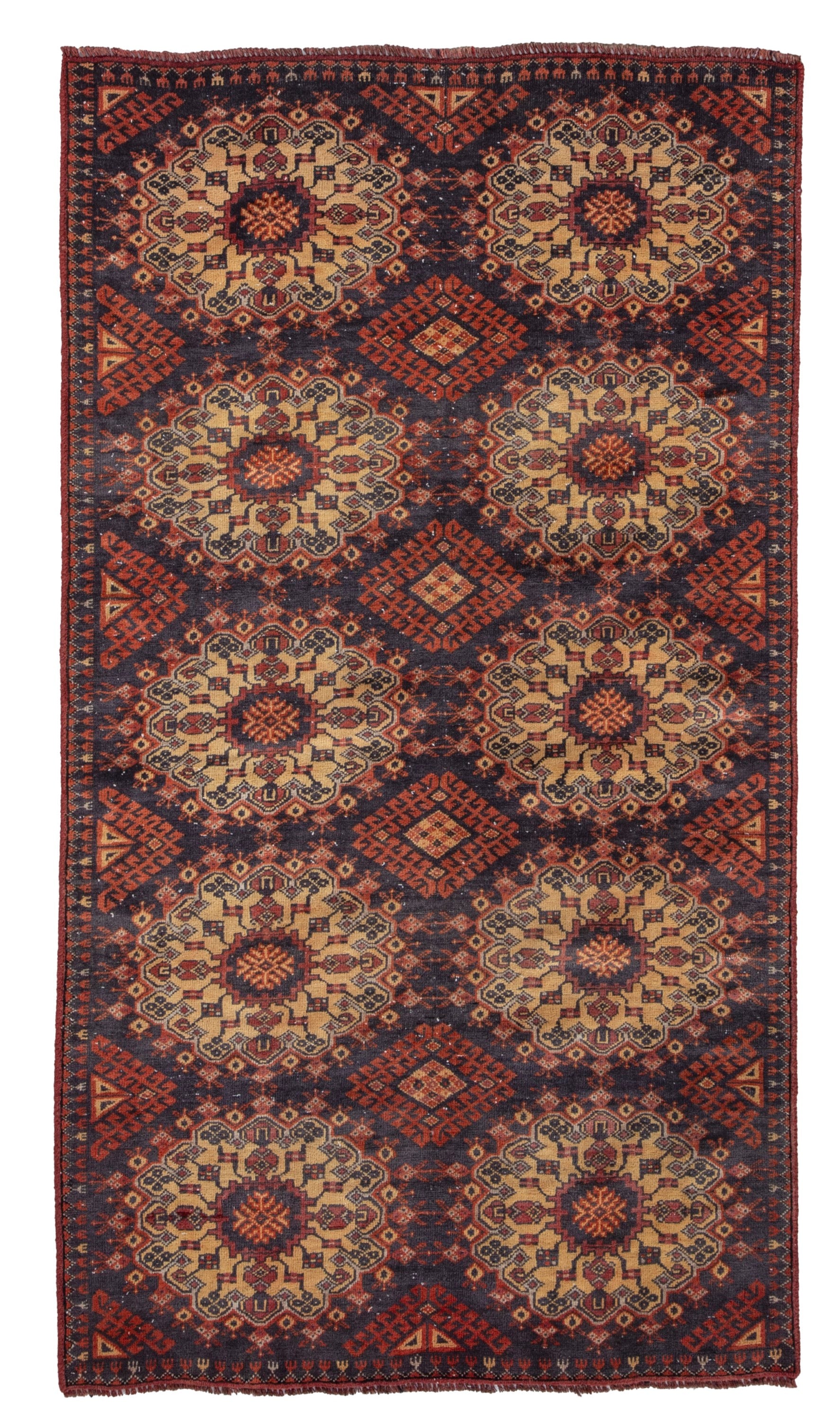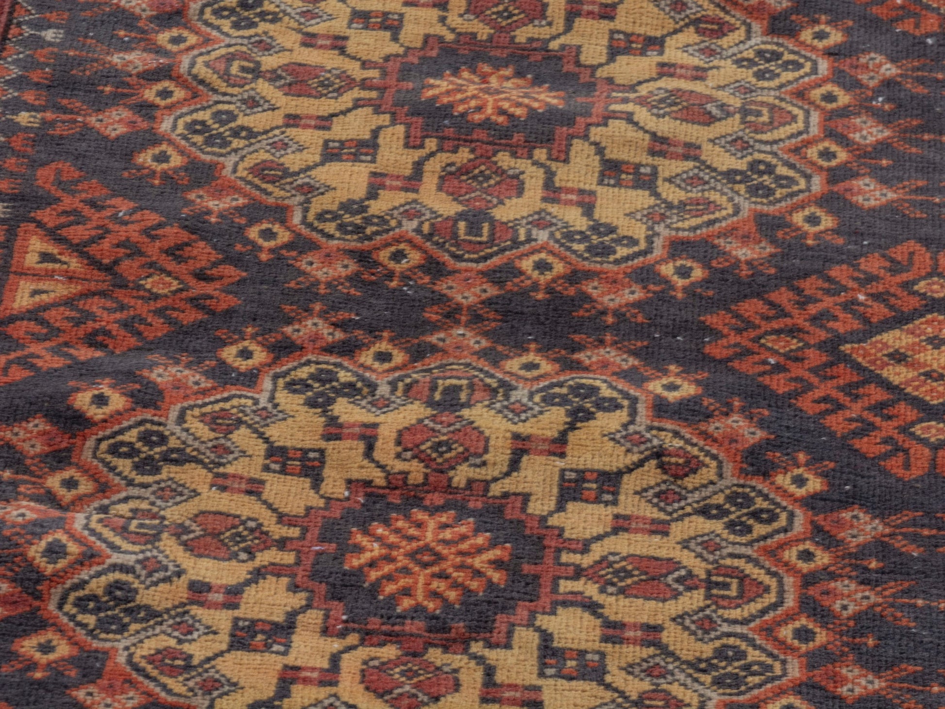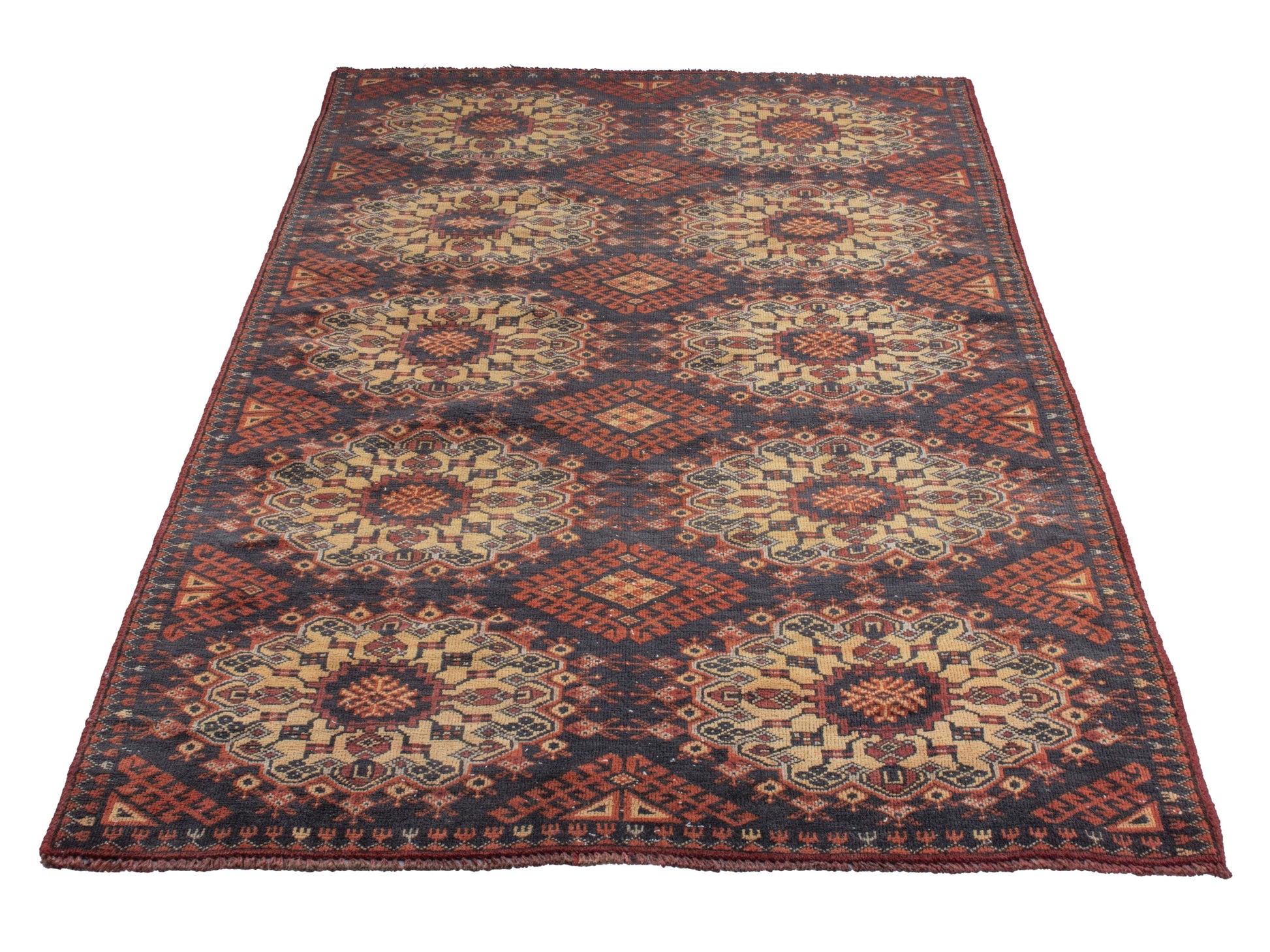 All the rugs we sell are professionally washed and cleaned; age-related wear and natural inconsistencies are inherent in these unique, handcrafted vintage rugs.