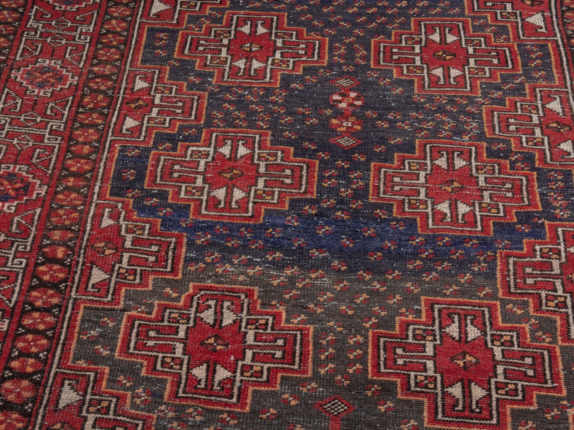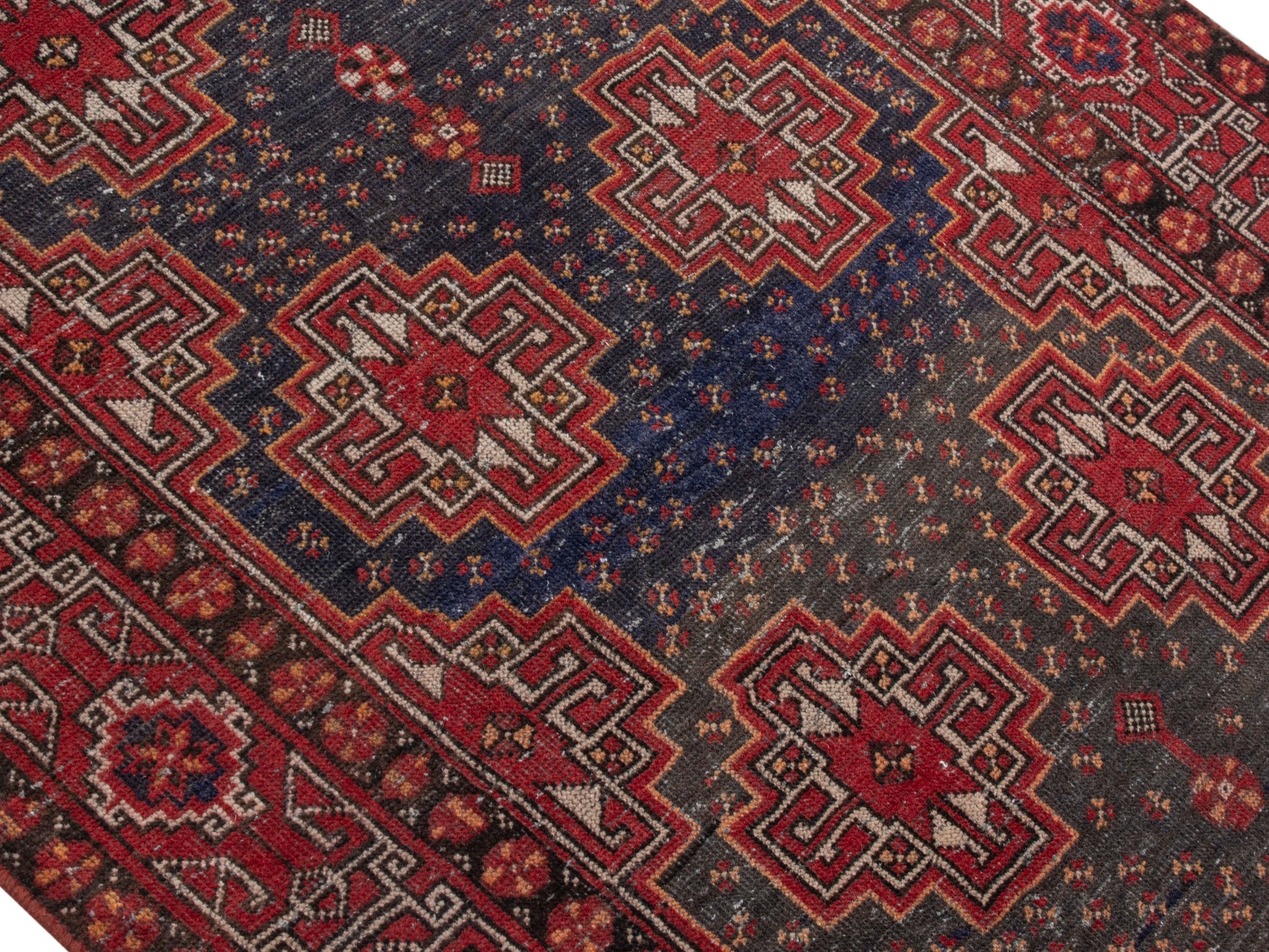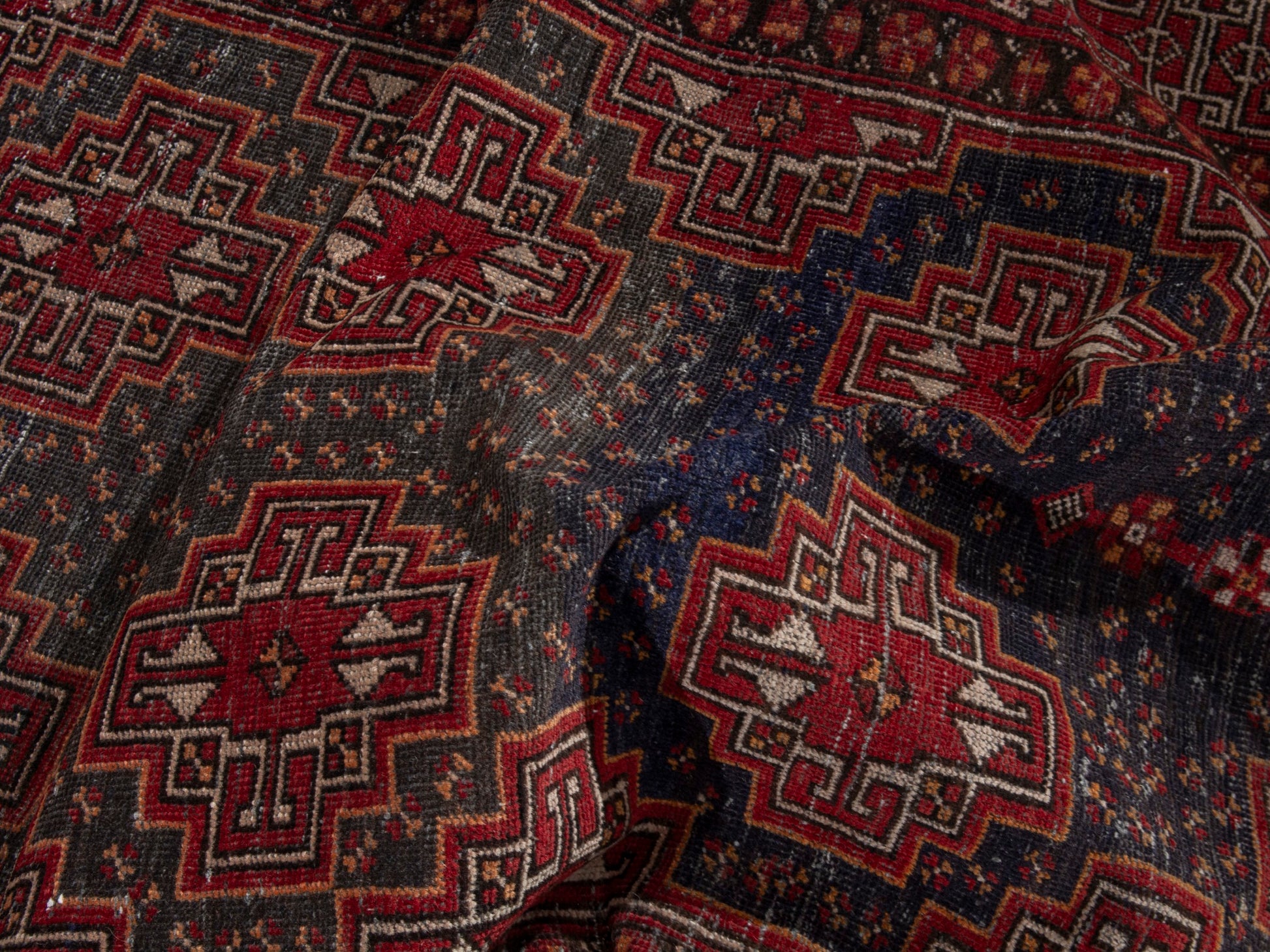 All the rugs we sell are professionally washed and cleaned; age-related wear and natural inconsistencies are inherent in these unique, handcrafted vintage rugs.