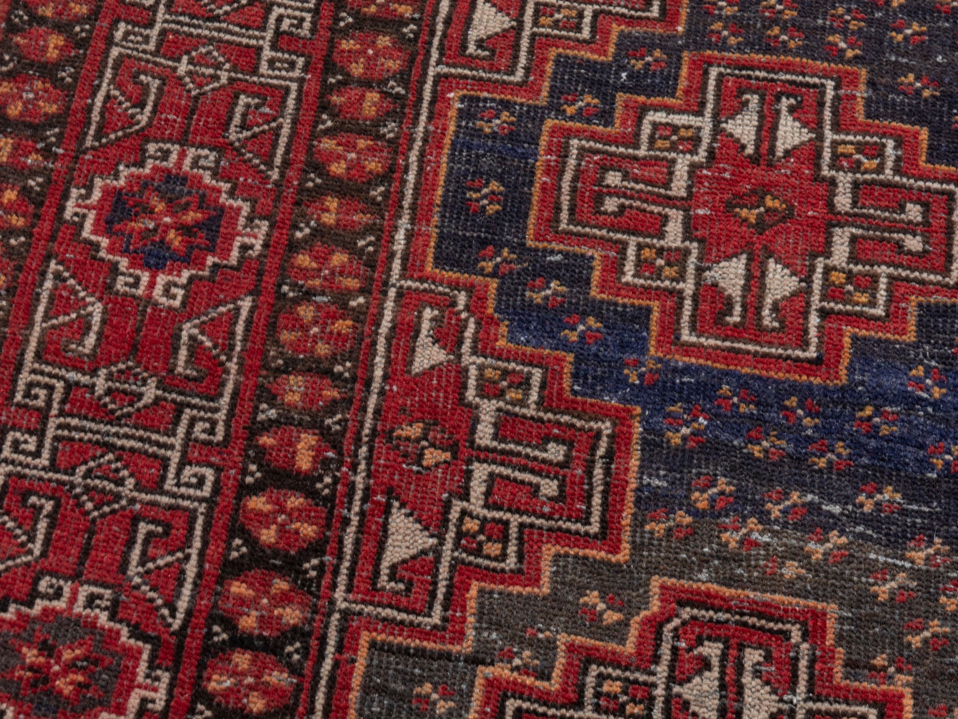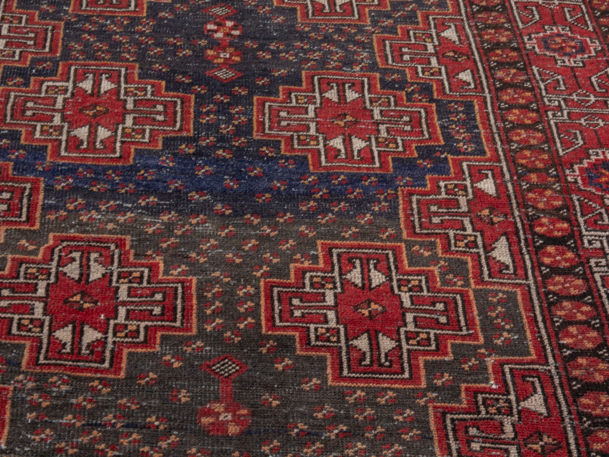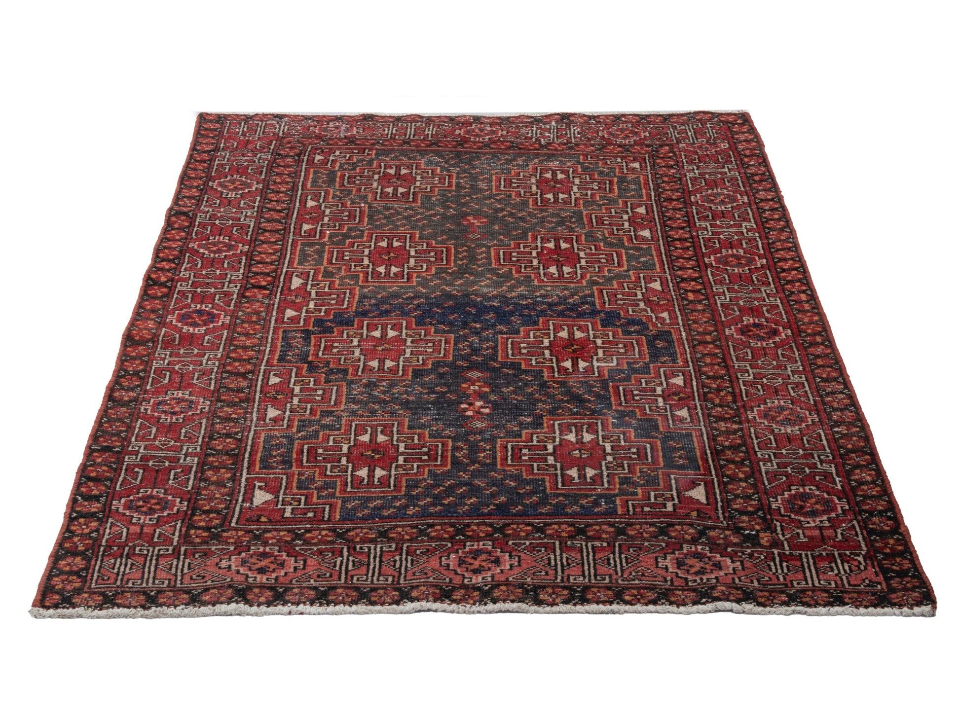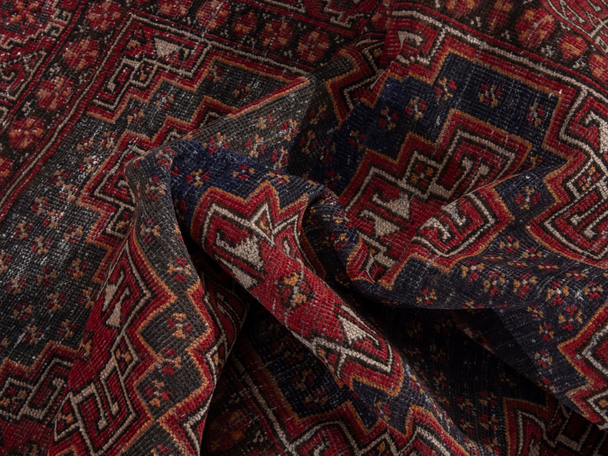 All the rugs we sell are professionally washed and cleaned; age-related wear and natural inconsistencies are inherent in these unique, handcrafted vintage rugs.