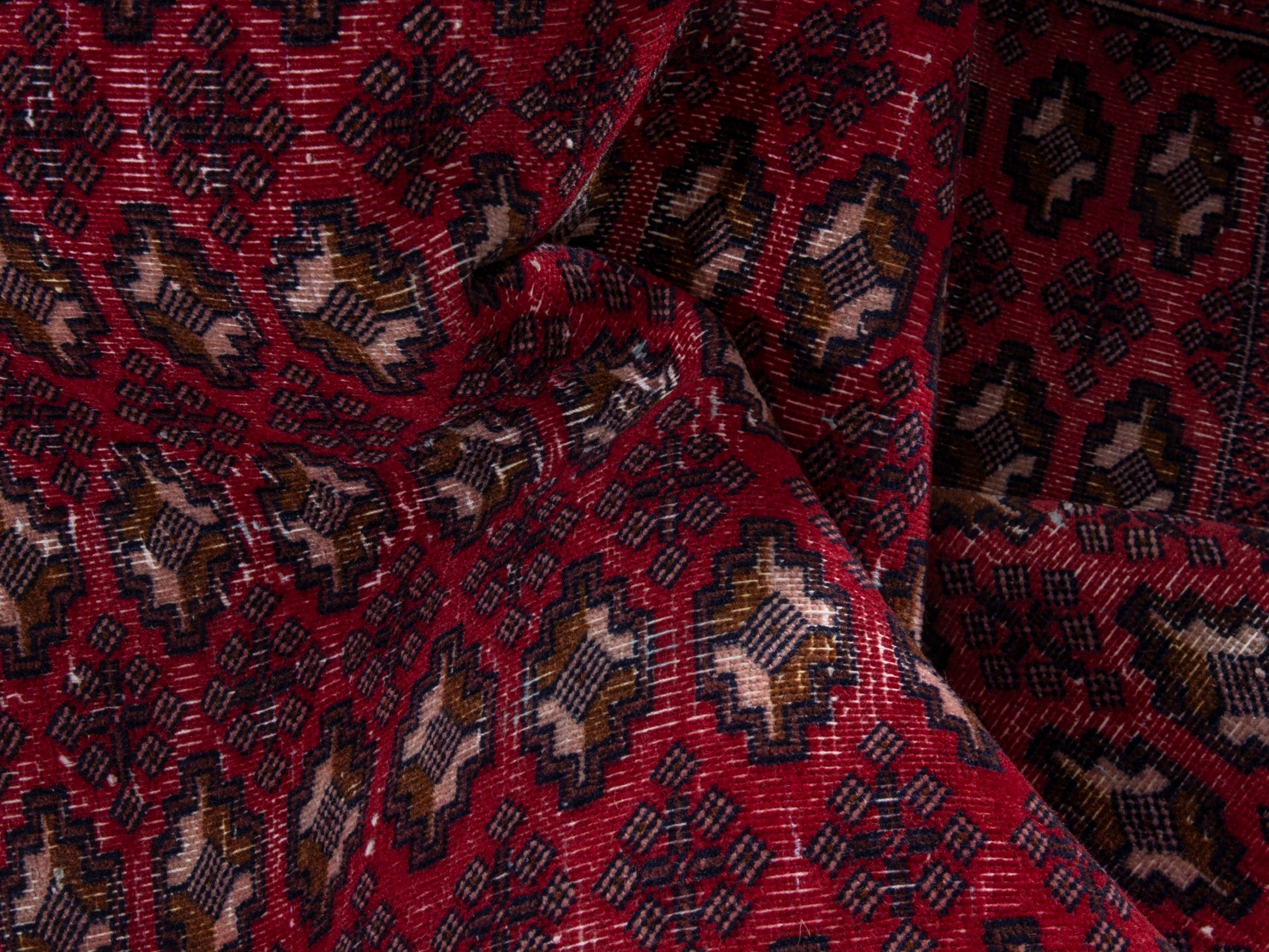 All the rugs we sell are professionally washed and cleaned; age-related wear and natural inconsistencies are inherent in these unique, handcrafted vintage rugs.