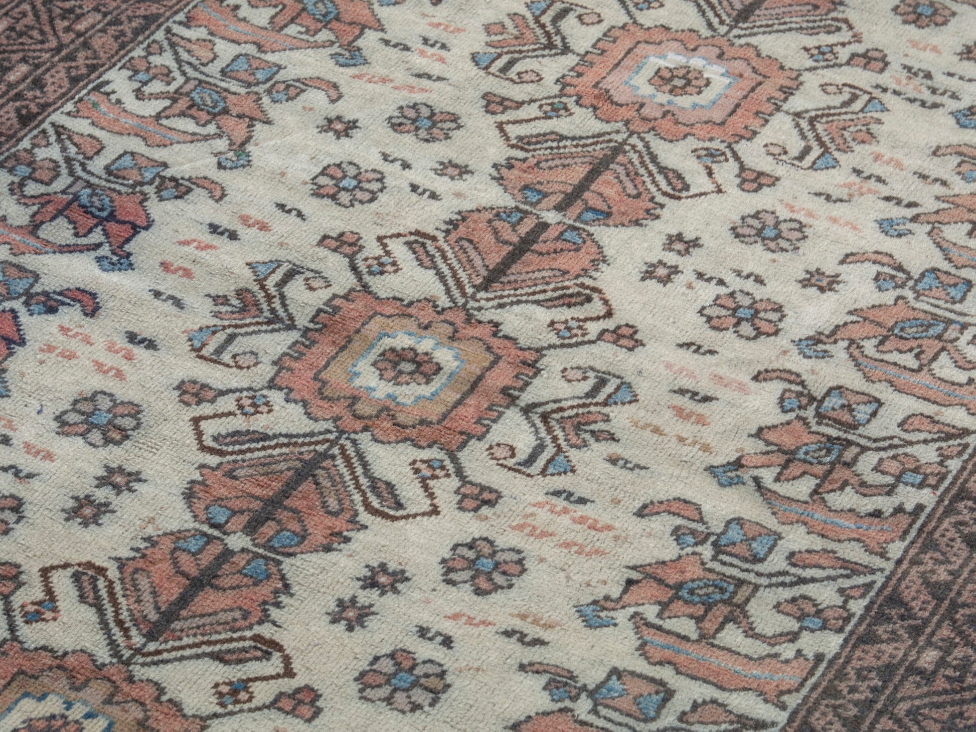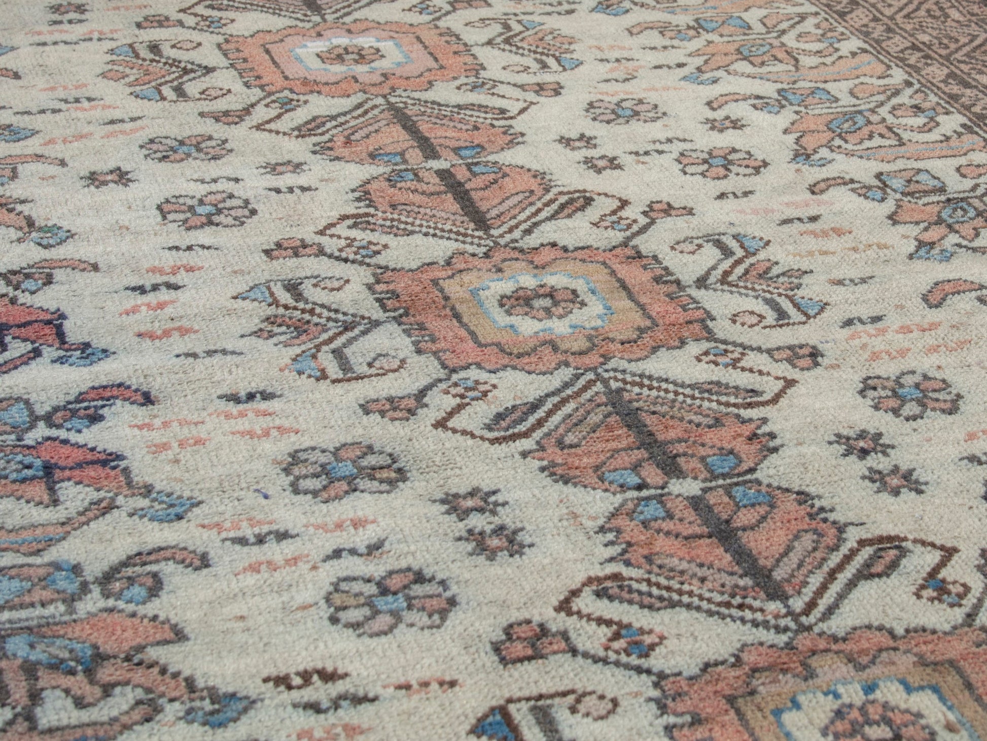 All the rugs we sell are professionally washed and cleaned; age-related wear and natural inconsistencies are inherent in these unique, handcrafted vintage rugs.
