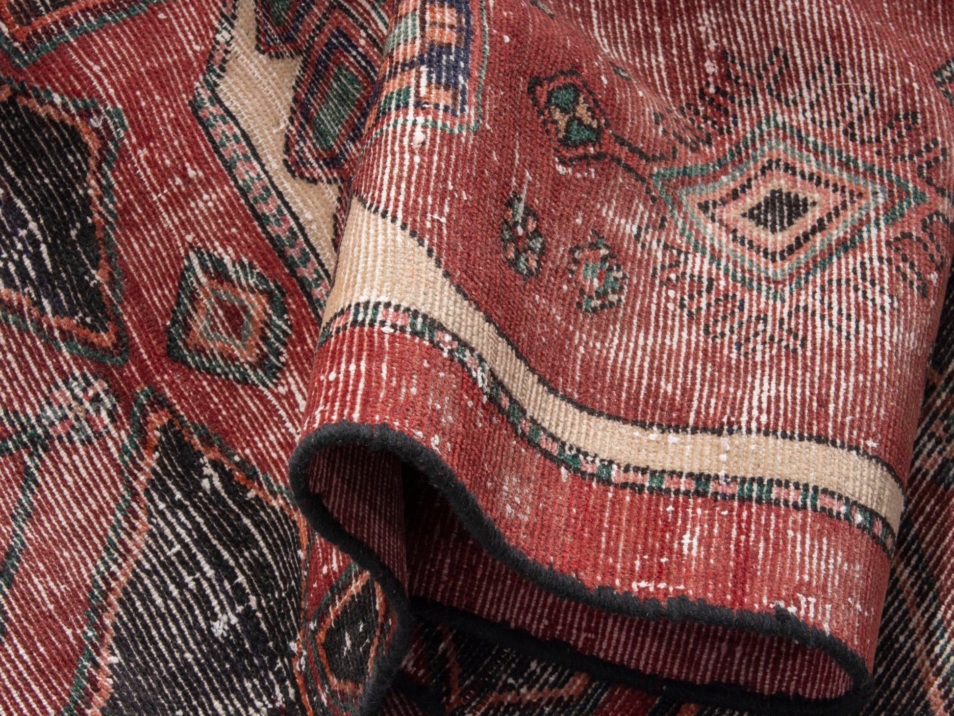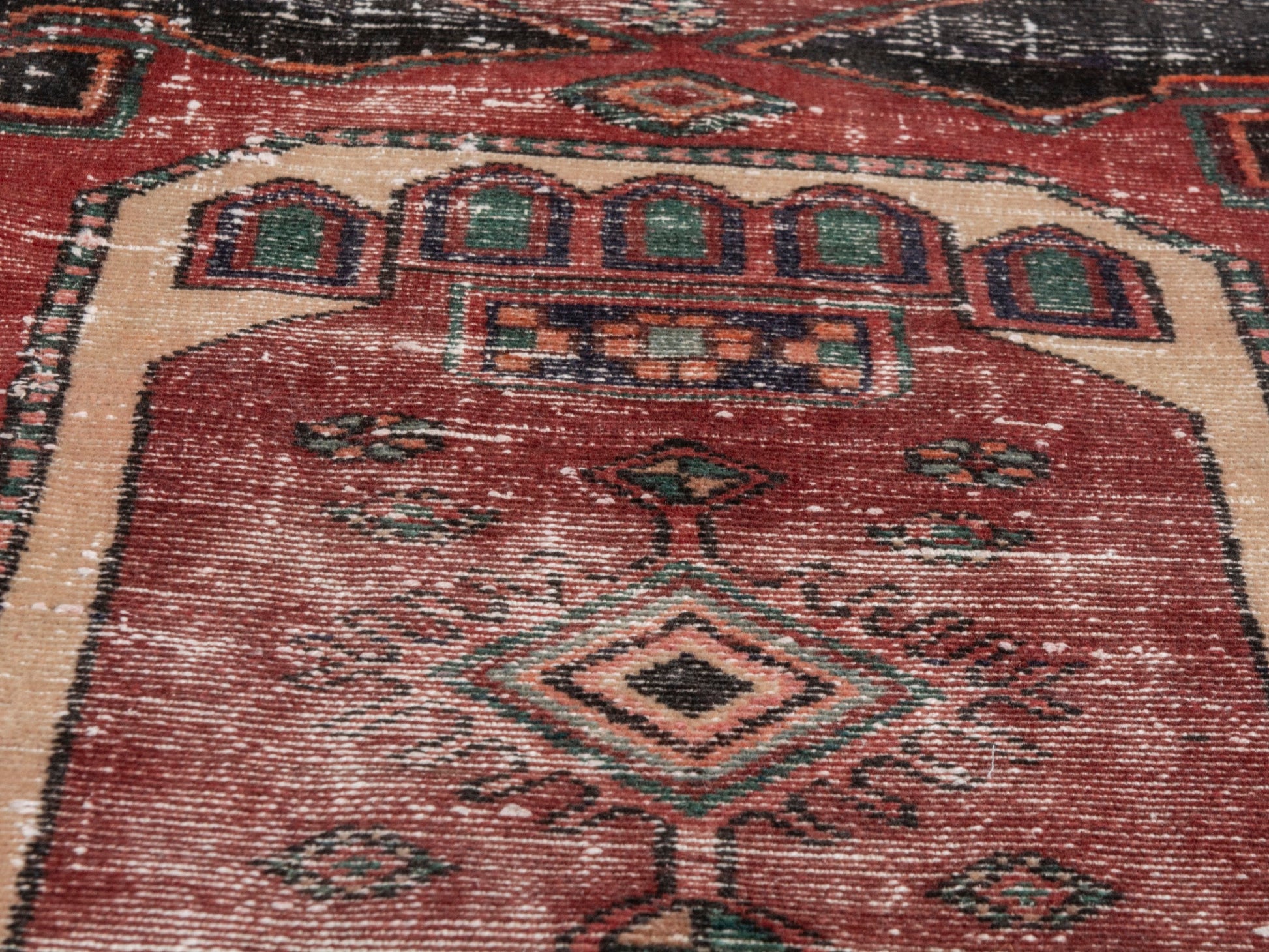 All the rugs we sell are professionally washed and cleaned; age-related wear and natural inconsistencies are inherent in these unique, handcrafted vintage rugs.